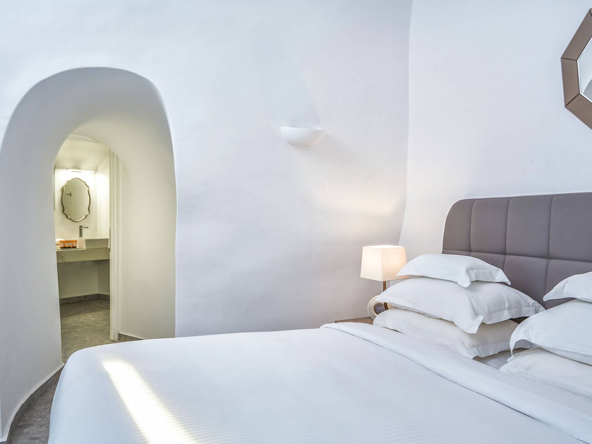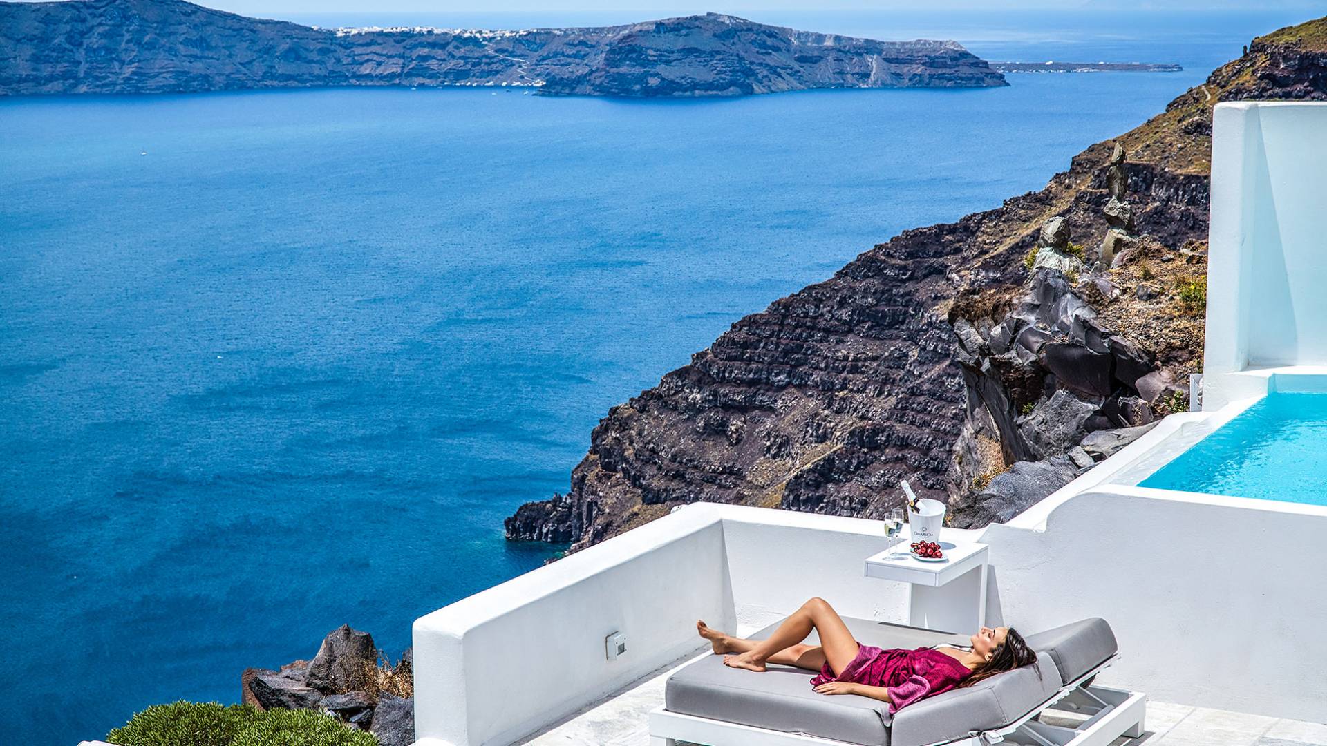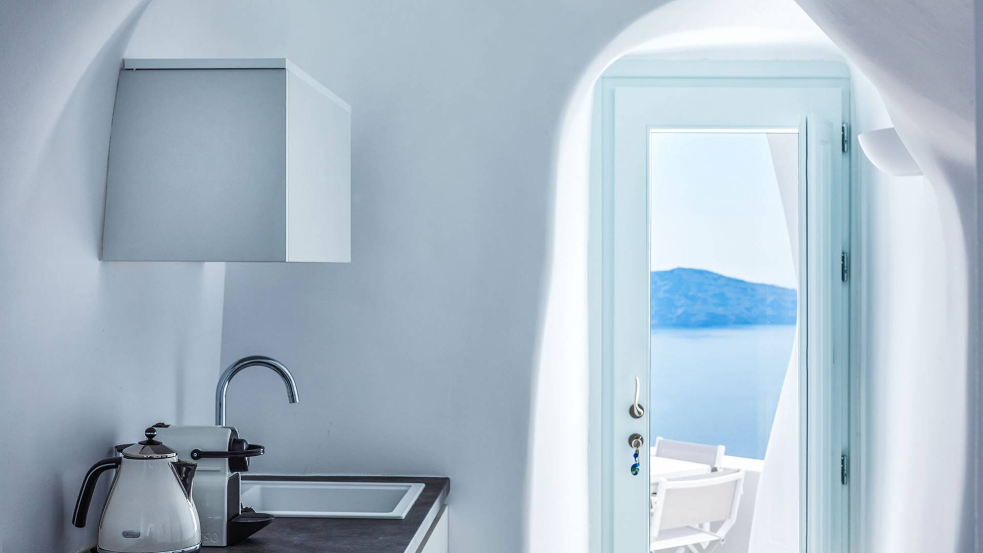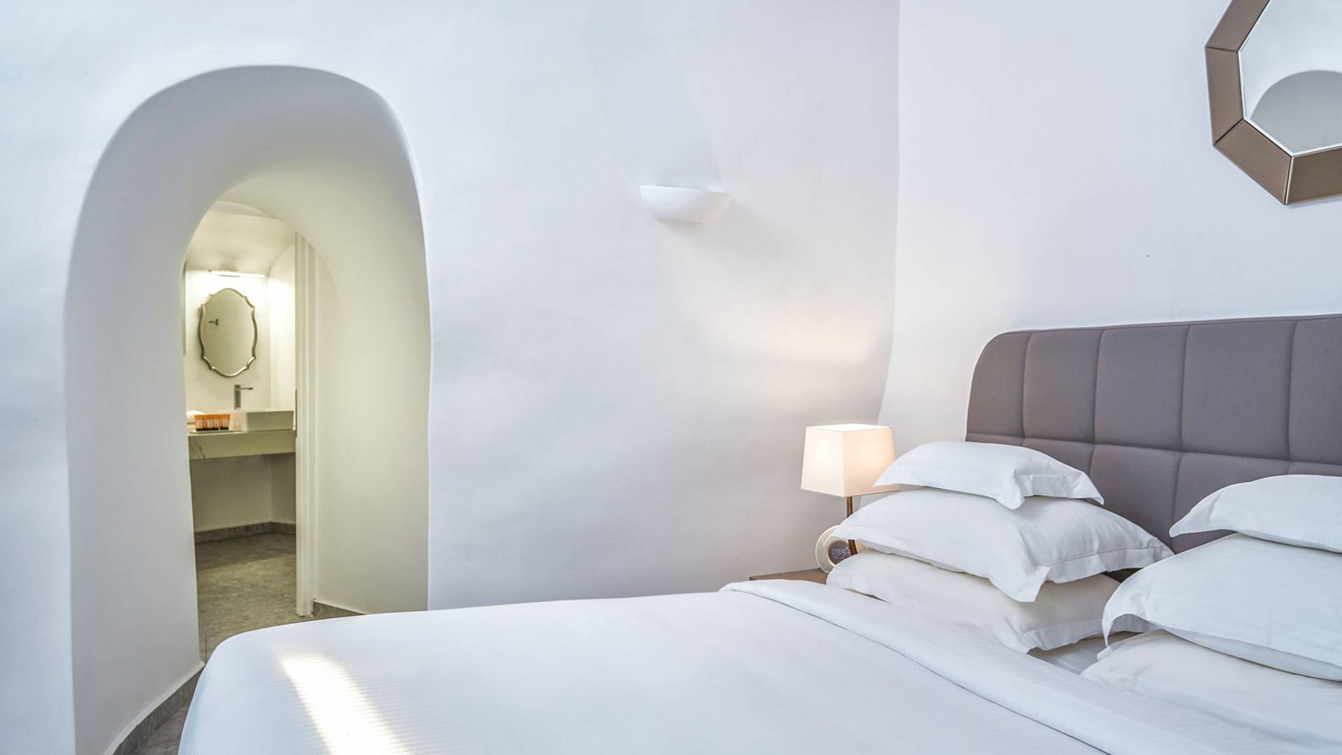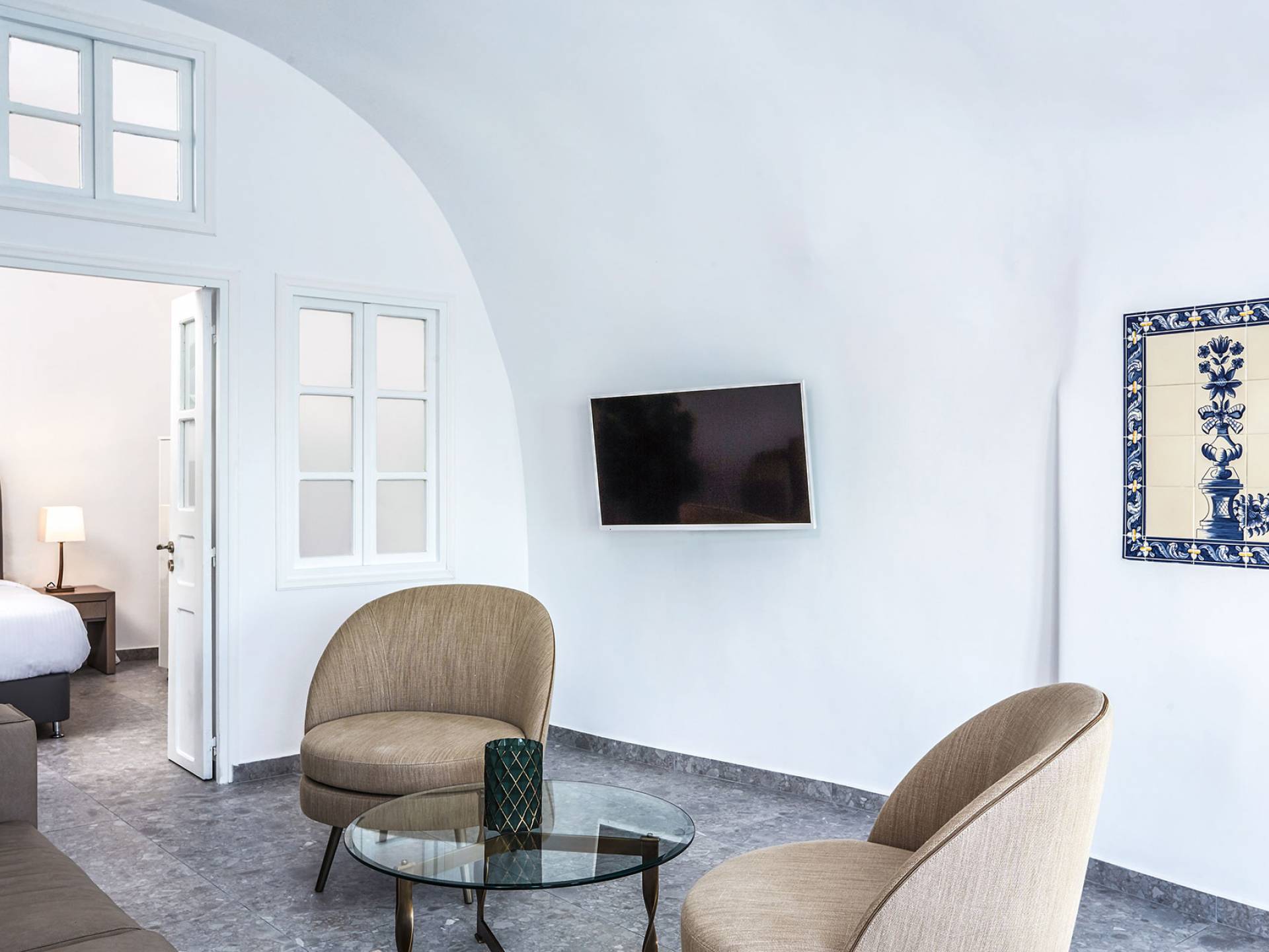 Alongside all the VIP amenities and services you could wish for, you will find your own private hot tub on your balcony. The Two Bedroom Villa with Outdoor Plunge Pool and Caldera View will be the perfect place to unwind in a calm and private setting; it offers spectacular unobstructed views to the volcano, Skaros Rock and the sunset and a hot tub in the balcony.