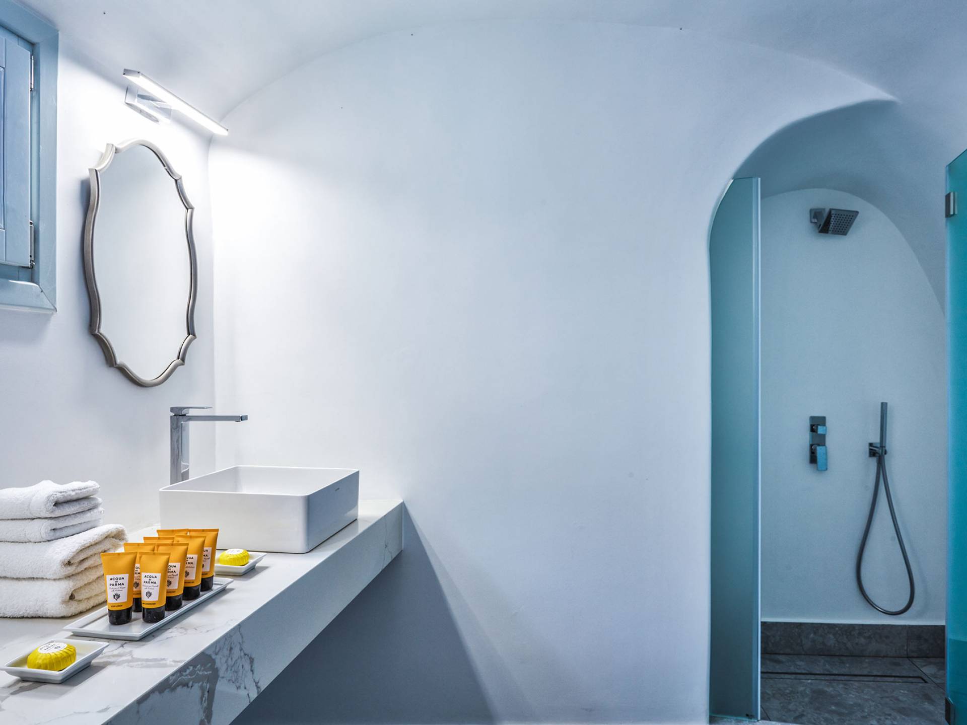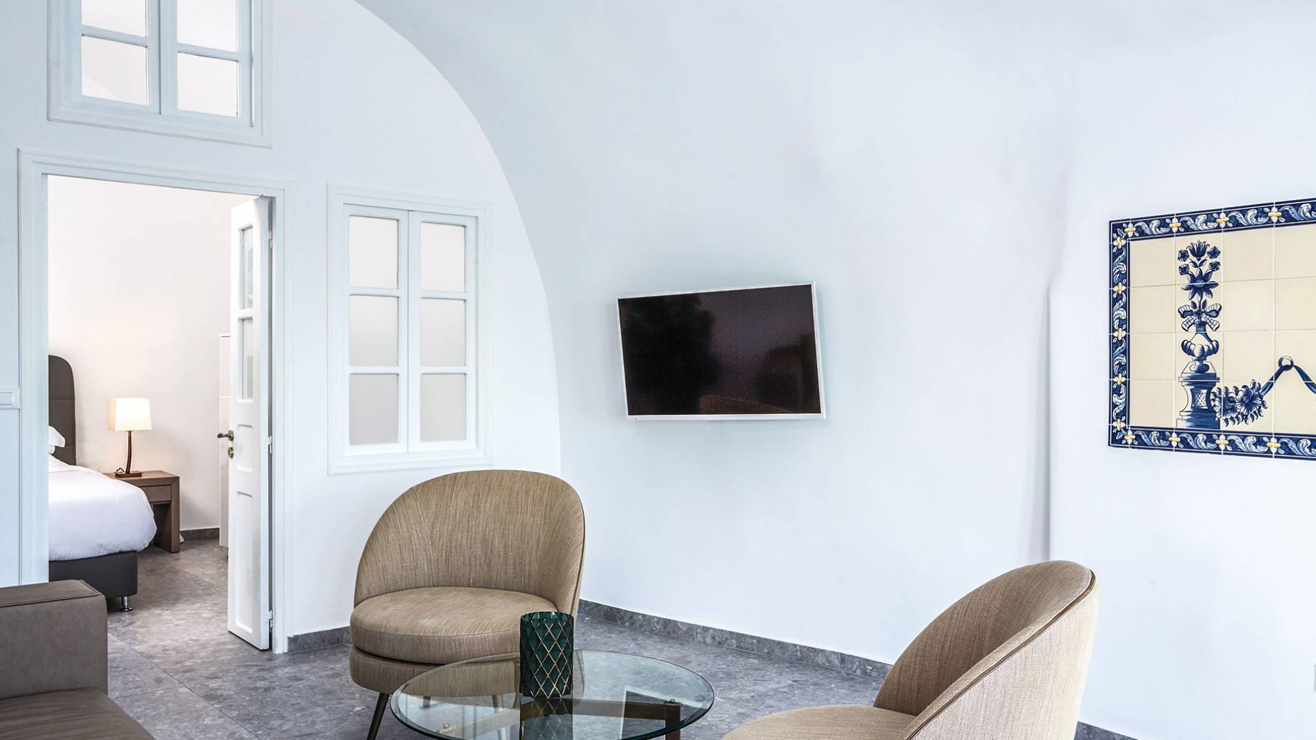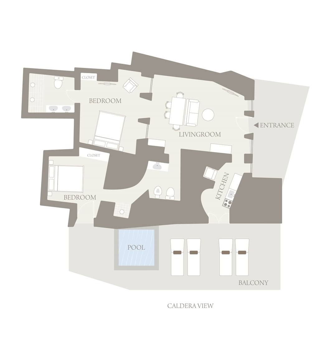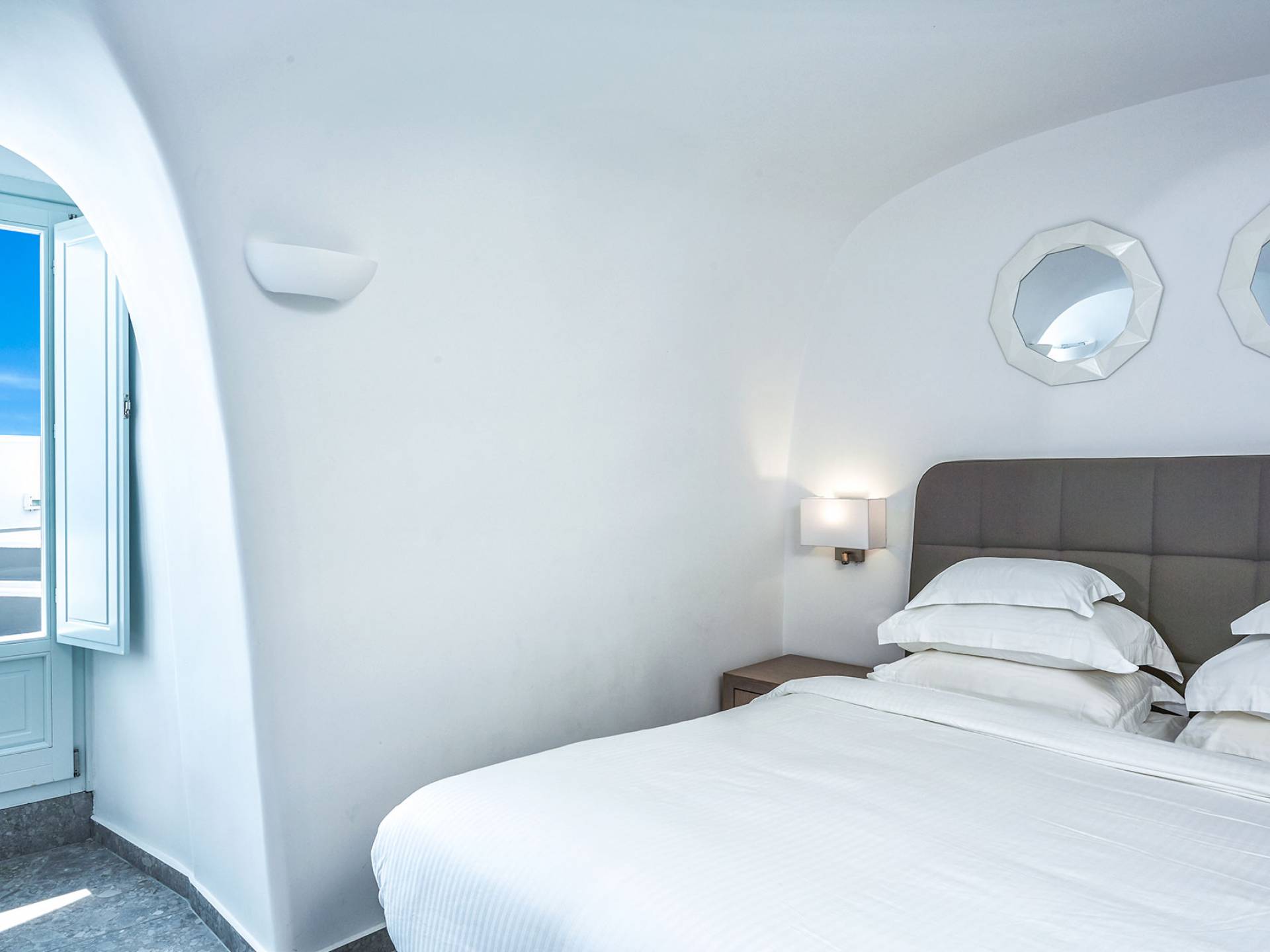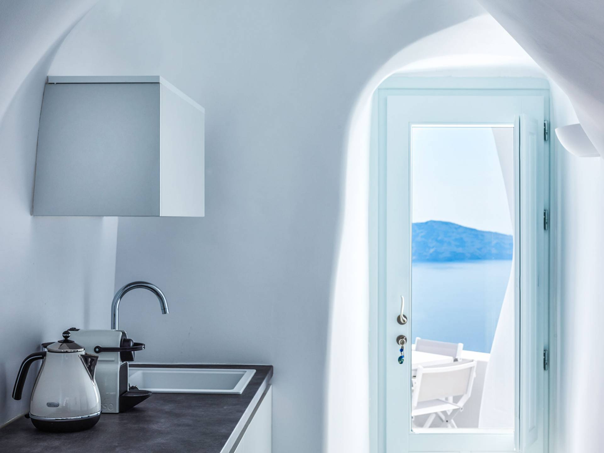 Alongside all the VIP amenities and services you could wish for, you will find your own private hot tub on your balcony. The Two Bedroom Villa with Outdoor Plunge Pool and Caldera View will be the perfect place to unwind in a calm and private setting; it offers spectacular unobstructed views to the volcano, Skaros Rock and the sunset and a hot tub in the balcony.