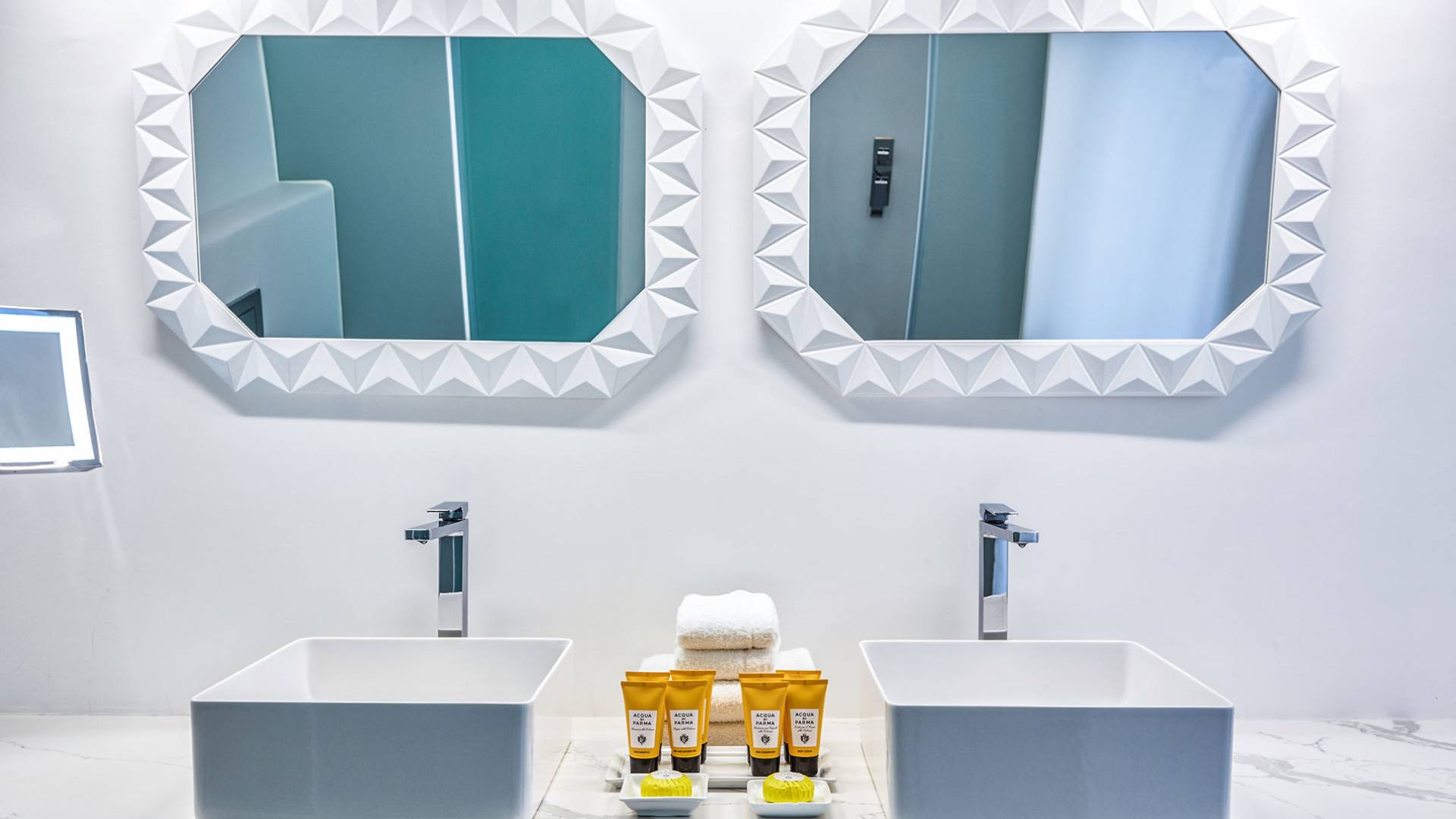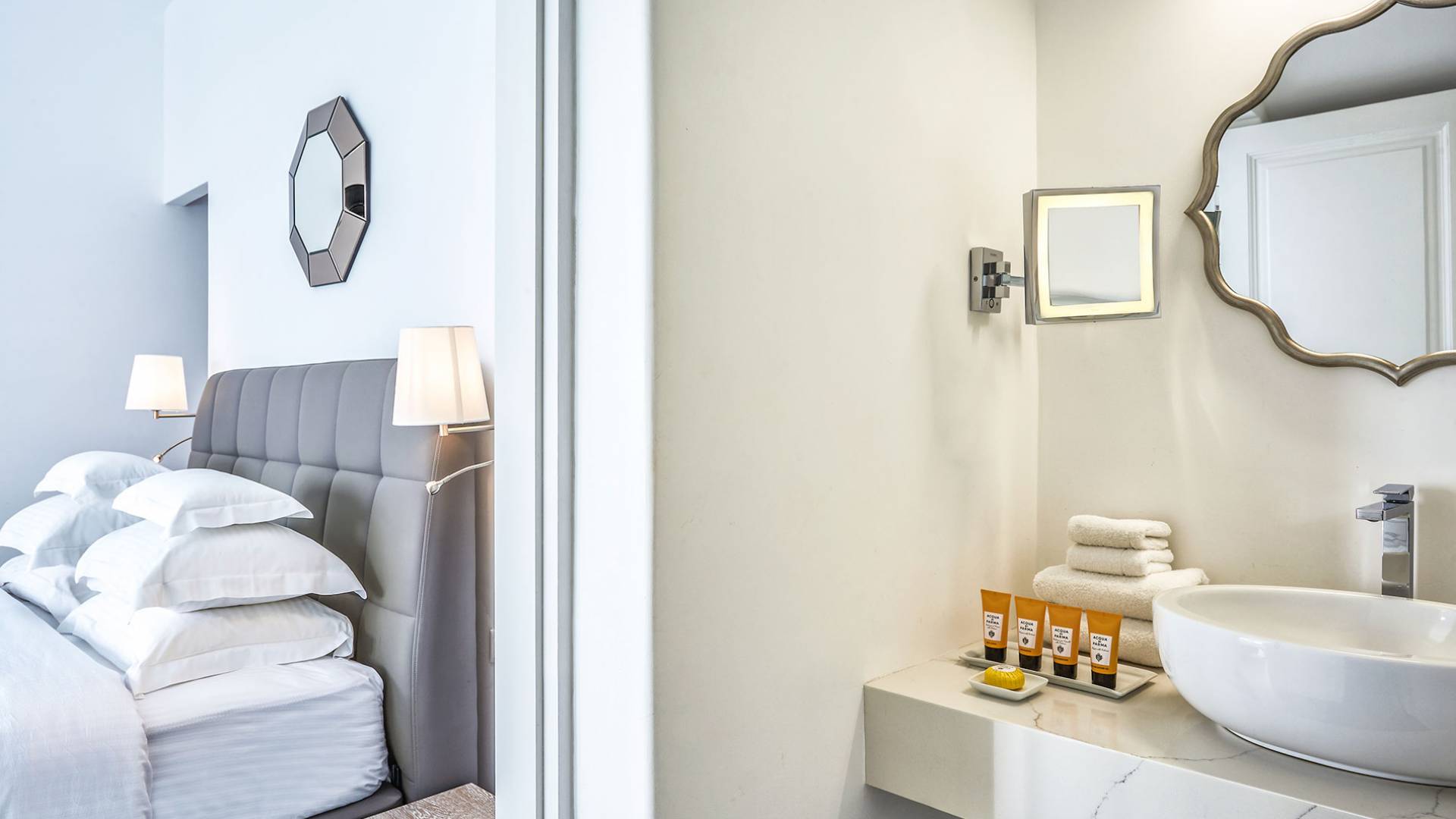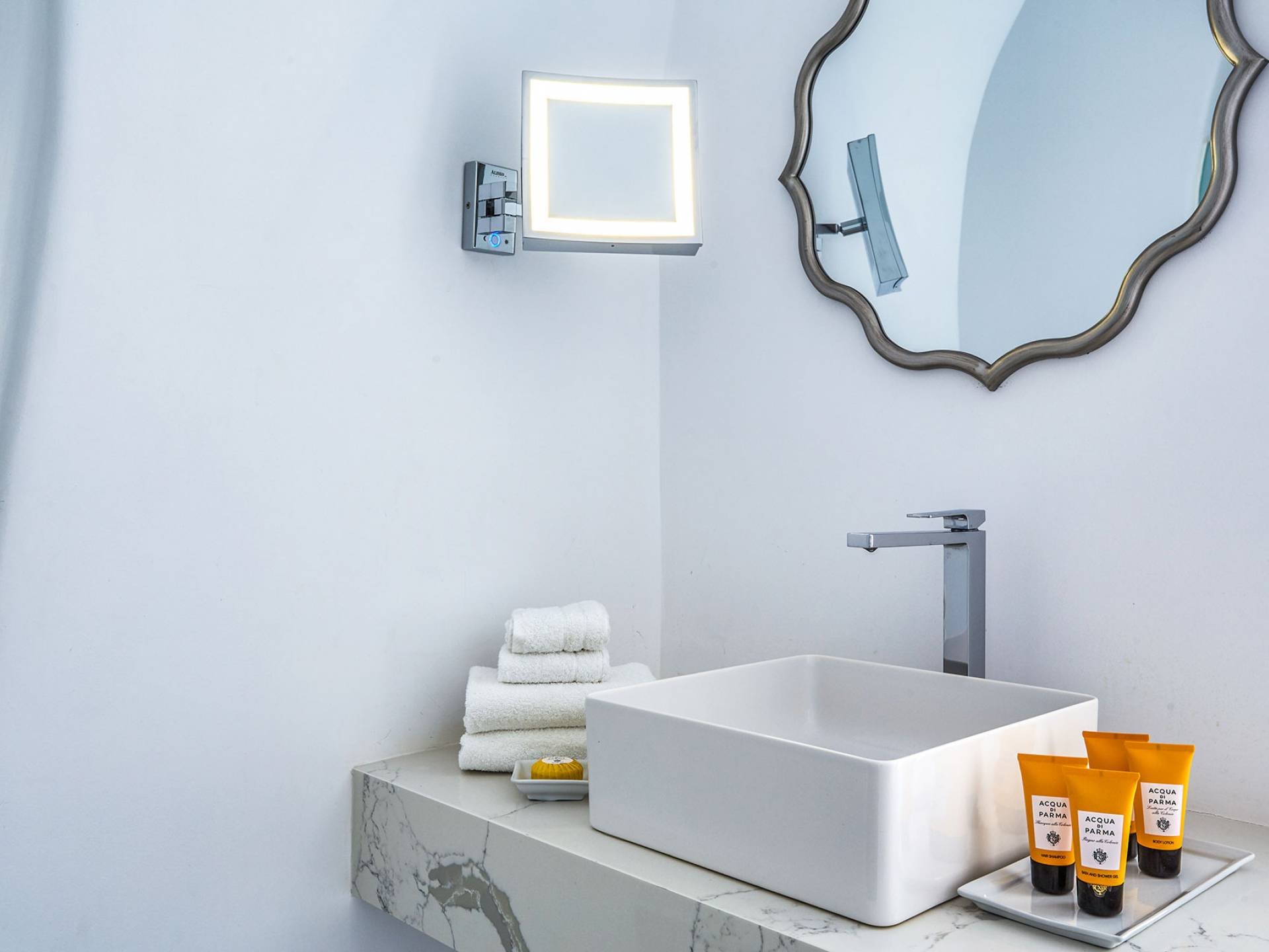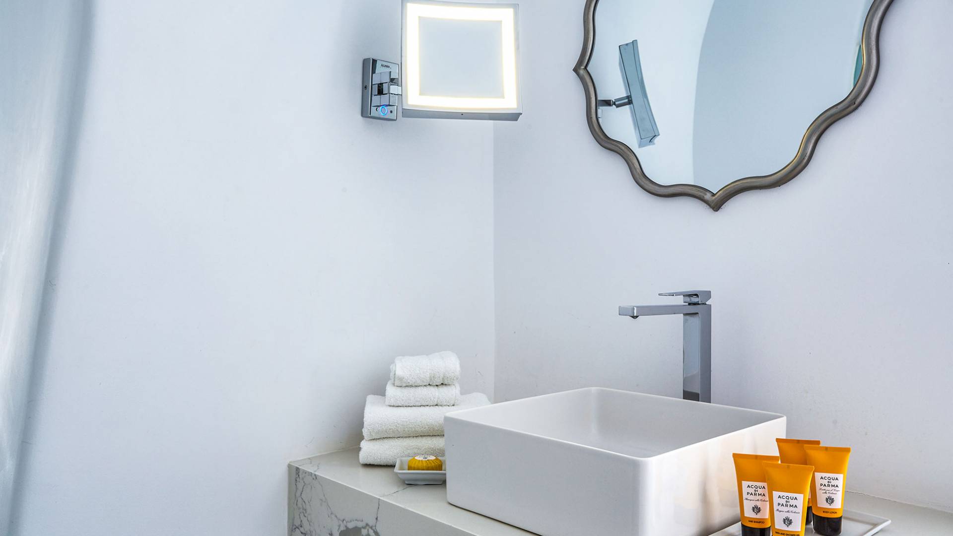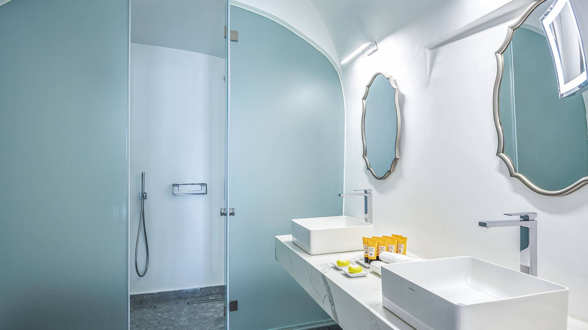 Alongside all the VIP amenities and services you could wish for, you will find your own private hot tub on your balcony. The Two Bedroom Villa with Outdoor Plunge Pool and Caldera View will be the perfect place to unwind in a calm and private setting; it offers spectacular unobstructed views to the volcano, Skaros Rock and the sunset and a hot tub in the balcony.