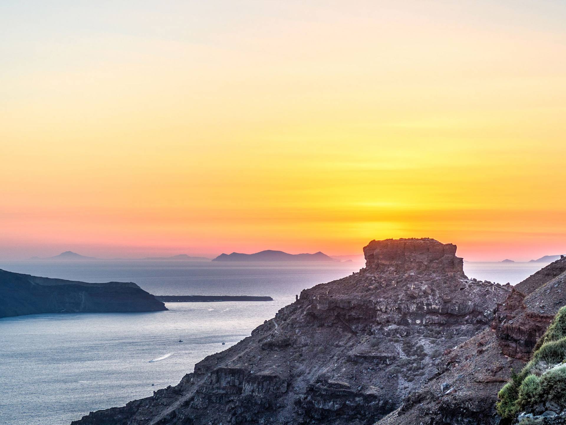 show more detailsImerovigli Santorini is a picturesque village north of Santorini, 2 km from the capital of Fira. The name of Imerovigli comes from the word vigla which means view spot. The position of the village provides a clear view of the caldera and makes it very attractive to tourists. Here you will find many taverns and cafes with stunning views to the caldera. In front of Imerovigli, there is a huge rock called Scaros. On top of it, there is a 13th-century castle which in the past housed all the administrative offices of the island. This part of the island though collapsed after a strong earthquake, and only the hill of Scaros remained. Imerovigli has numerous chapels and churches to display built on the rocks and overlooking the sea. The village is famed to be the ultimate romantic destination.