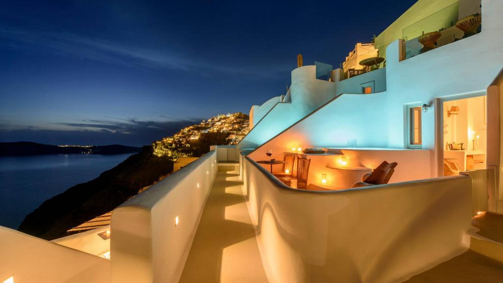show more detailsImerovigli Santorini is a picturesque village north of Santorini, 2 km from the capital of Fira. The name of Imerovigli comes from the word vigla which means view spot. The position of the village provides a clear view of the caldera and makes it very attractive to tourists. Here you will find many taverns and cafes with stunning views to the caldera. In front of Imerovigli, there is a huge rock called Scaros. On top of it, there is a 13th-century castle which in the past housed all the administrative offices of the island. This part of the island though collapsed after a strong earthquake, and only the hill of Scaros remained. Imerovigli has numerous chapels and churches to display built on the rocks and overlooking the sea. The village is famed to be the ultimate romantic destination.