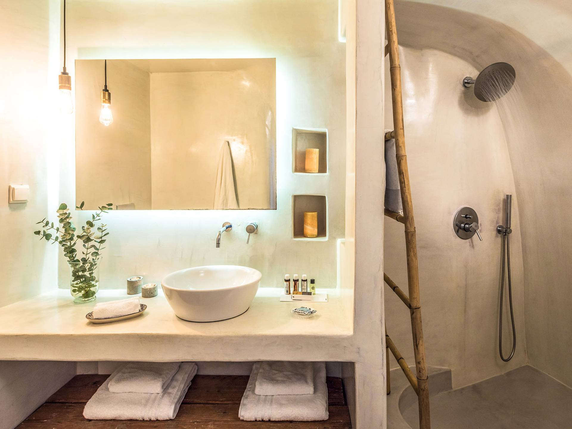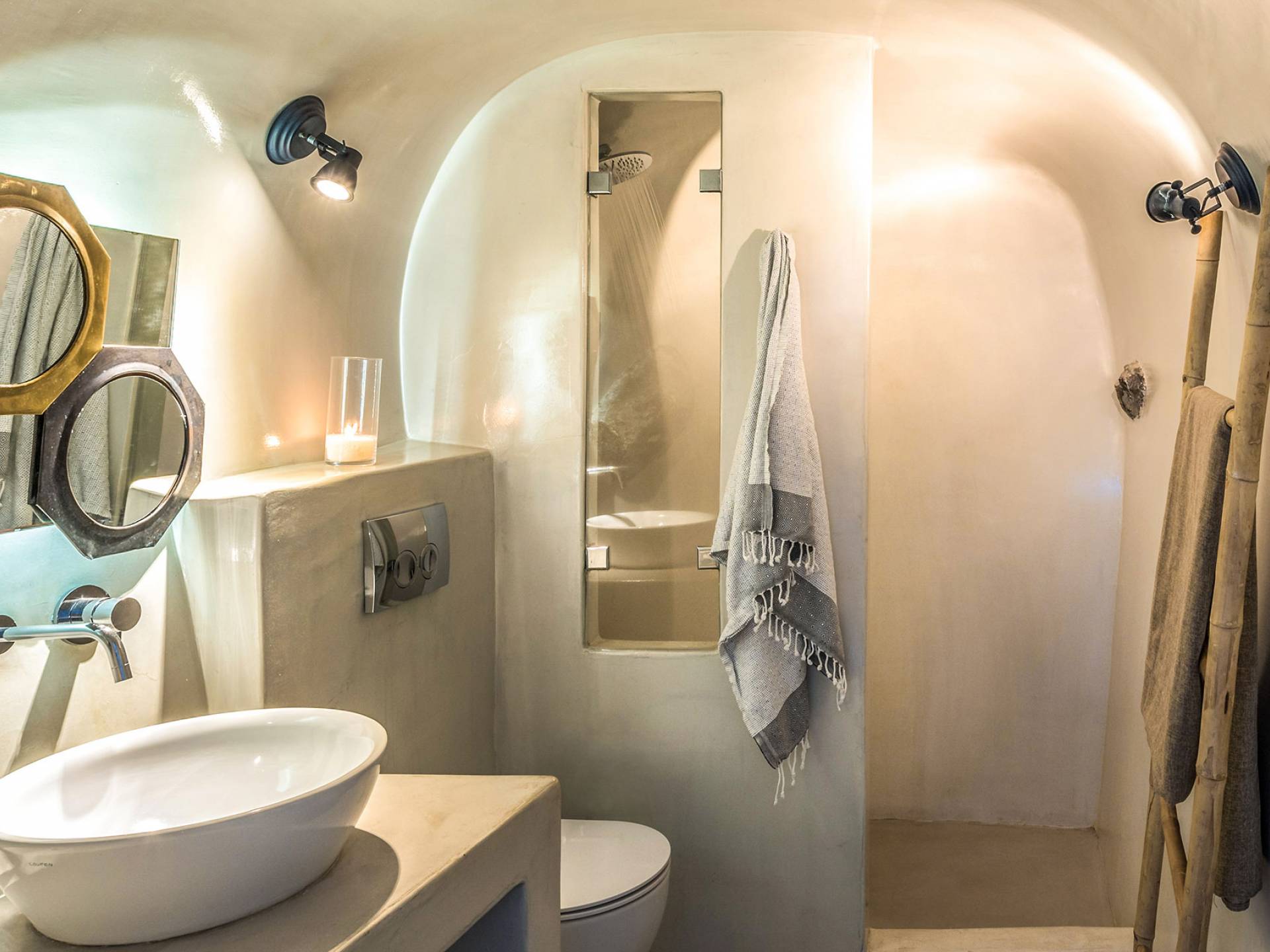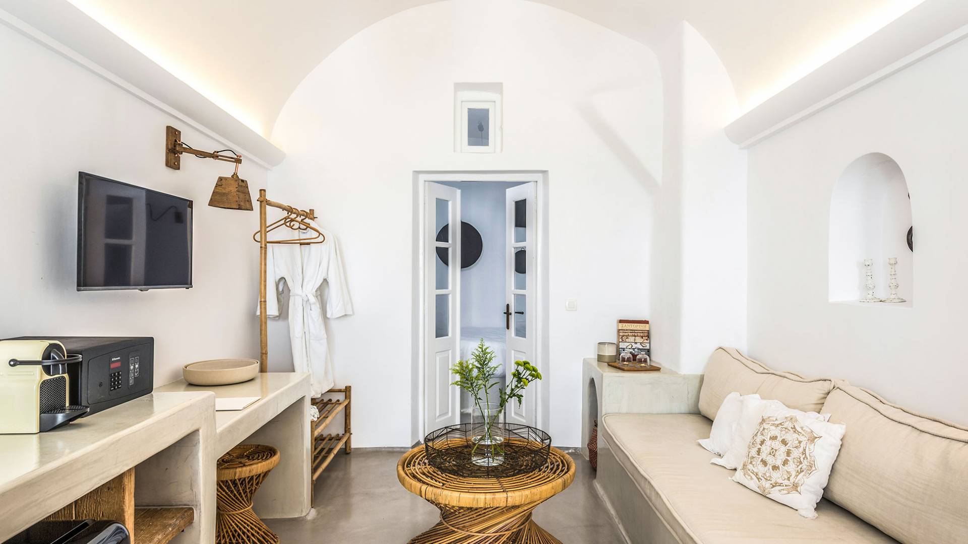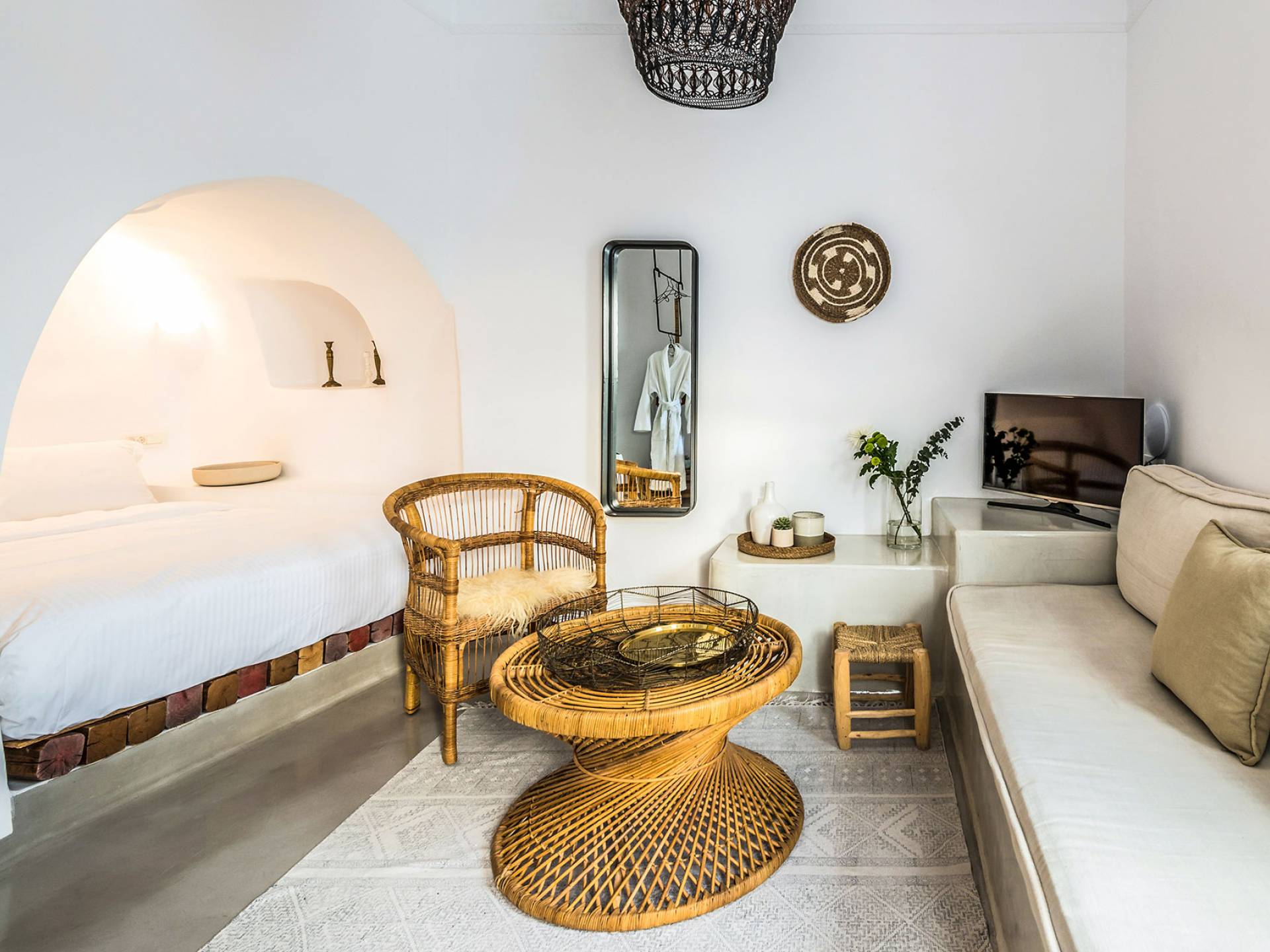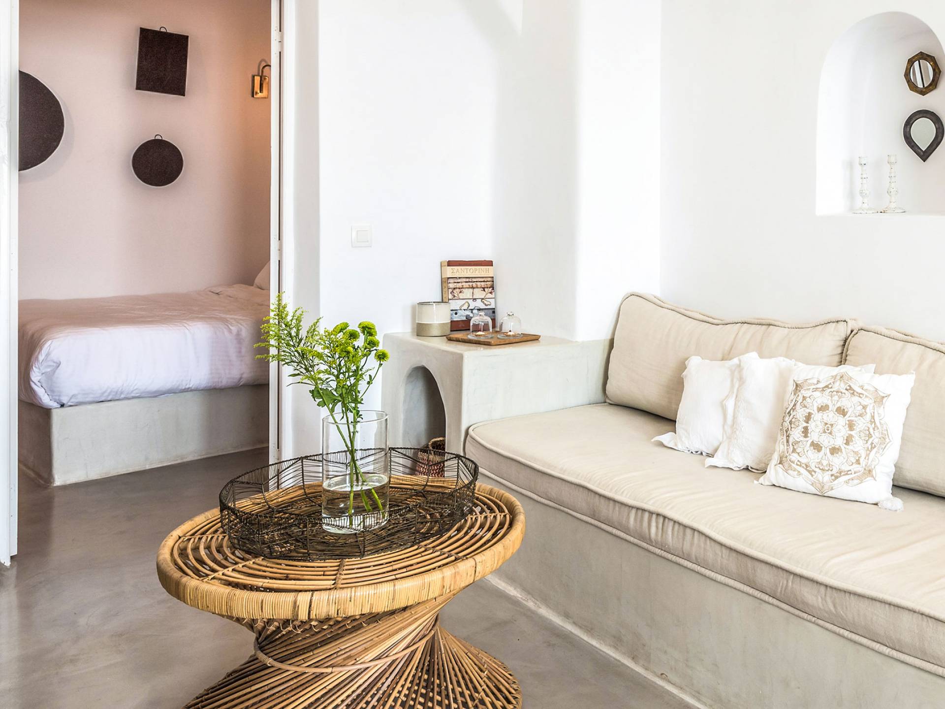The eight Cocoon Suites Santorini 5* bring a fresh new outlook on hospitality. Each is individually decorated with unique details for each room, creating an intimate atmosphere “cave-art style”, with natural materials like rocks and driftwood. Elegant, stylish simplicity is dressed in soft tranquil tones while also providing all the modern unpretentious comforts of barefoot luxury.