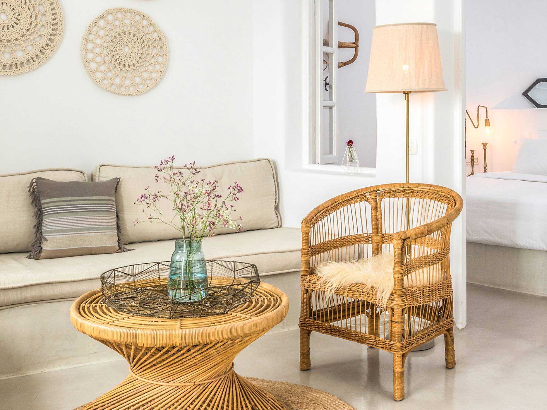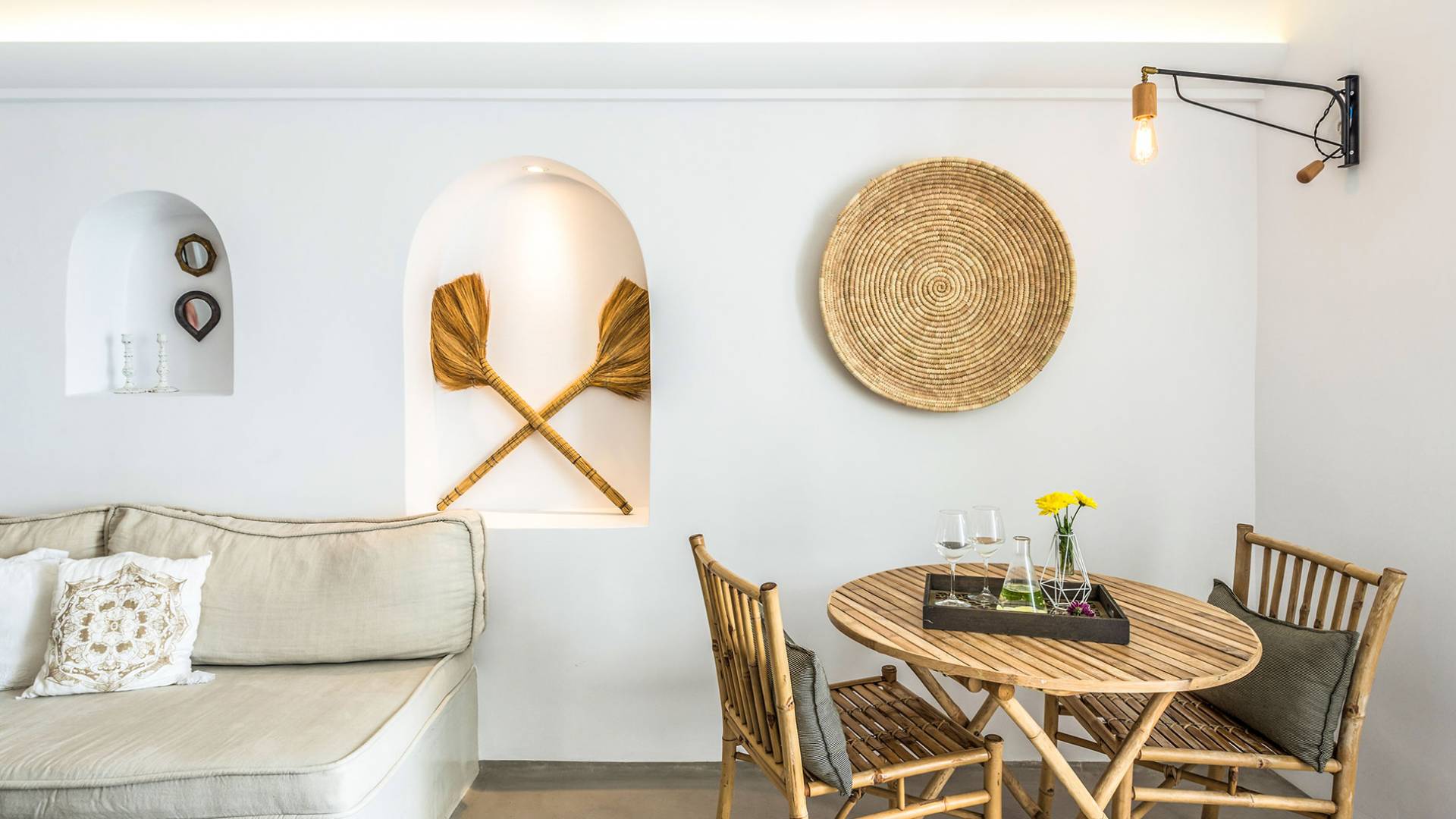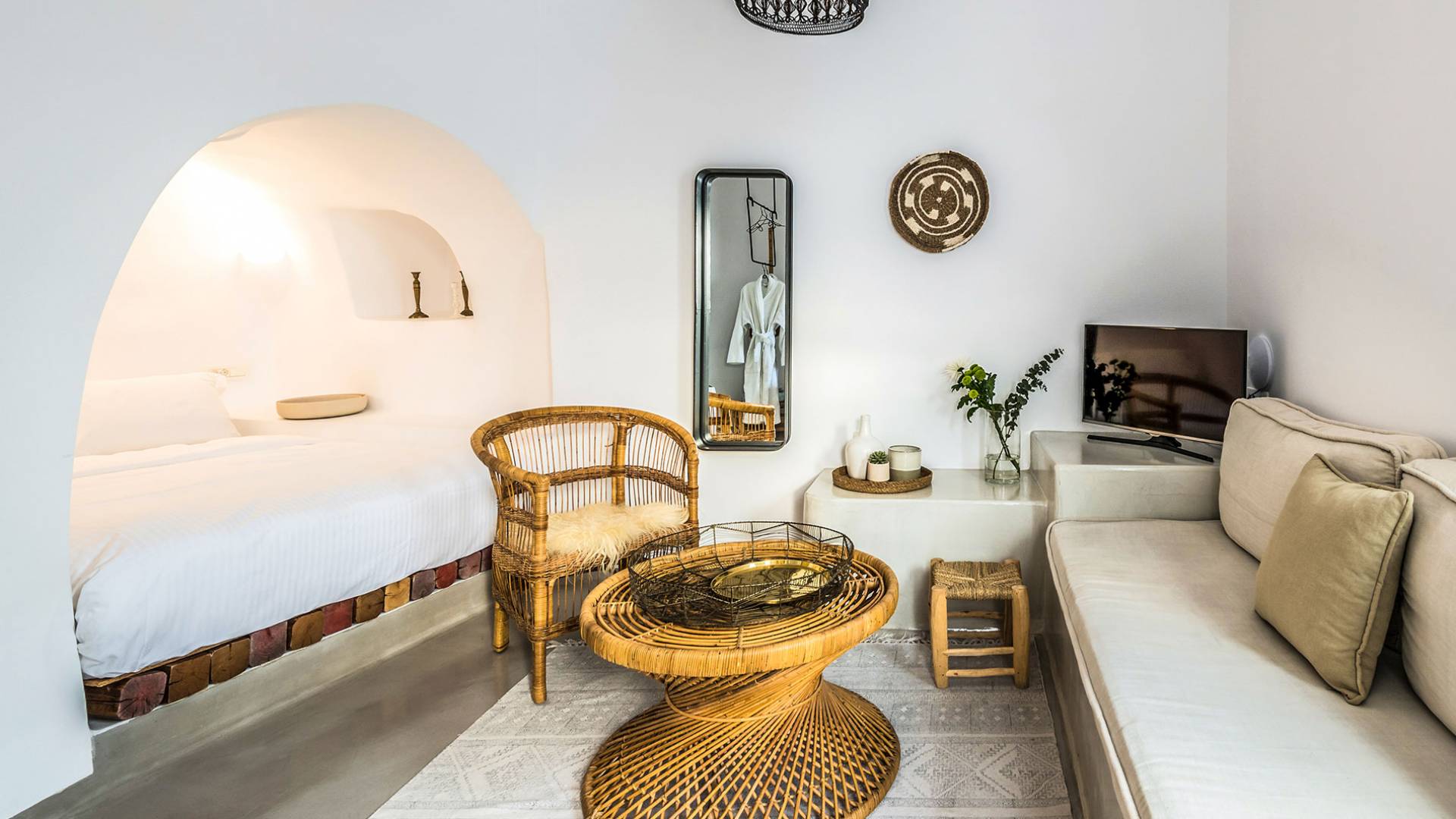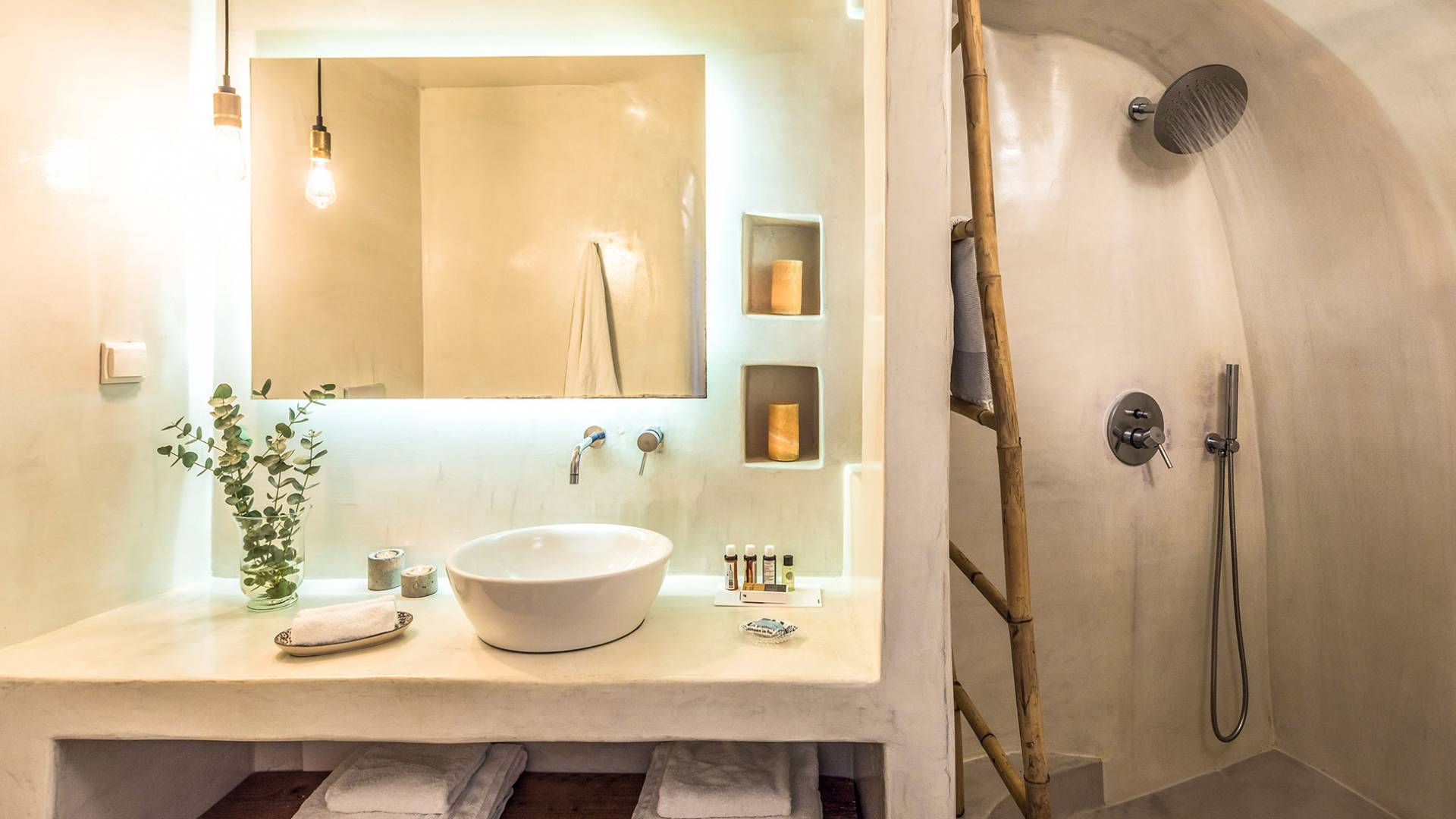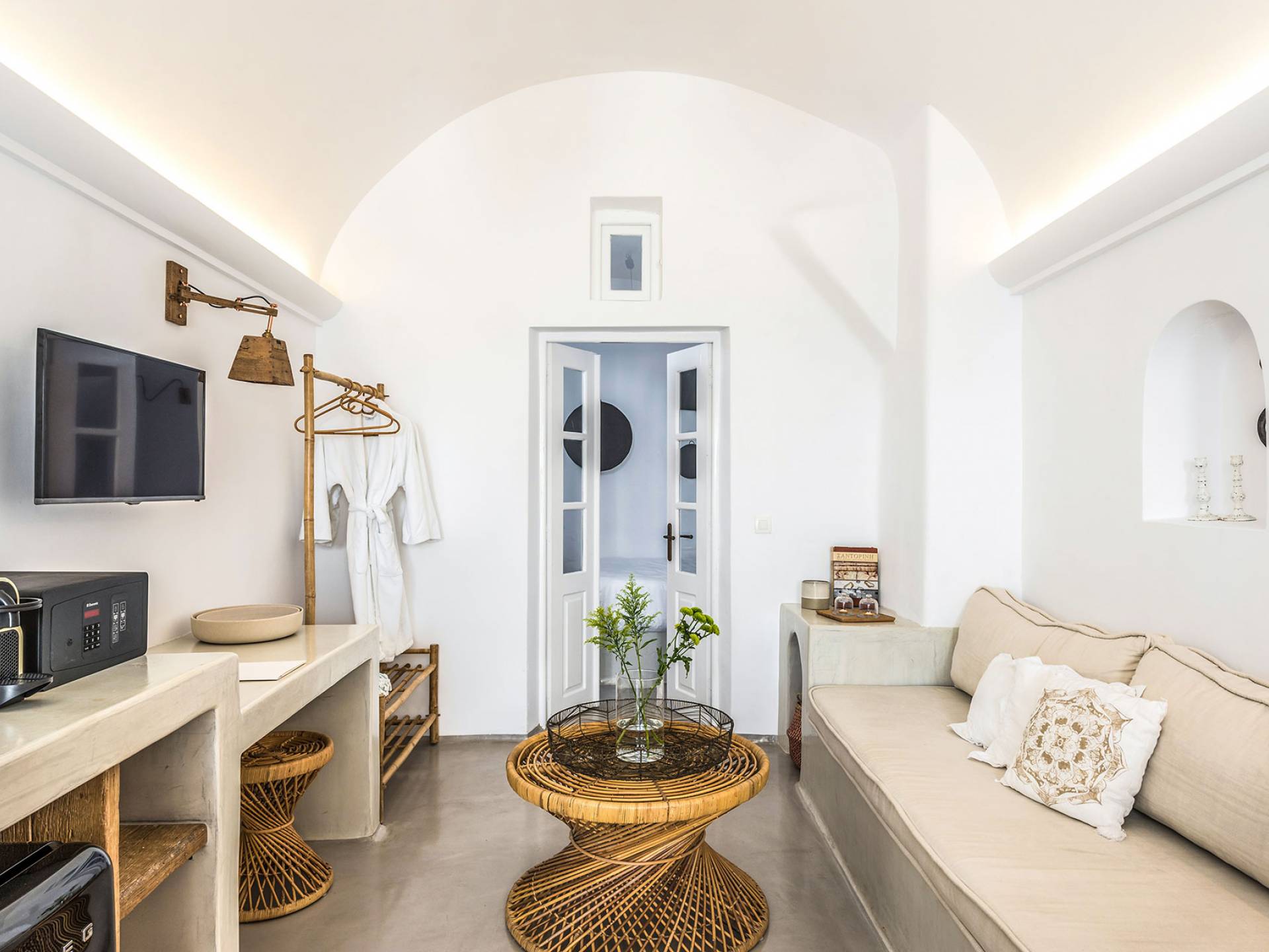 The eight Cocoon Suites Santorini 5* bring a fresh new outlook on hospitality. Each is individually decorated with unique details for each room, creating an intimate atmosphere “cave-art style”, with natural materials like rocks and driftwood. Elegant, stylish simplicity is dressed in soft tranquil tones while also providing all the modern unpretentious comforts of barefoot luxury.