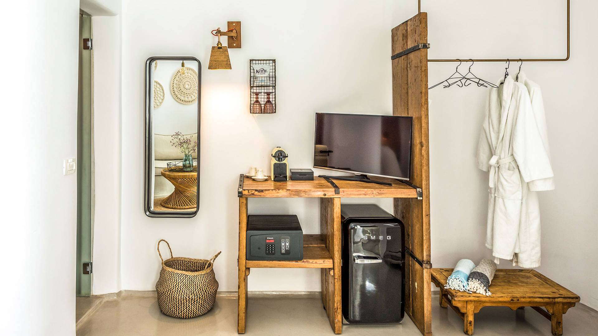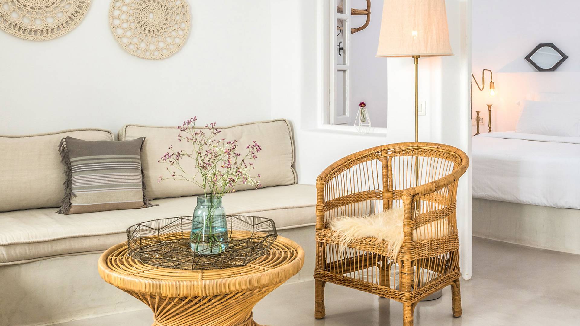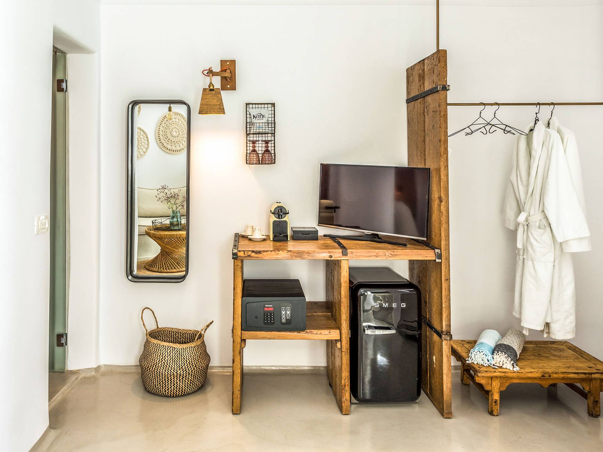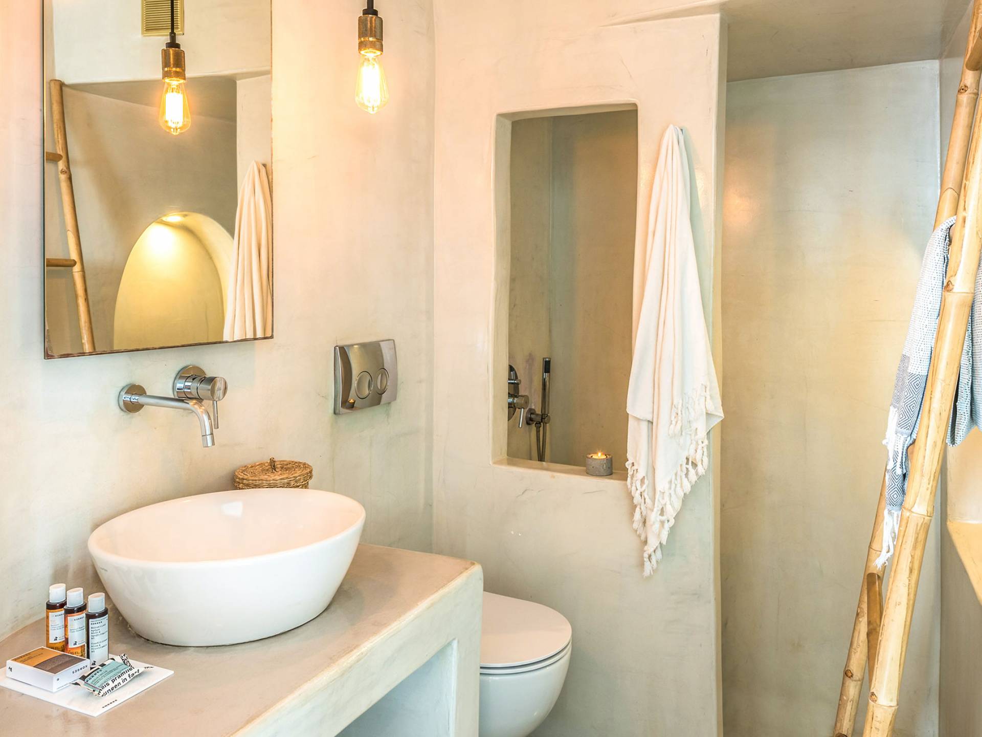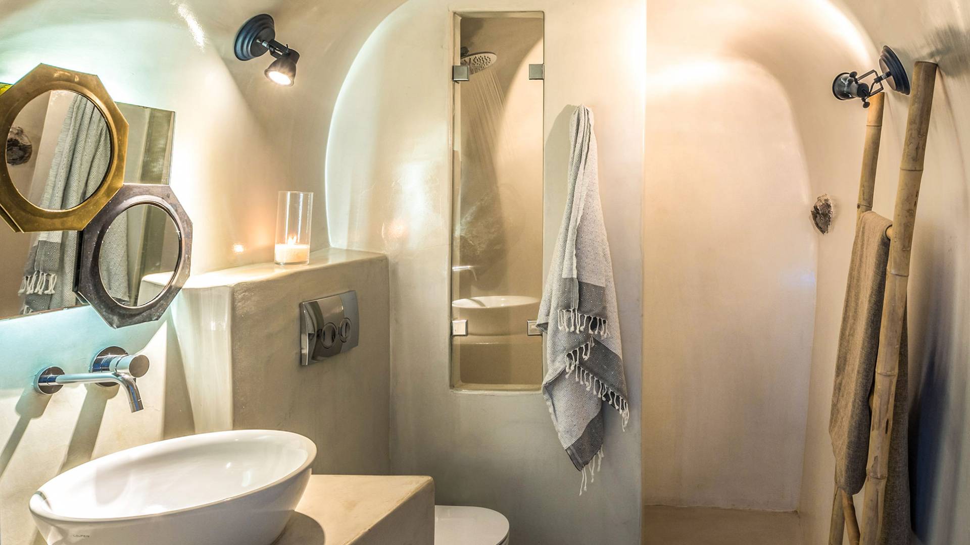 The eight Cocoon Suites Santorini 5* bring a fresh new outlook on hospitality. Each is individually decorated with unique details for each room, creating an intimate atmosphere “cave-art style”, with natural materials like rocks and driftwood. Elegant, stylish simplicity is dressed in soft tranquil tones while also providing all the modern unpretentious comforts of barefoot luxury.