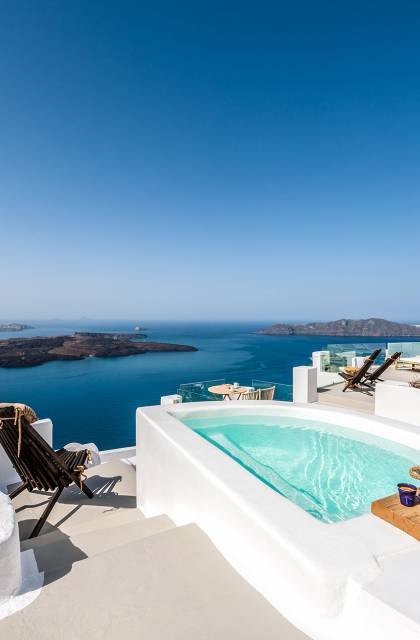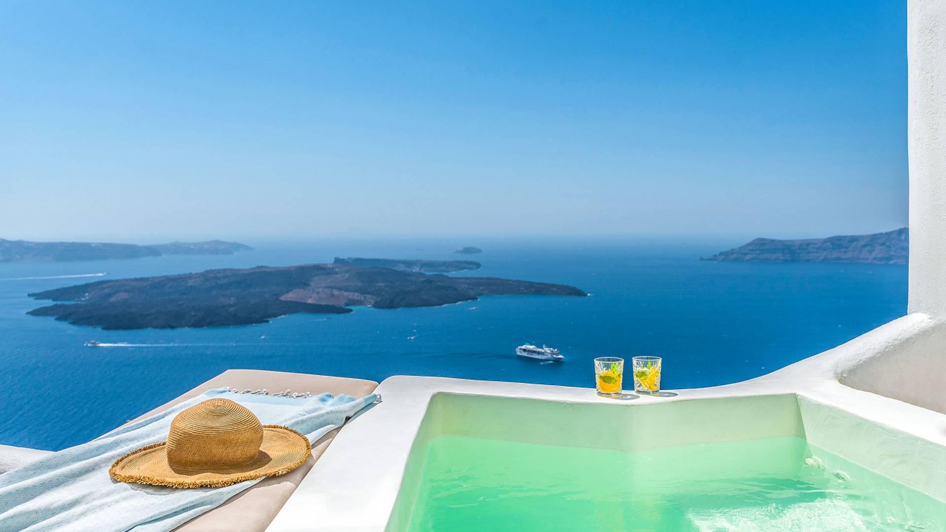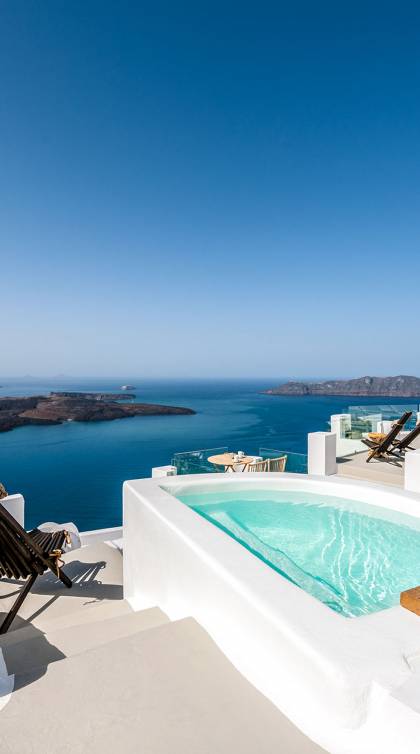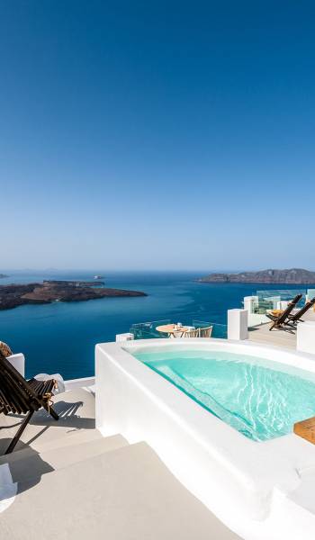 Honeymoon Suite at Cocoon Suites Santorini is a luxury suite rental with 1 bedroom and a hot tub. Cocoon Suites is located in Imerovigli, Santorini. View photos, rates and info here.