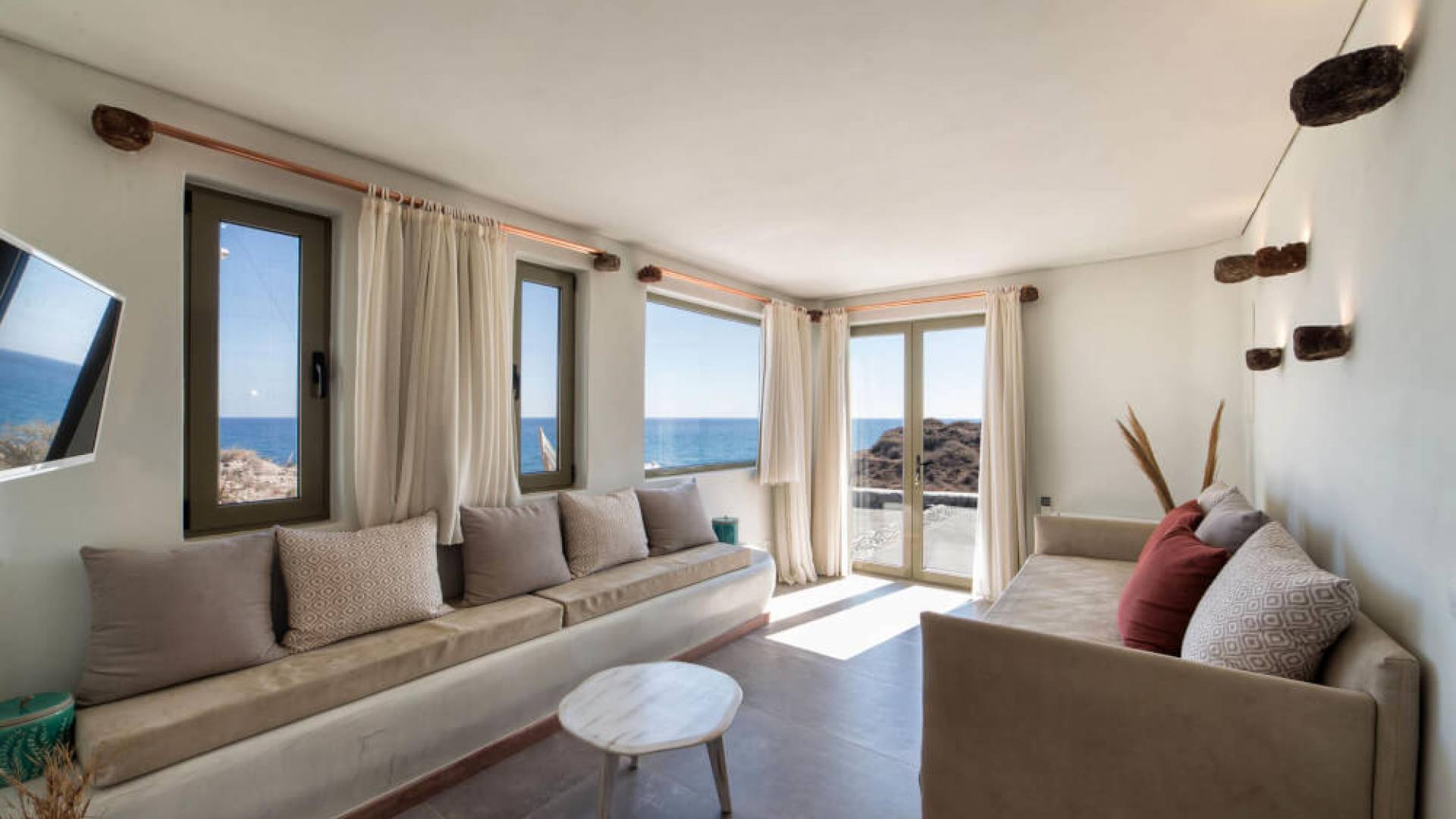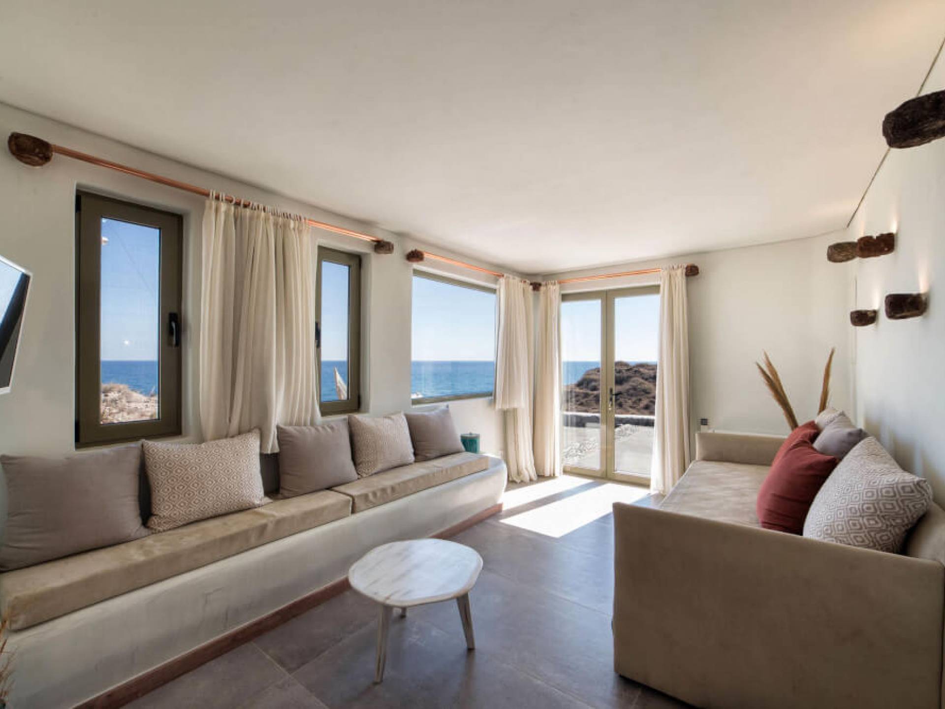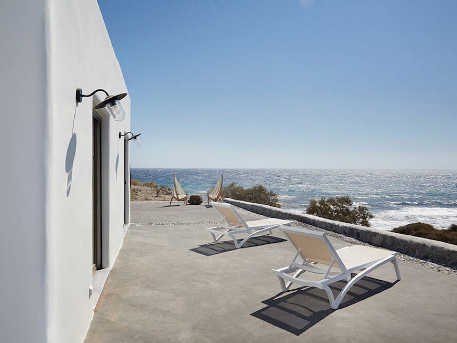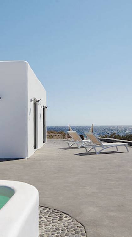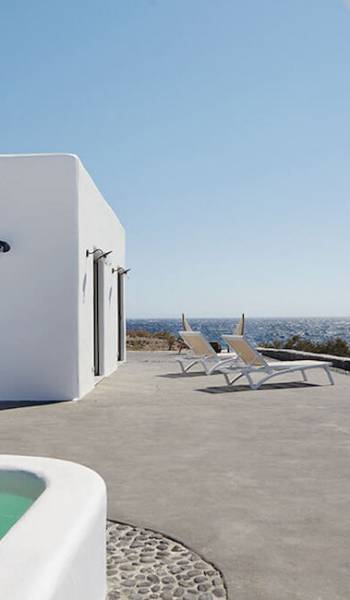What will surely intrigue you is the massive exterior veranda Villa Casa Di Mare Santorini boasts its unique view! You will find your own heaven on earth as the infinite blue will accompany you throughout the whole day in our luxurious Villa. An outdoor heated hot tub is also part of the veranda, ideal for moments of relaxation by the sea. An outdoor living area which is looking out to the sea as well as a brand new BBQ which you can use it, particularly during evening hours as it is situated on the Eastern side of the veranda.