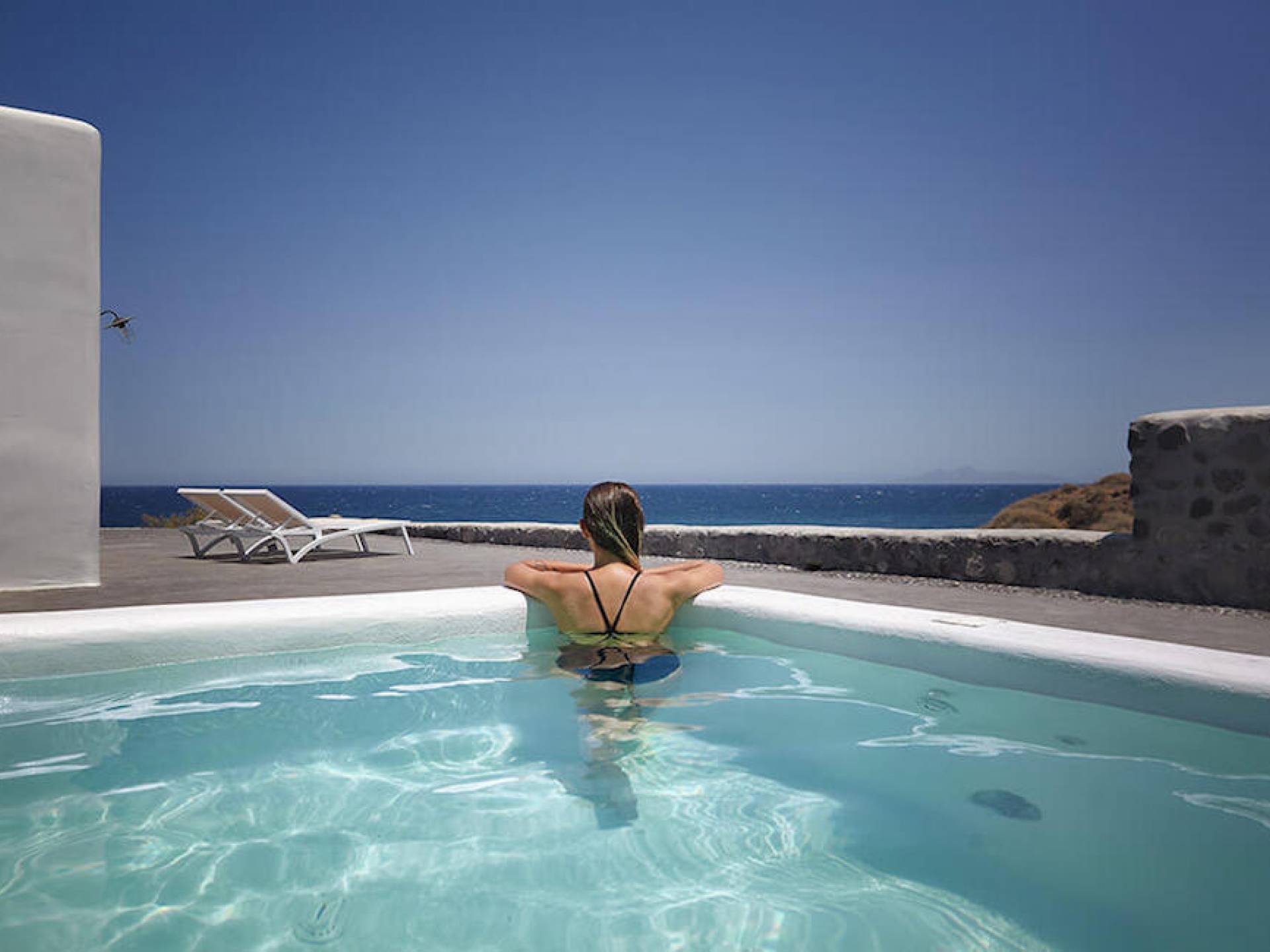 Color blue, sun and luxury, nothing can beat this combination. What else is there to ask for your vacation? Indulge yourself in a heated private pool in the coziness of your own villa, either an indoor or outdoor one. The water is healing and therapeutic…