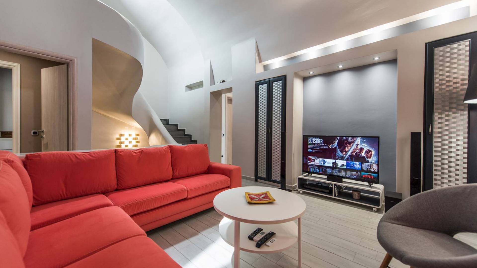 Platinum Villa Santorini is a luxury villa rental with 3 bedrooms. Platinum Villa is situated a few meters away from the sea. The air-conditioned villa has 3 bedrooms, a fully equipped kitchen with a dishwasher, and 3 bathrooms with a bath. A flat-screen TV is available.