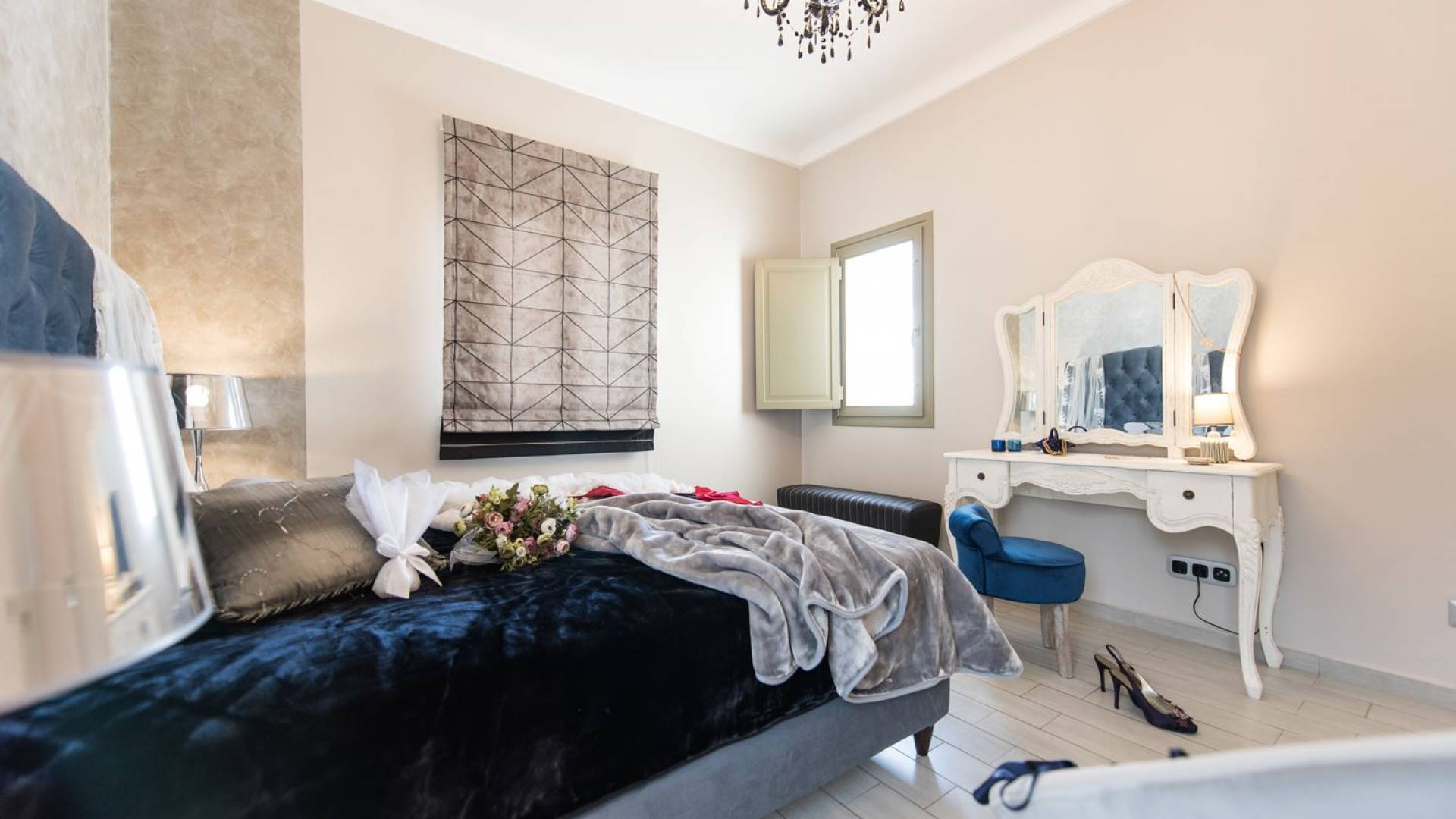 The amenities of the luxury rental cover even the most demanding visitor, having all the comforts that one would expect to find in a modern luxurious residence. From the fully equipped kitchen to the spacious and air-conditioned rooms, everything has been designed and created to offer you an unforgettable stay experience. Leave the doors and windows open to enjoy the glorious sun that floods the house. The villa can comfortably sleep up to 6 guests in privacy, luxury, and comfort. So it’s an ideal choice for families, groups of friends. The spacious and open design of Platinum Villa creates the perfect setting for a marvelous holiday. You and your guests can relax in complete comfort, enjoy typical Mediterranean outdoor living and entertainment as well as experience authentic island living on one of the most delightful spots in the Mediterranean.