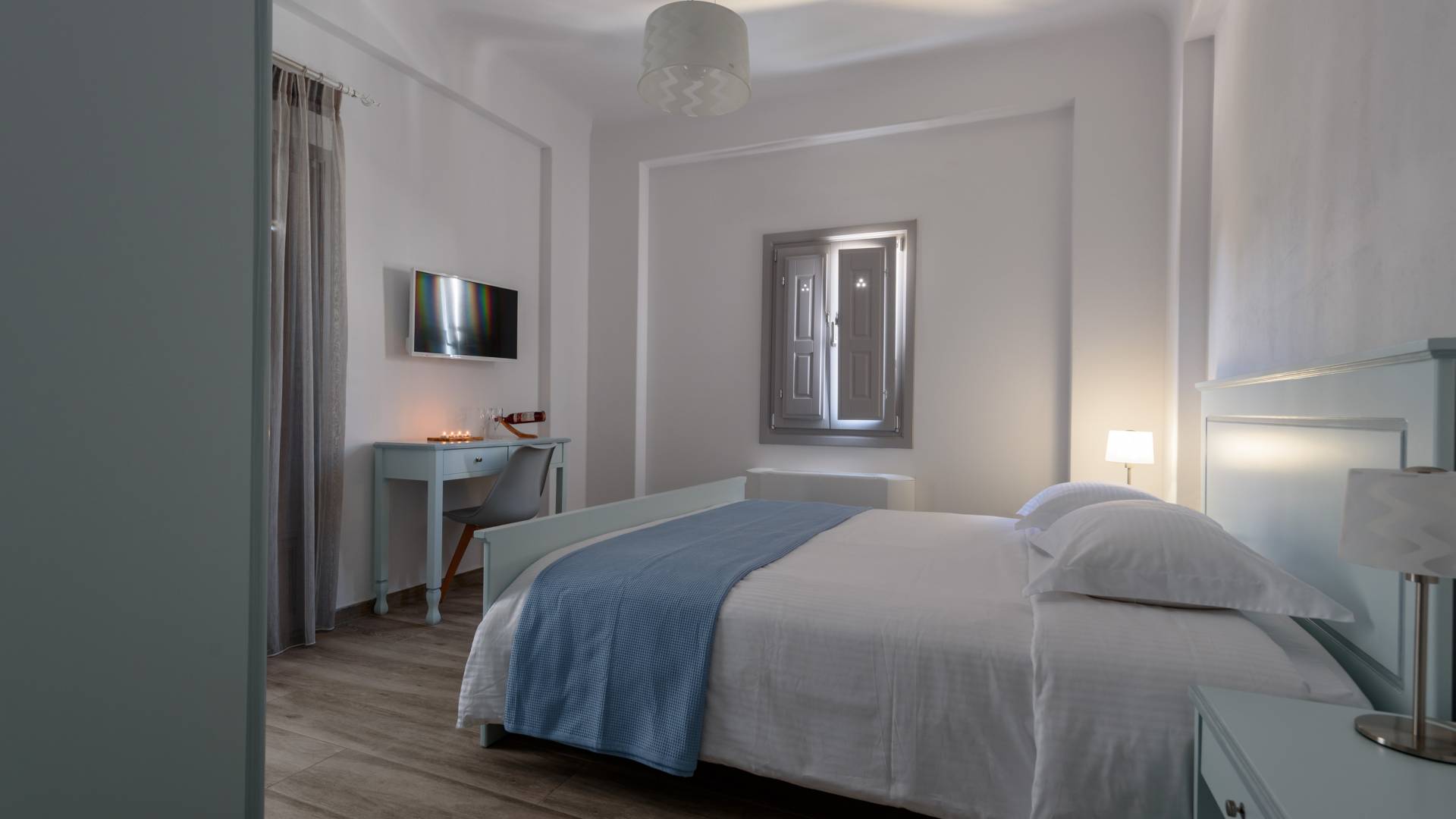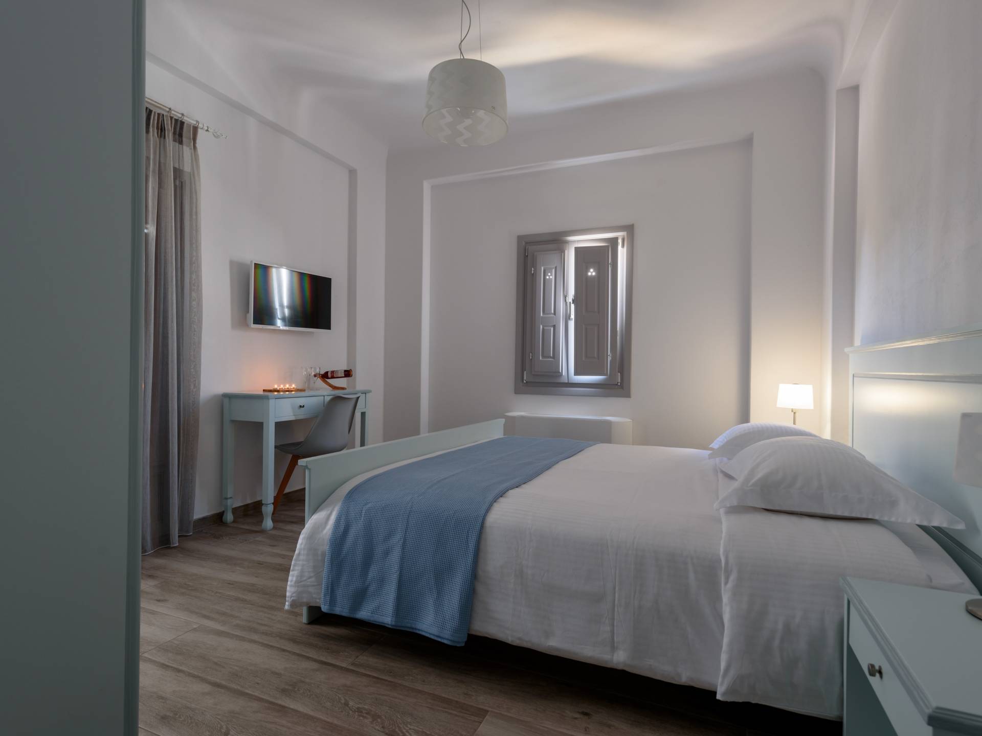 Set in Karterados Santorini, Ikies Filoxenia. The accommodation is air conditioned and comes with a flat-screen TV with satellite channels. Some units have a terrace and/or balcony with garden views. A toaster is also available, as well as a coffee machine and a kettle. Every unit is fitted with a private bathroom with a bath or shower and free toiletries. Bed linen is provided.