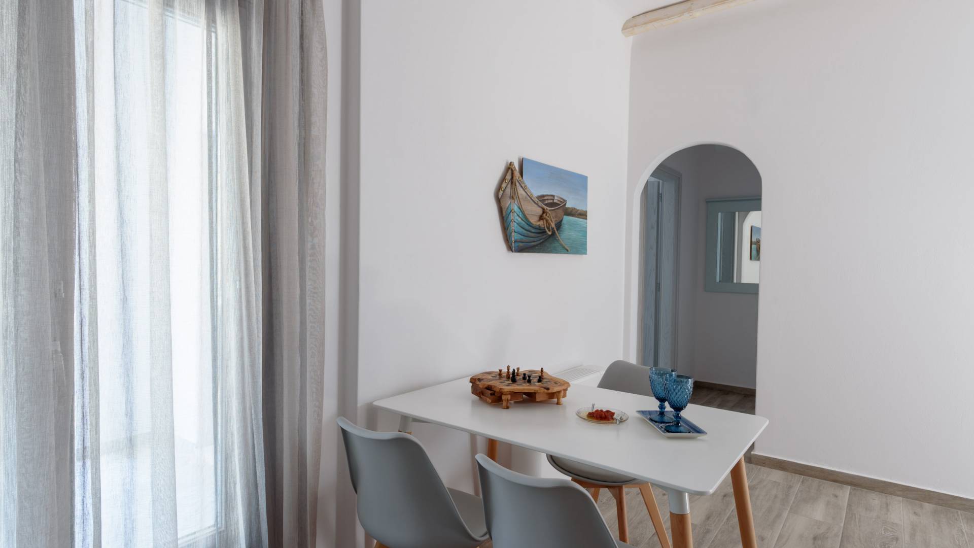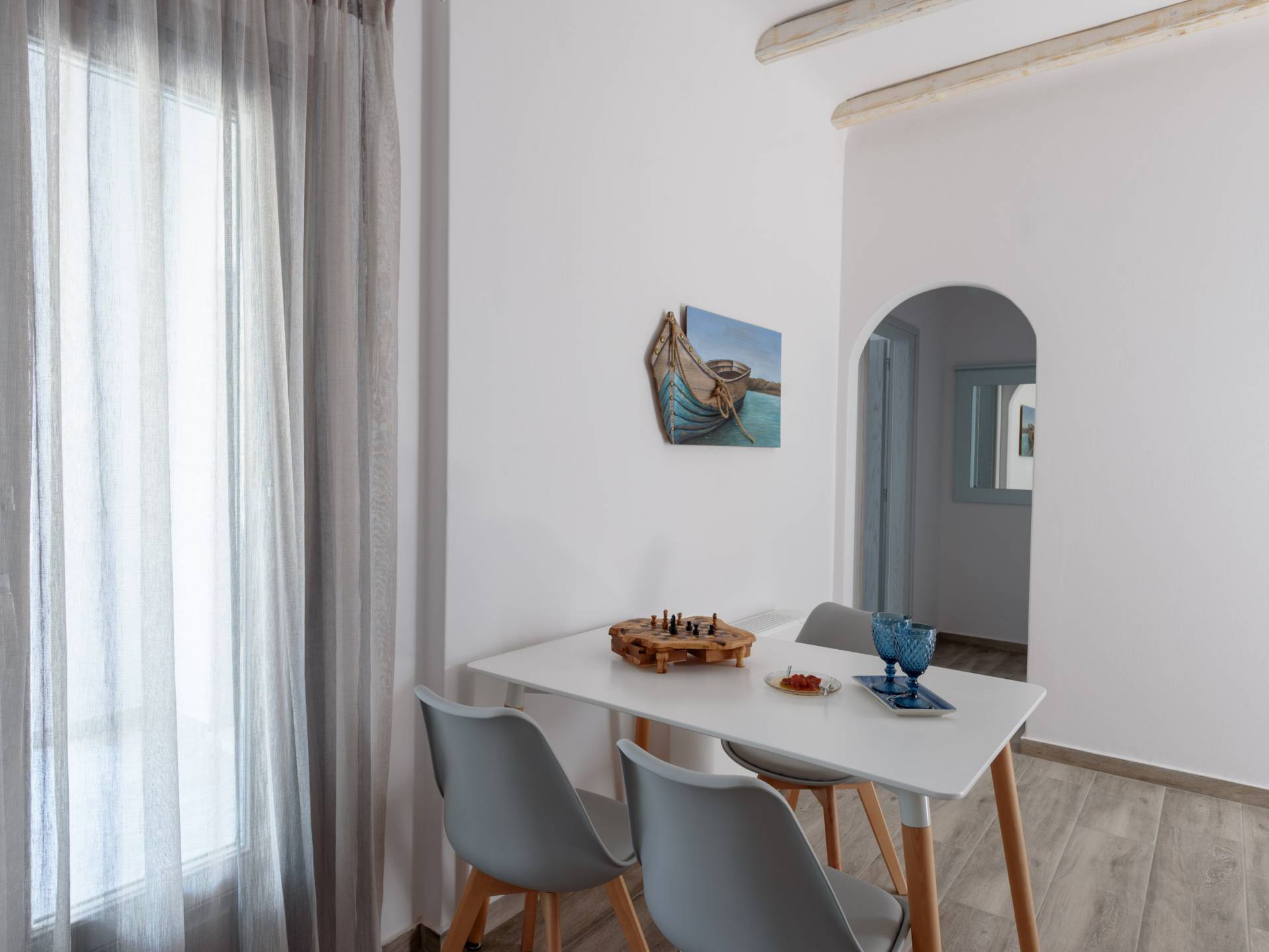 show more detailsKarterados in Santorini is a picturesque village just 2 km away from the town of Fira. The village stands out for its breathtaking nature, set among dreamy vineyards and displaying unique architecture. Agios Nikolaos is worth a visit for its amazing view. Karterados includes stone built houses and 19th-century elegant mansions that many ship-owners built here revealing the prosperity of the past. Nearby is the rocky beach of Exo Gialos. Karterados offers a plethora of modern amenities such as sports facilities, ethnic cuisine, cute cafes and lively bars. Its local character hides in shops such as an old bakery preparing homemade bread and delicious traditional goodies.