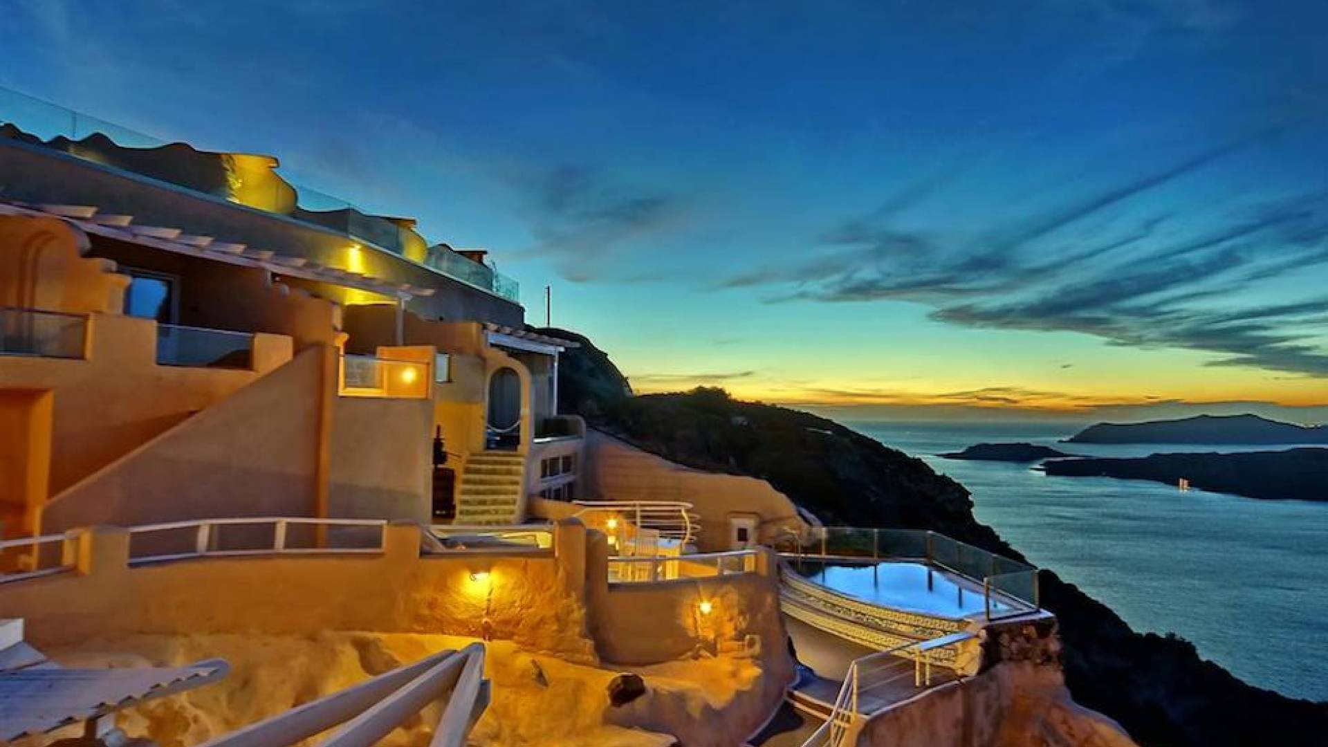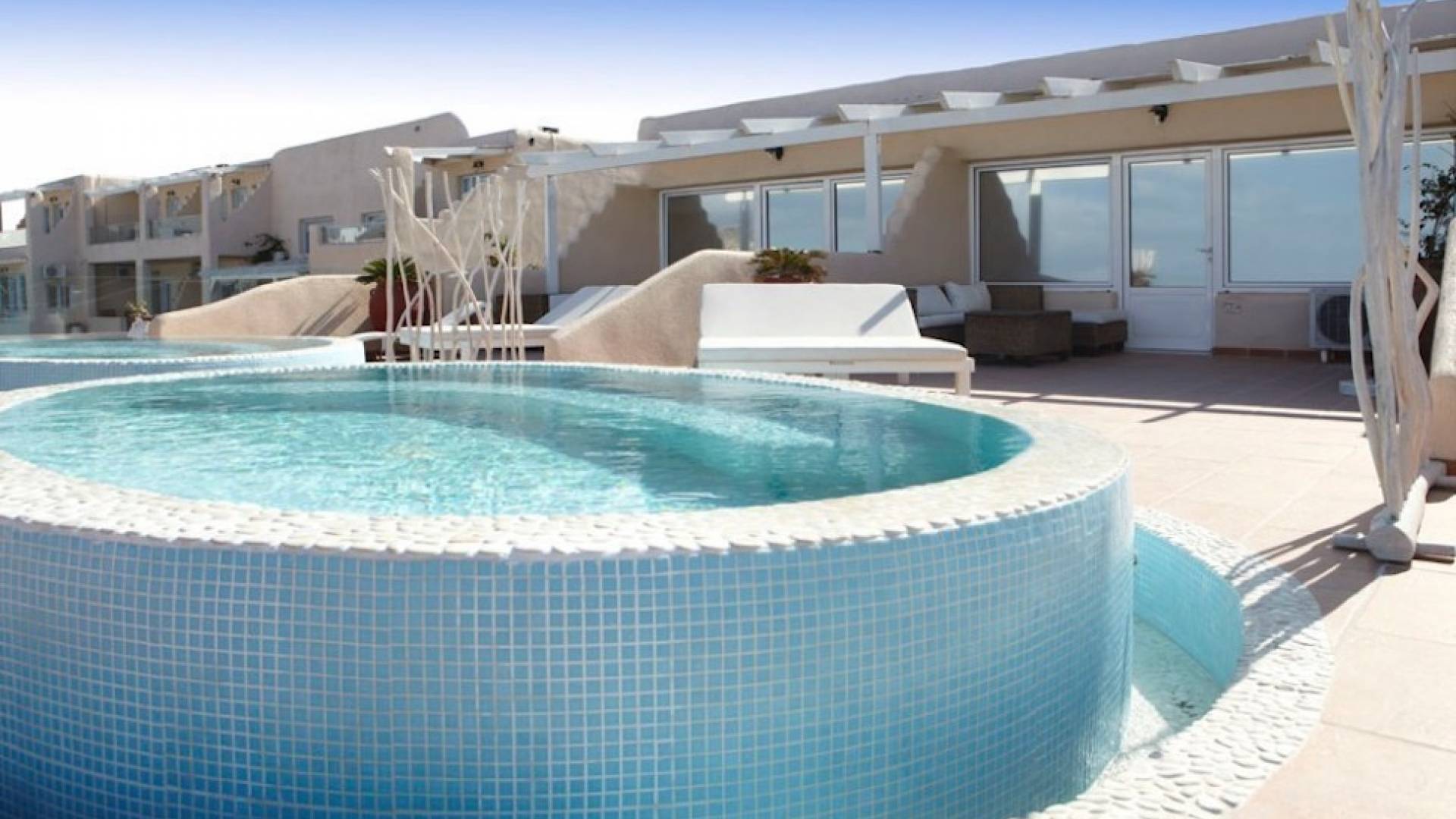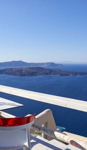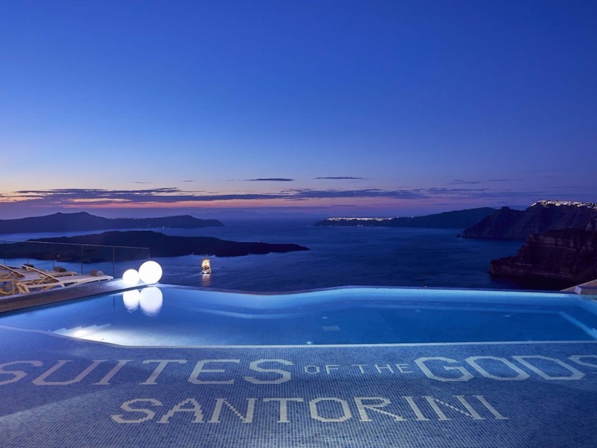 The newly built Suites of the Gods Luxury Suites is situated above Athinios port overlooking the enchanting Caldera, which lies in the middle of the Aegean Sea. Because of its privileged position, the Suites of the Gods Luxury Suites is considered to be in one of the finest spots of the island. It offers a magnificent view of the legendary volcano, the blue Aegean, and the glorious sunsets ideal for weddings, private parties, business meetings, and conferences.