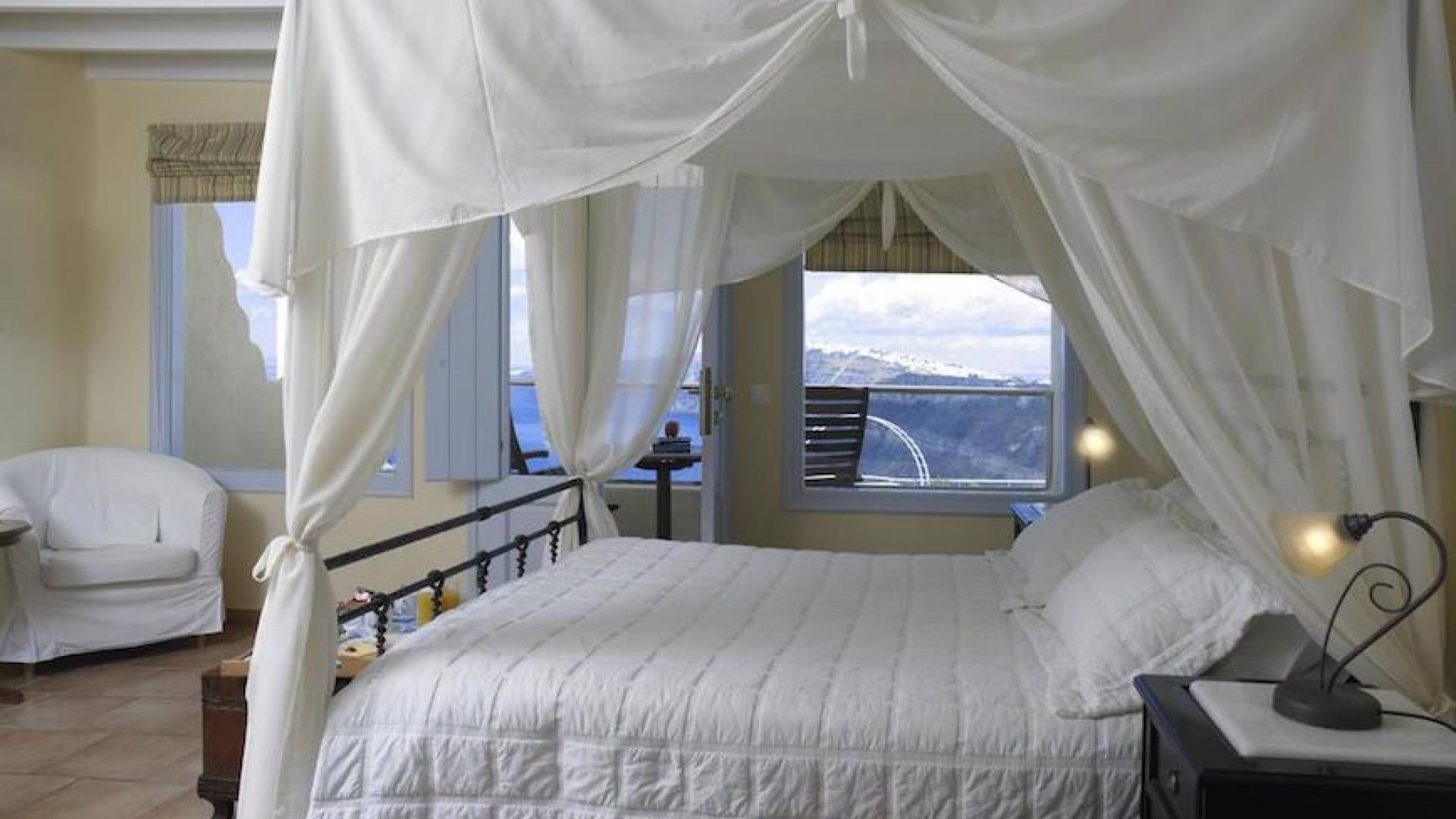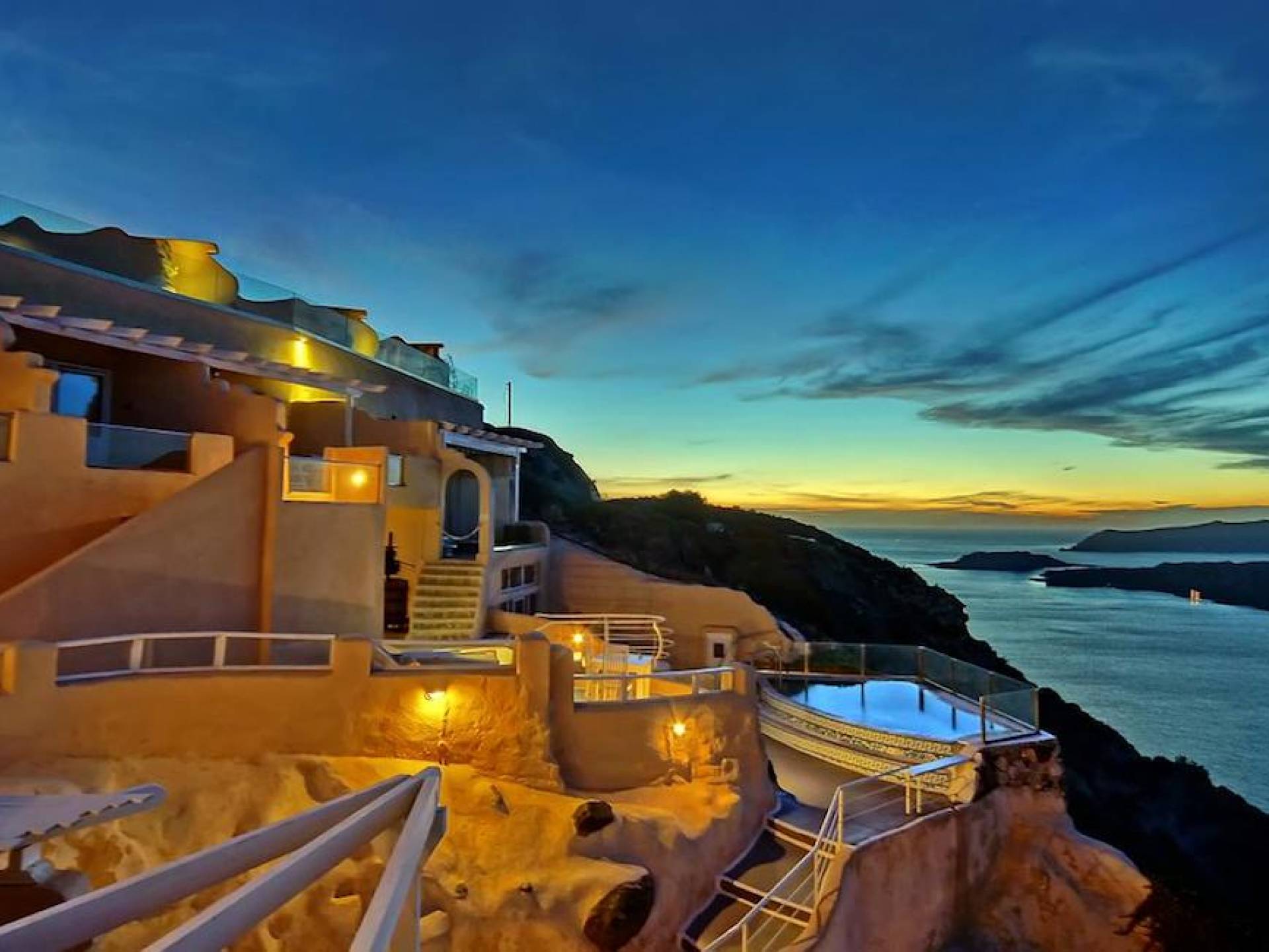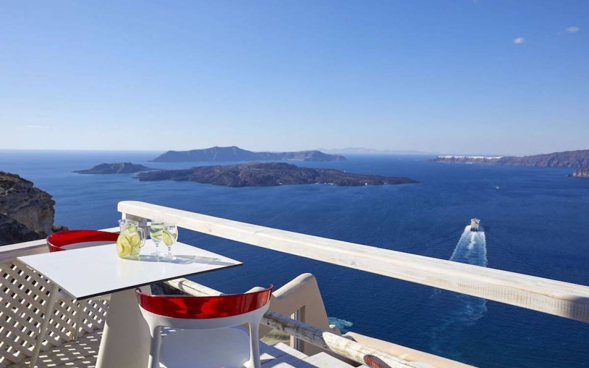 The newly built Suites of the Gods Luxury Suites is situated above Athinios port overlooking the enchanting Caldera, which lies in the middle of the Aegean Sea. Because of its privileged position, the Suites of the Gods Luxury Suites is considered to be in one of the finest spots of the island. It offers a magnificent view of the legendary volcano, the blue Aegean, and the glorious sunsets ideal for weddings, private parties, business meetings, and conferences.