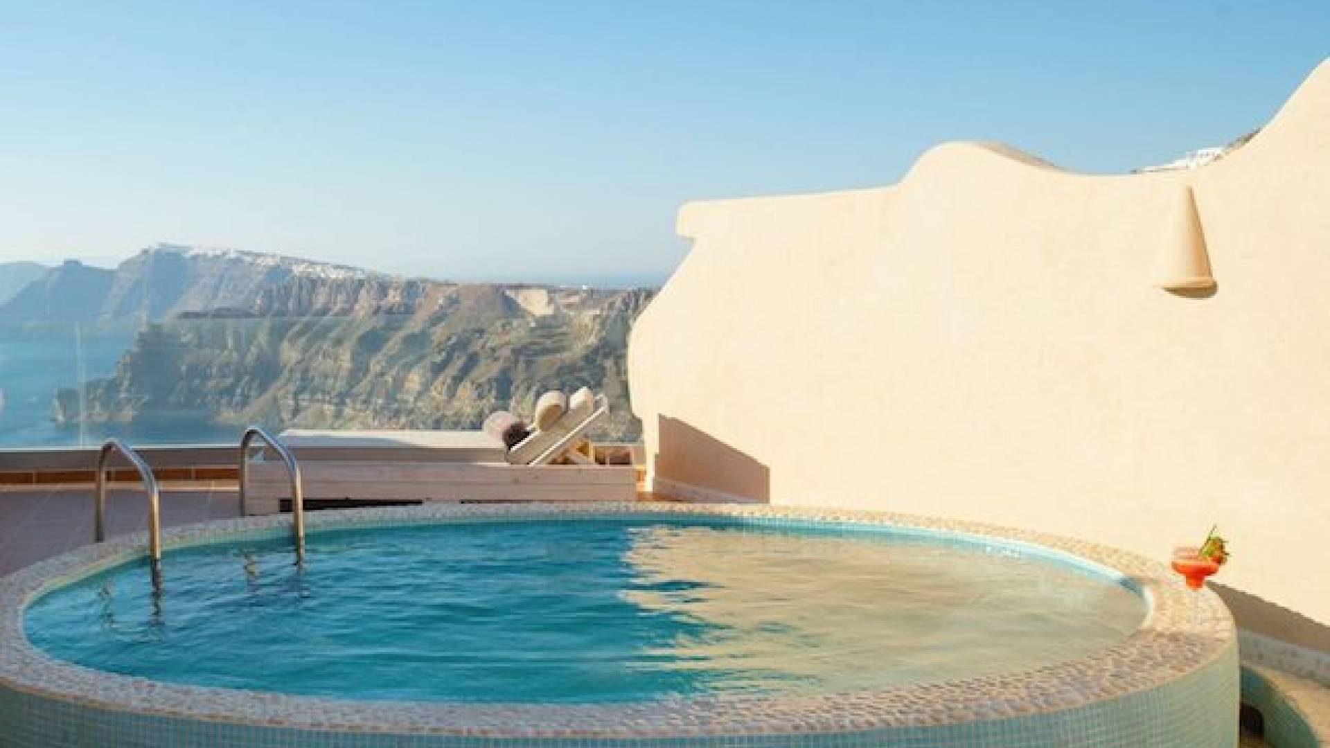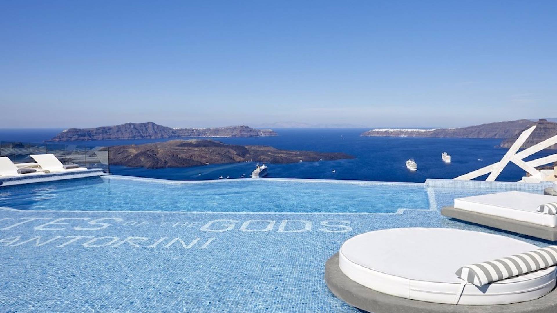 The “Celebrities Restaurant” serves exquisite dishes inspired by Mediterranean Greek cuisine. Inside the venue in an exclusive 100-year-old winery with wine-stained walls is the “Cave Spa of the Gods” and the “Gym of the Gods”, designed to be a feast for the body and mind. In other words, it is the perfect introduction to the beautiful island of Sant