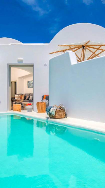 Milestone Villas offer a wide variety of extra services, selected to enhance your stay in your holiday villa here in Santorini: transfer, car and scooter rental, grocery shopping, yacht sailing, wine tasting...you name it! Meanwhile, the picturesque village square with the lovely restaurants and cafes is just a short stroll away. Enjoy the luxury of an exclusive villa, the experience of living inside a beautifully written story of tradition and style all wrapped up in the comfort of a uniquely designed home. Milestone villas embrace everything that makes the experience of life in the Aegean islands special: simplicity, freshness, geometry, and lightness with high-end finishes.