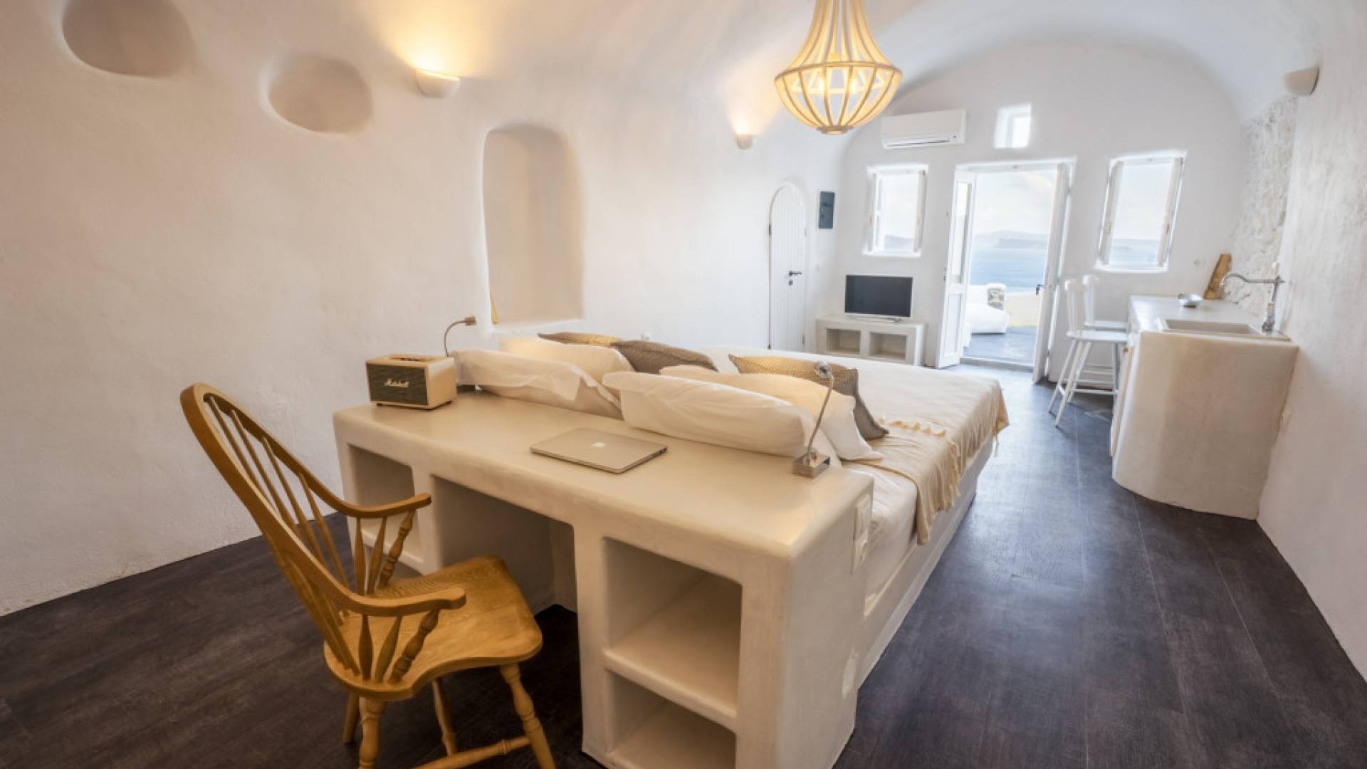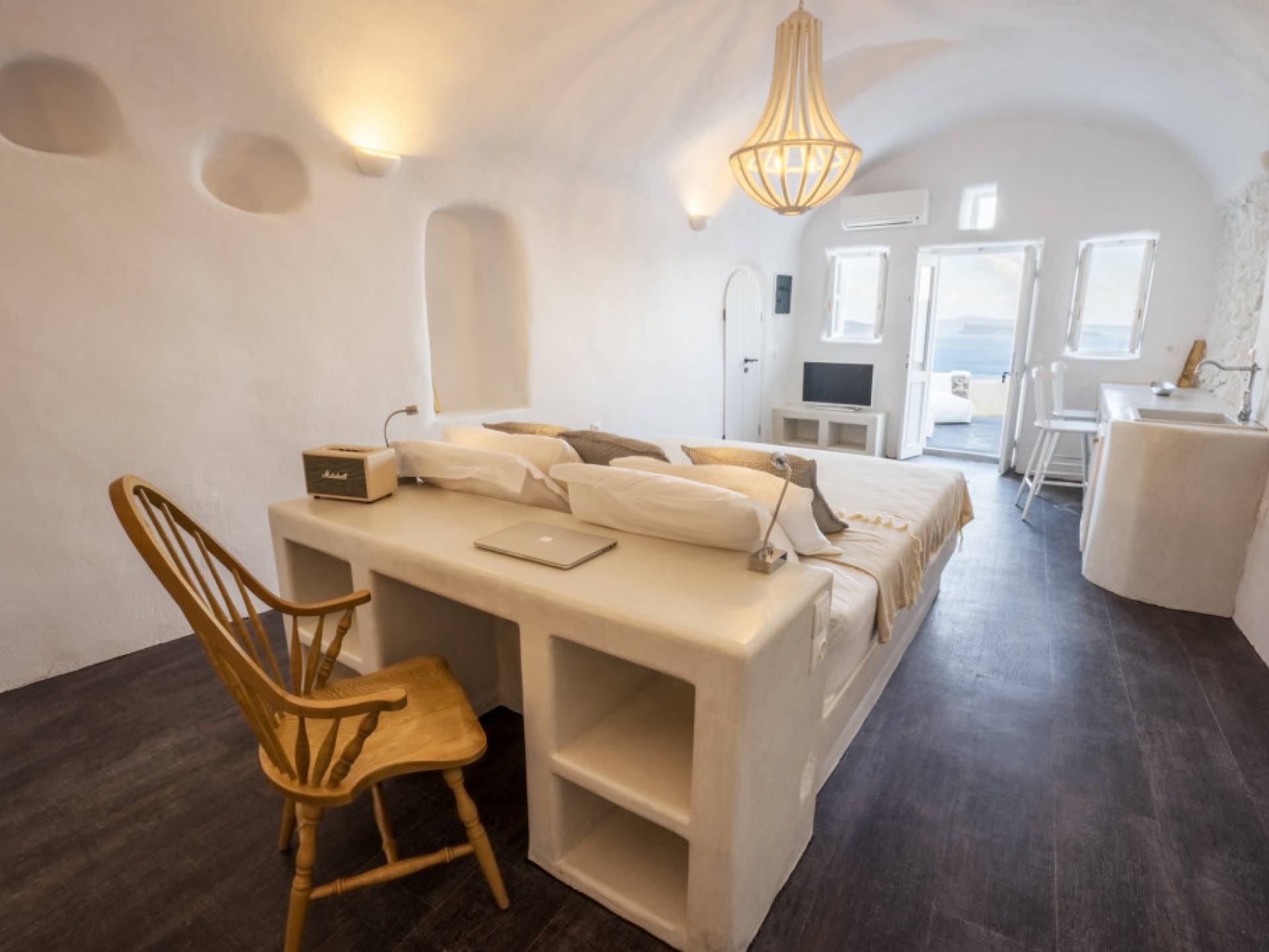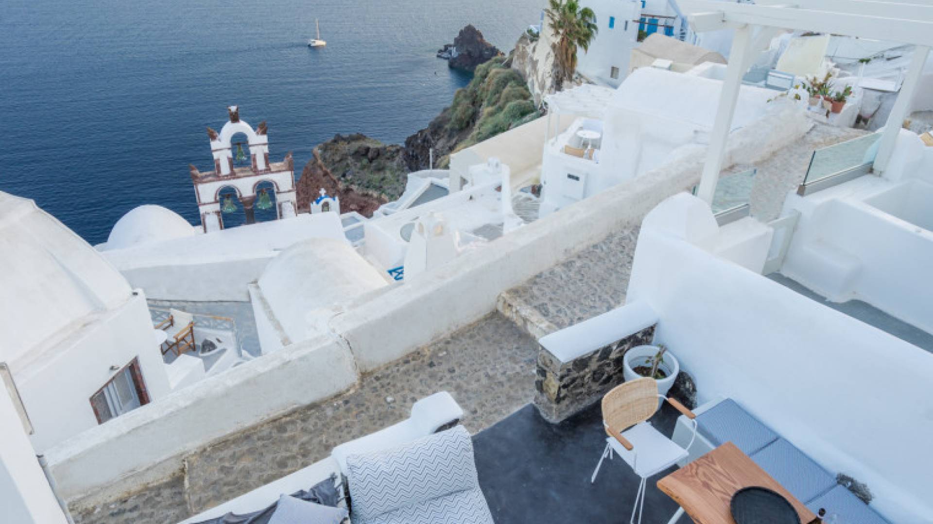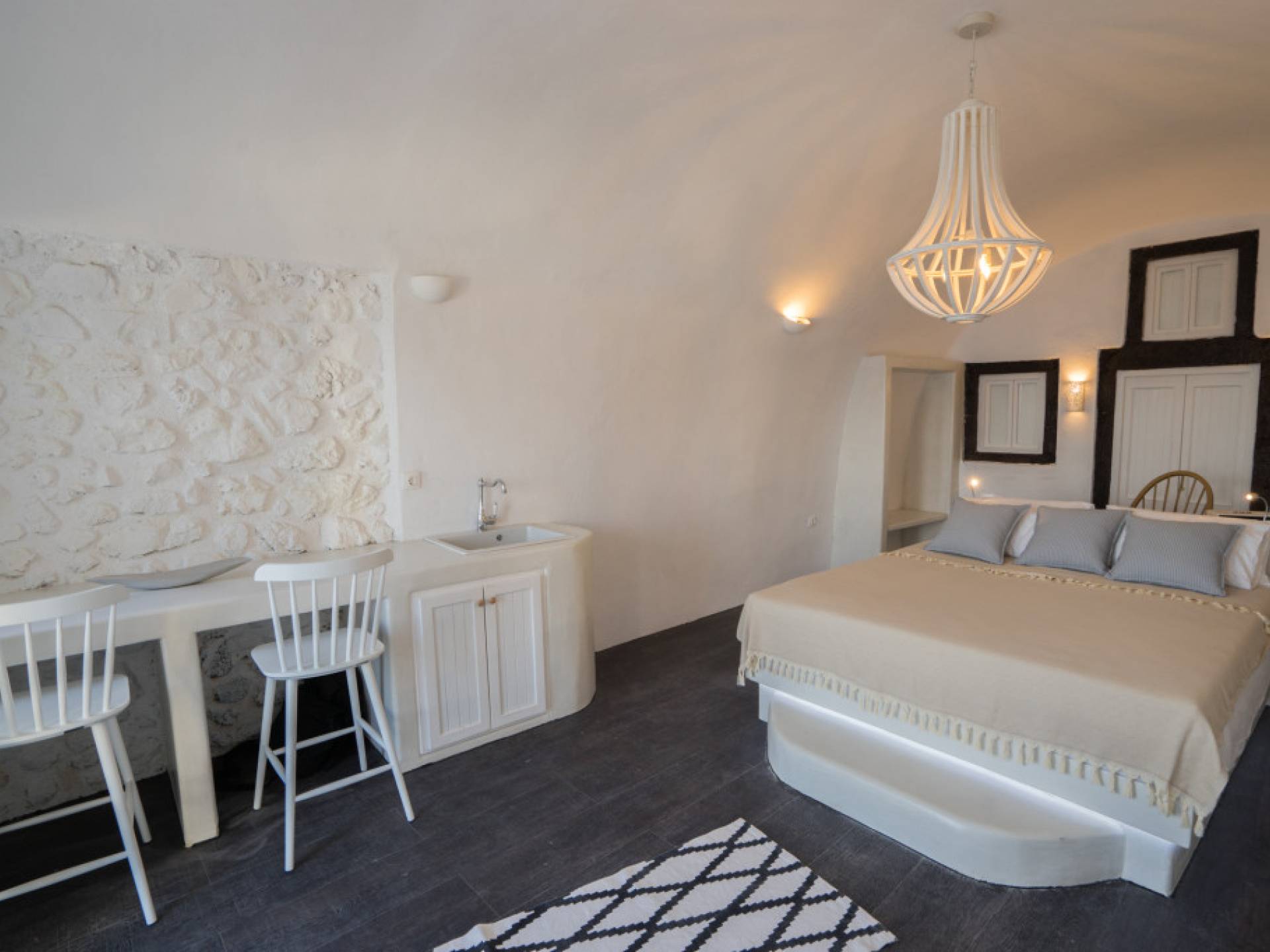 Canvas Suites in the Caldera of Oia Santorini offer minimalist luxury accommodation surrounded by the world-famous breathtaking views of the island. Canvas Suites is a complex of 7 Luxury Suites, built according to the traditional Cycladic architecture, providing comfort, functionality, discretion, while respecting the environment. Hanging on the famous caldera cliff of Oia, all Suites are perfectly orientated to the Aegean Sea, overviewing the Volcano of Santorini.