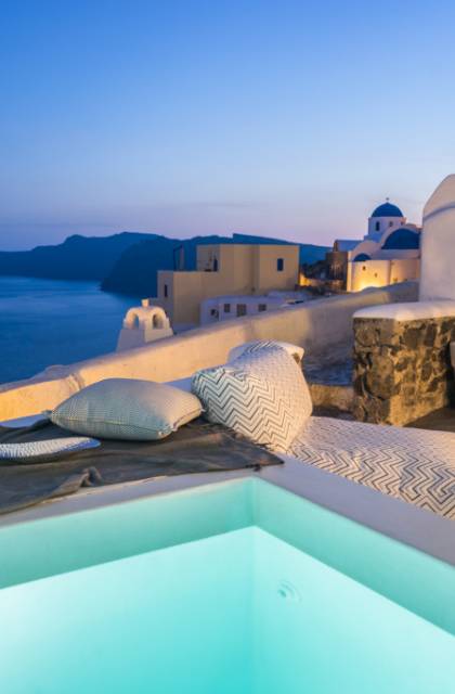 Color blue, sun and luxury, nothing can beat this combination. What else is there to ask for your vacation? Indulge yourself in a heated private pool in the coziness of your own villa, either an indoor or outdoor one. The water is healing and therapeutic…