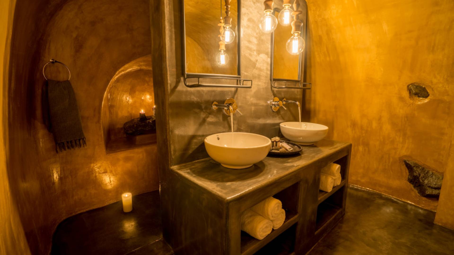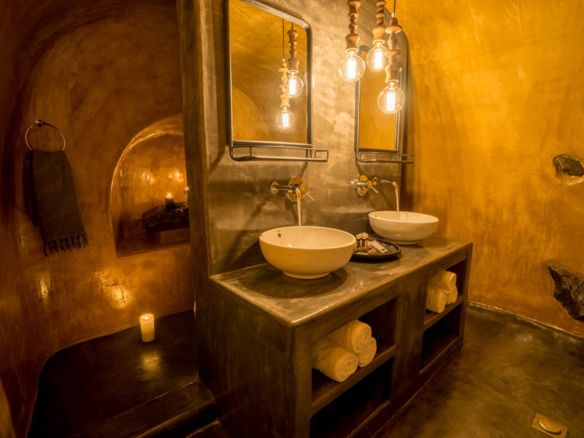 Specifically, the Artemis Canvas Suite offers 1 Bedroom with king-size bed 1.6m x 2.0m – en suite bathroom (2 sinks + 2 showers), 1 Bedroom with king-size bed 1.7m x 2.0m with en suite bathroom, Outdoor heated tub with Sea View, Kitchenette with essential utensils, Private terrace with caldera & volcano view.