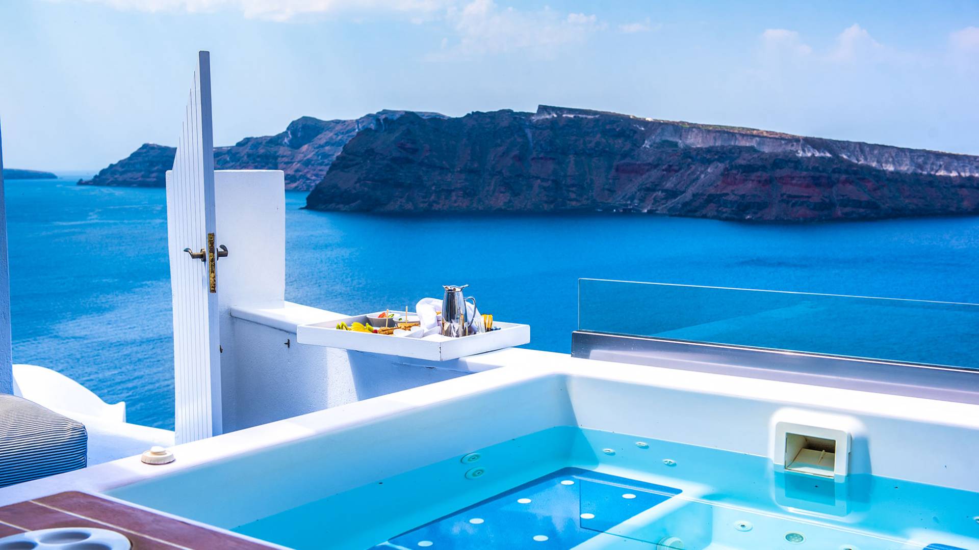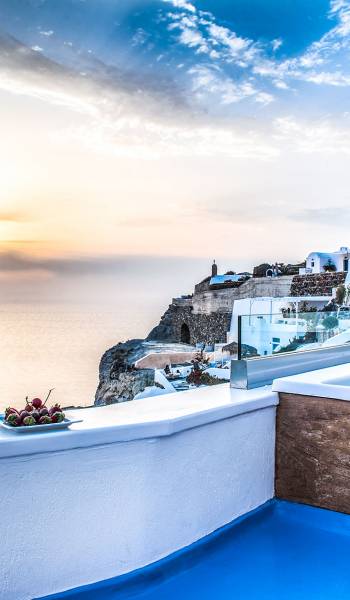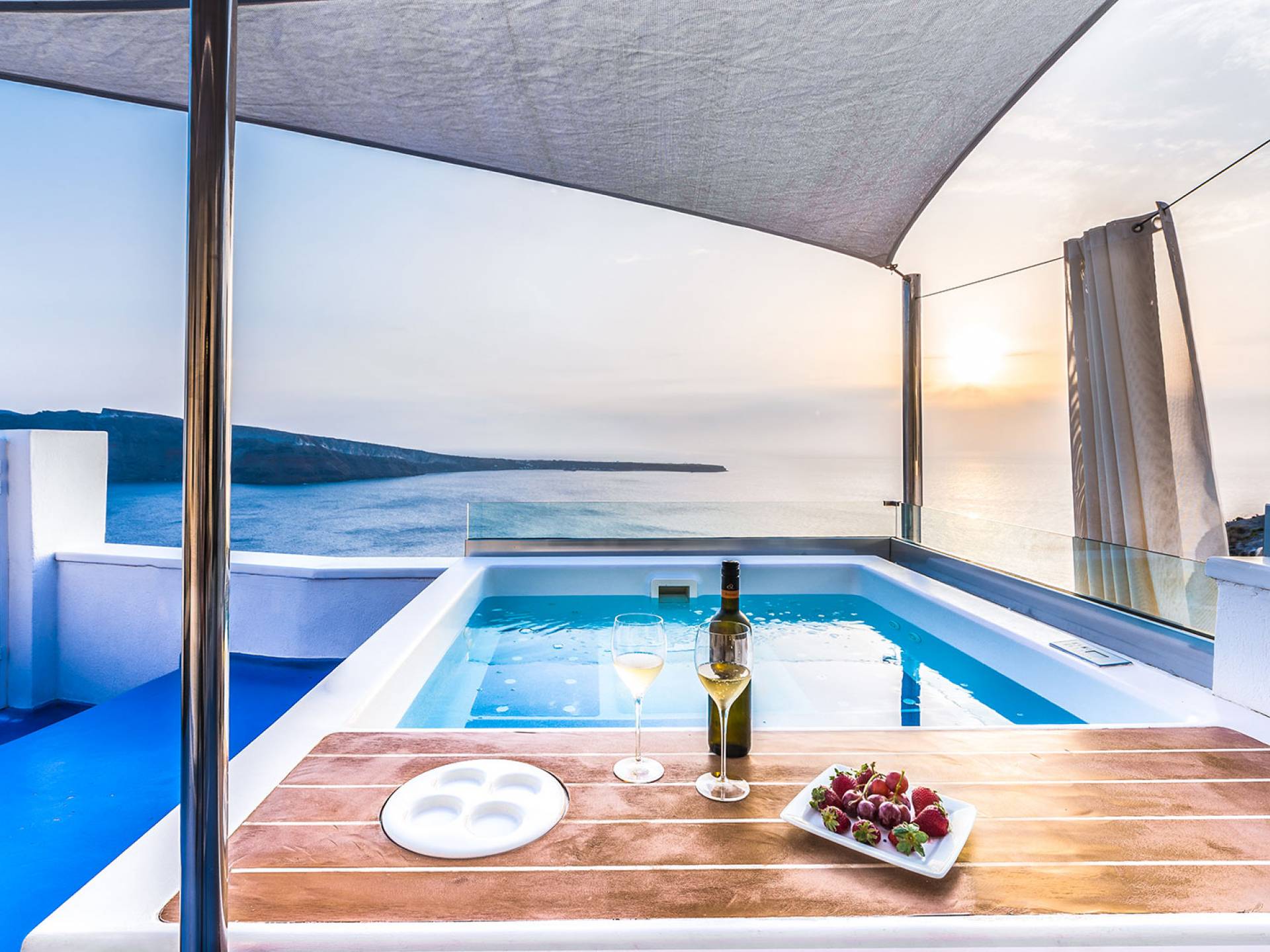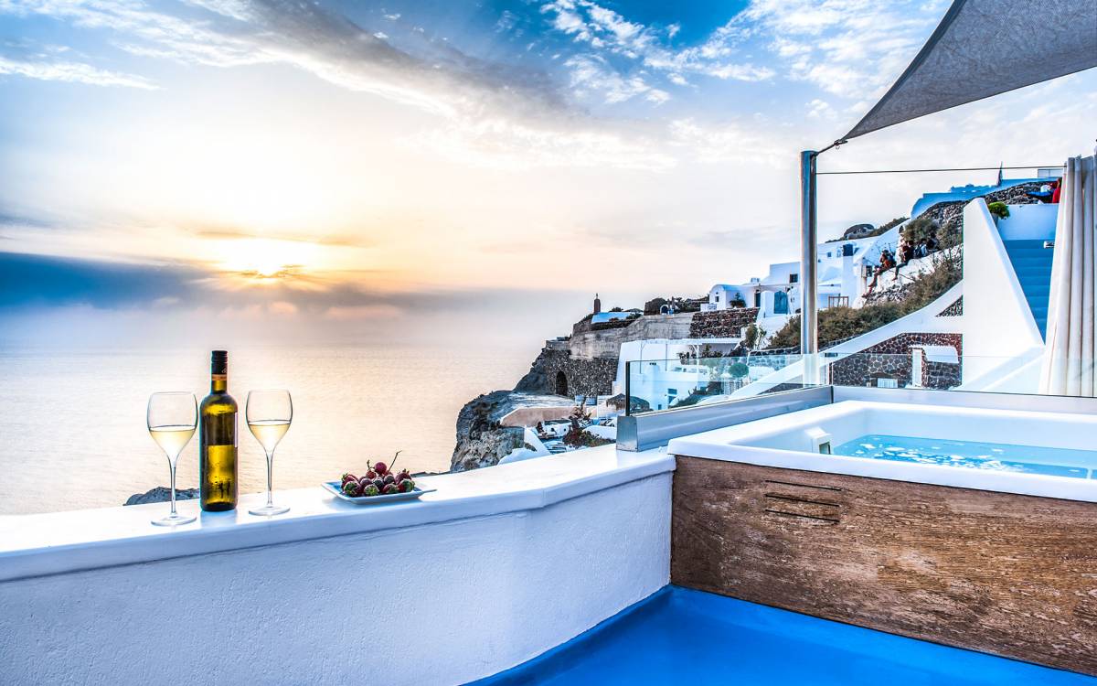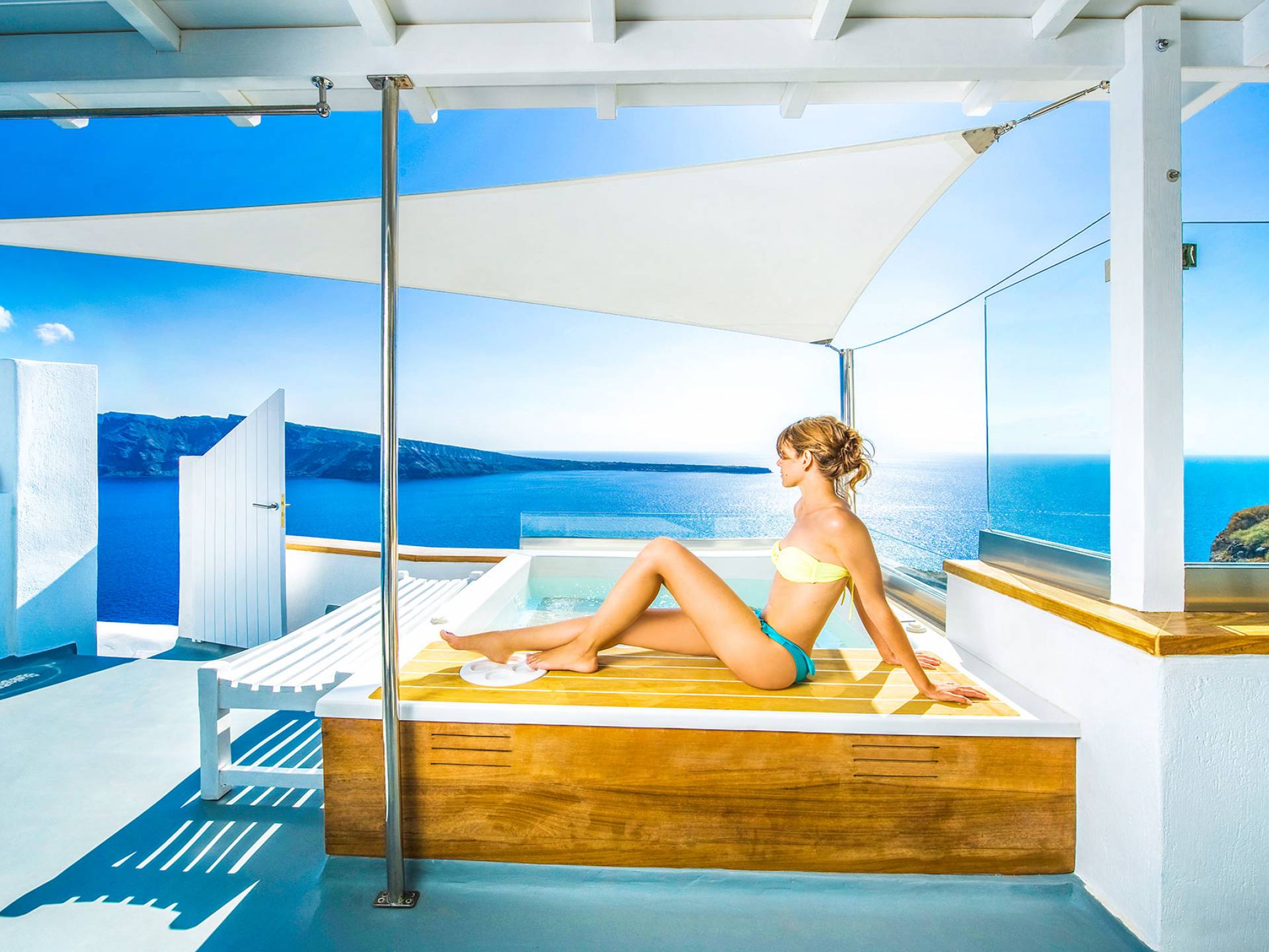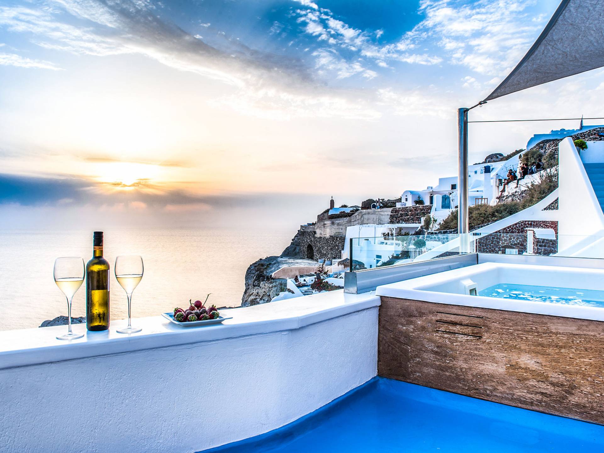 Honeymoon Villa Selini was specially designed for the most romantic time of your life in mind, your Honeymoon. Located at the original site where the movie «Summer Lovers» was filmed, guests are bound to feel like stars as they enjoy their fantasy holidays. Enjoy the breathtaking view from your large balcony and celebrate the direct sunset view while you soak in your outdoor Jacuzzi, the prime sunset viewing location.