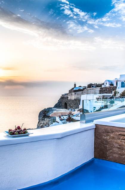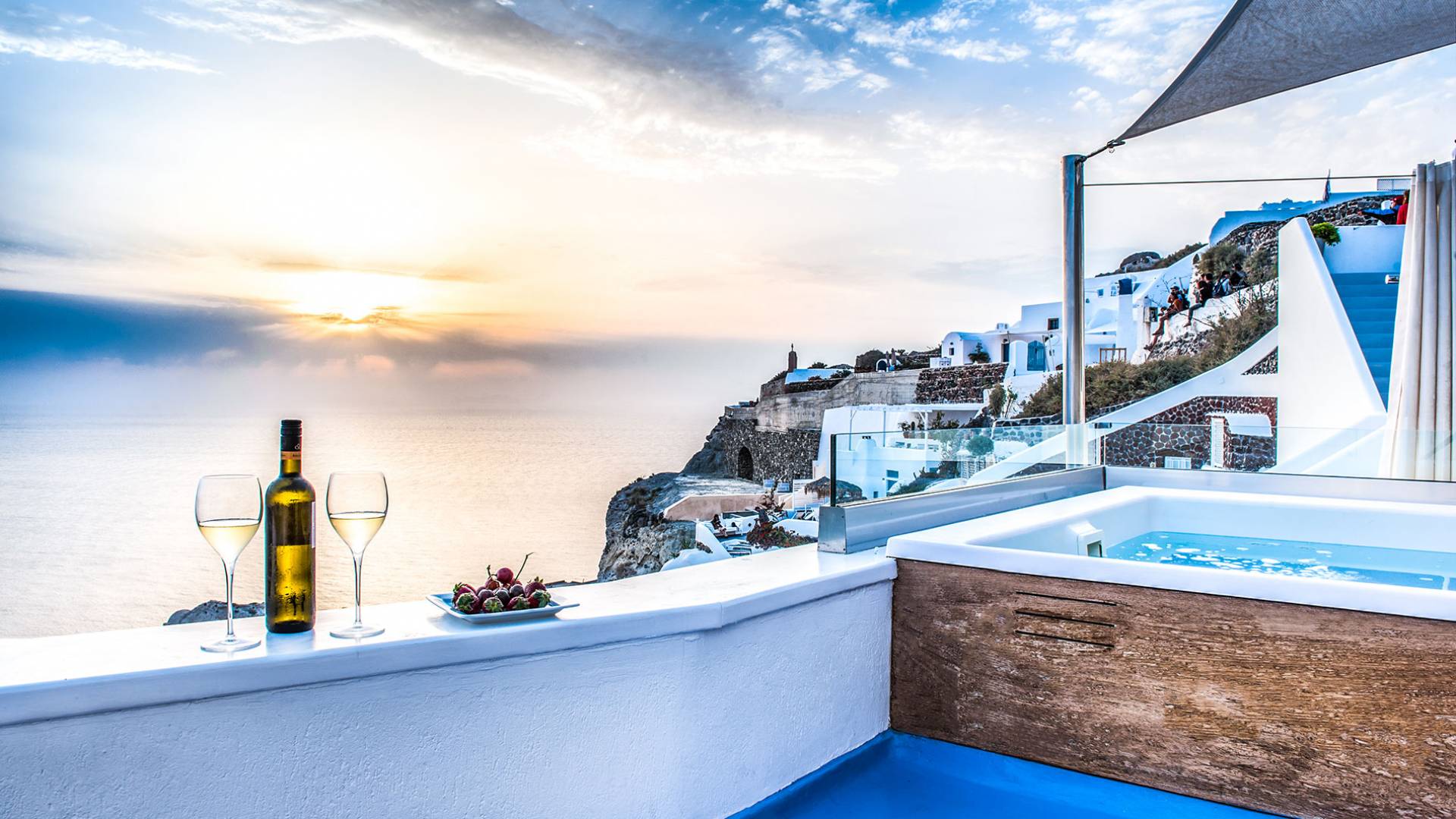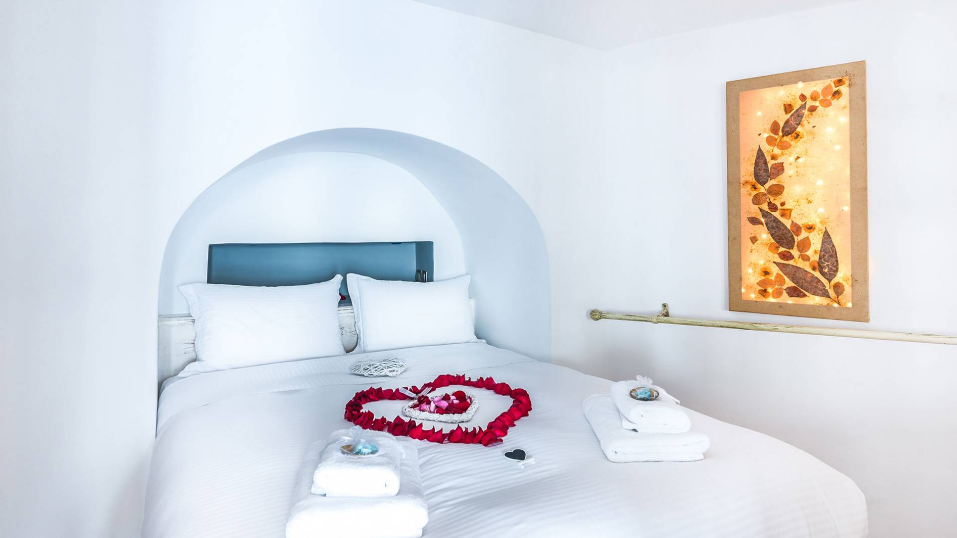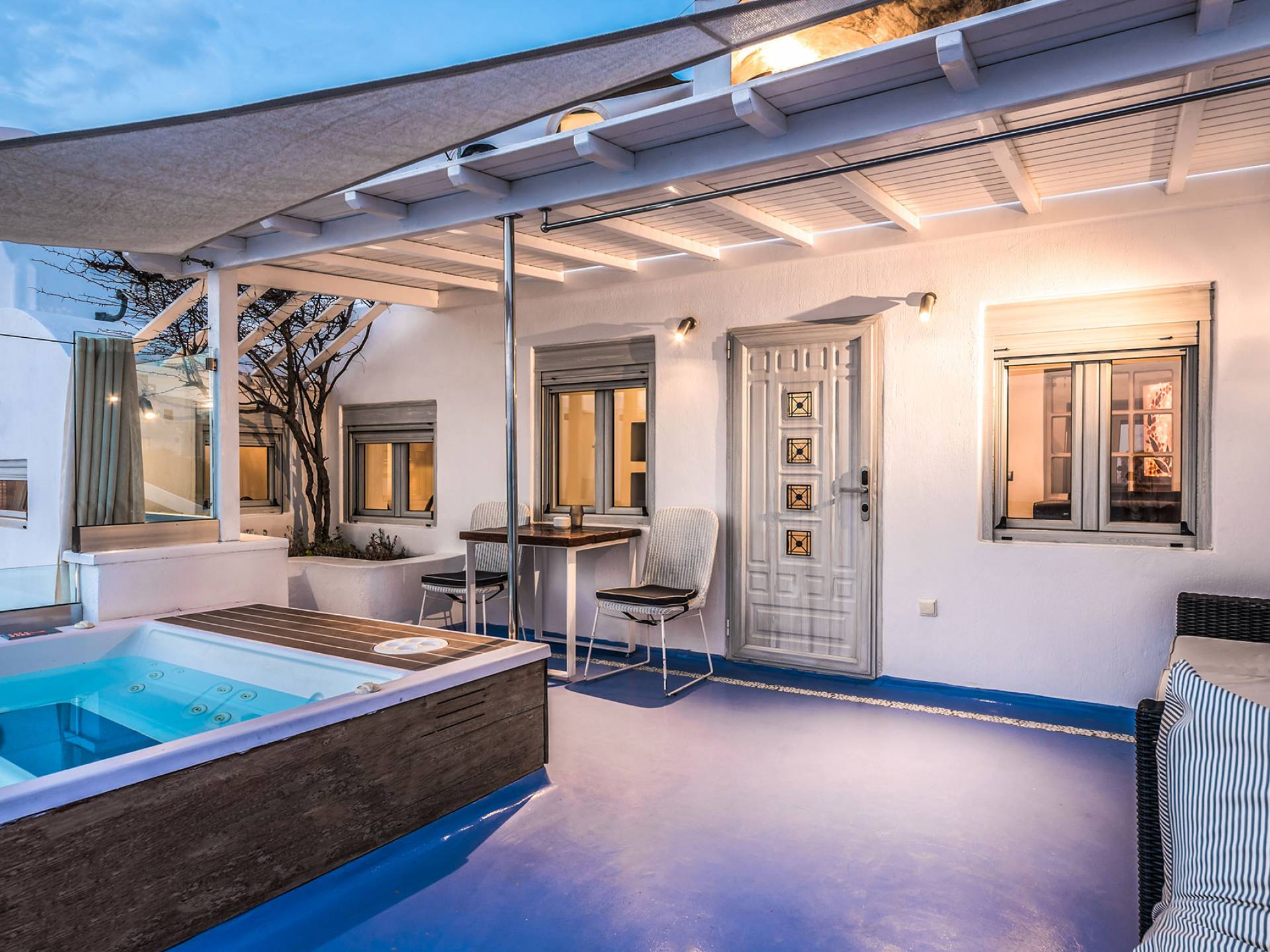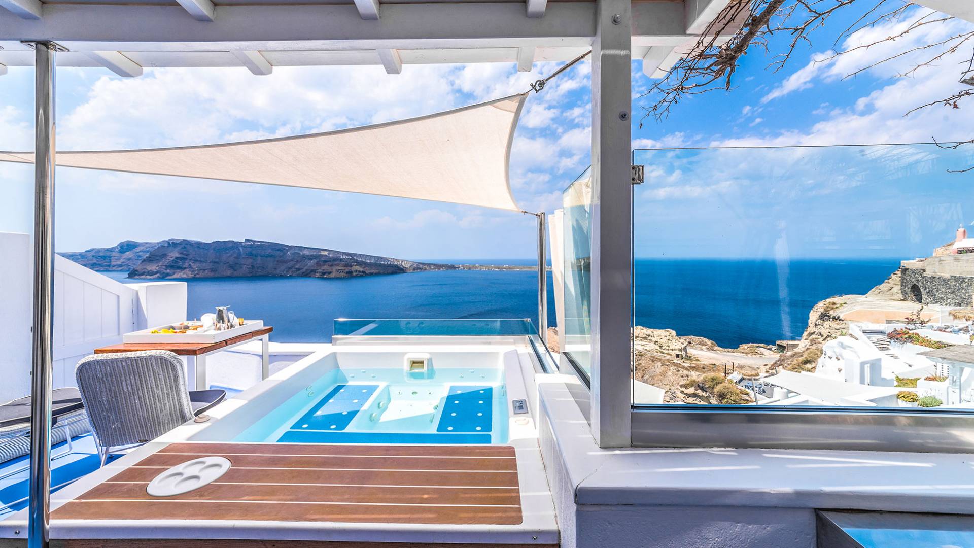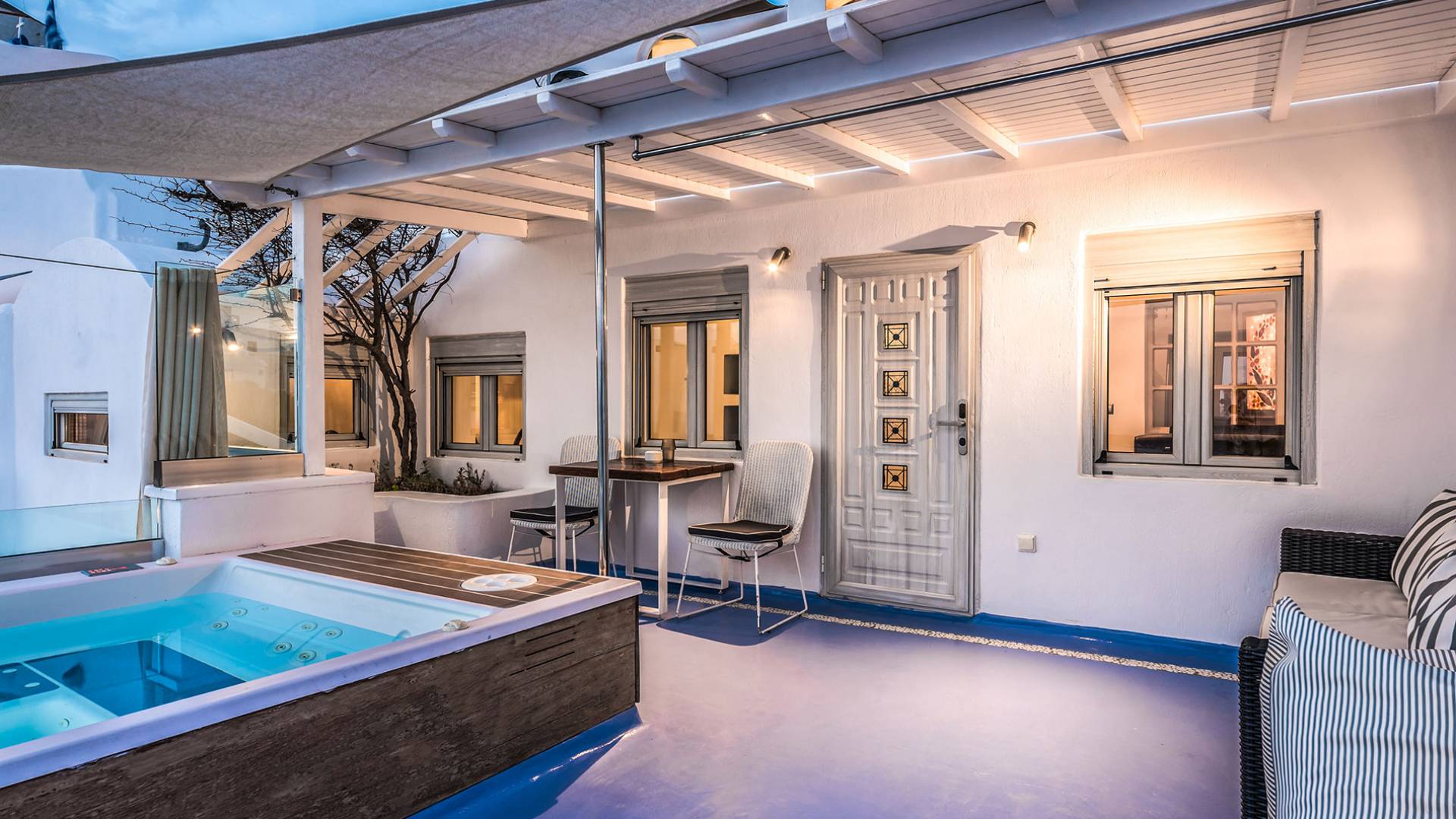 Honeymoon Villa Selini was specially designed for the most romantic time of your life in mind, your Honeymoon. Located at the original site where the movie «Summer Lovers» was filmed, guests are bound to feel like stars as they enjoy their fantasy holidays. Enjoy the breathtaking view from your large balcony and celebrate the direct sunset view while you soak in your outdoor Jacuzzi, the prime sunset viewing location.