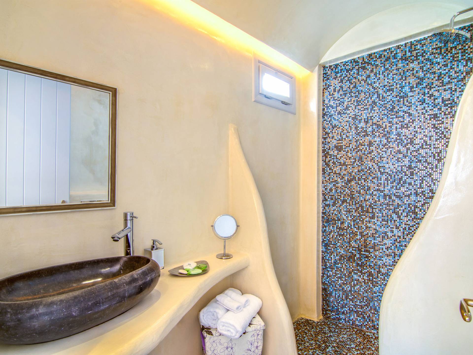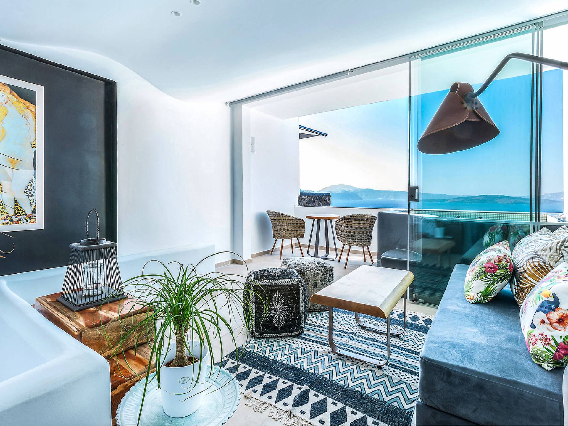 Indulge in premium living by choosing the Secret Maisonette Suite that boasts luxurious, living spaces across two levels. Treat yourself to sublime moments of Santorinian rapture within our ultimate suite that is bathed with immaculate vistas. Surrender to the tranquility of the deep Aegean blue, the dramatic Caldera cliff, and the mystifying Volcano views that are generously offered from your private balcony, but also from the internal areas. Soak in the utter splendor from the outdoor hot tub and take in the exhilarating island air of rejuvenation.