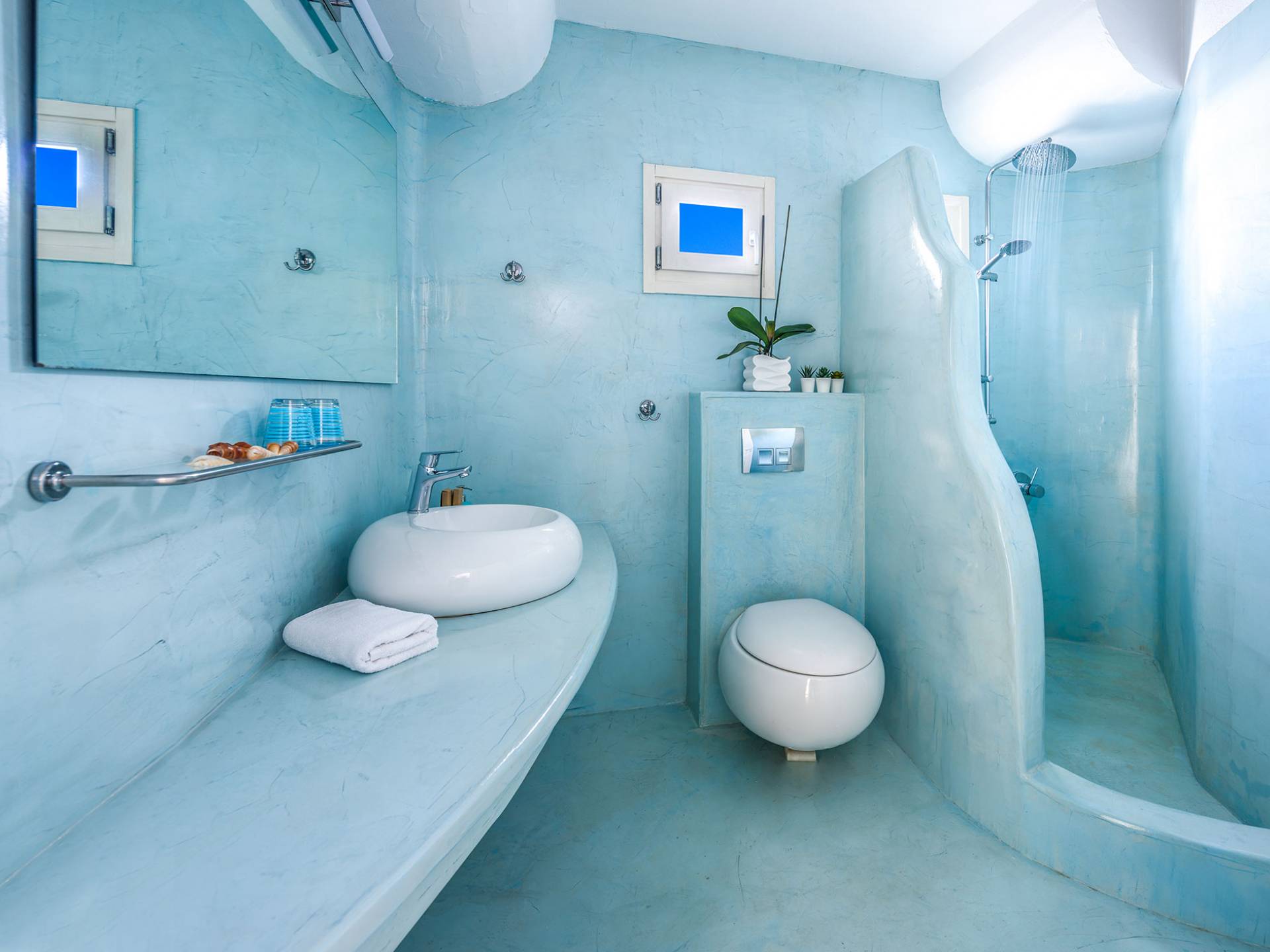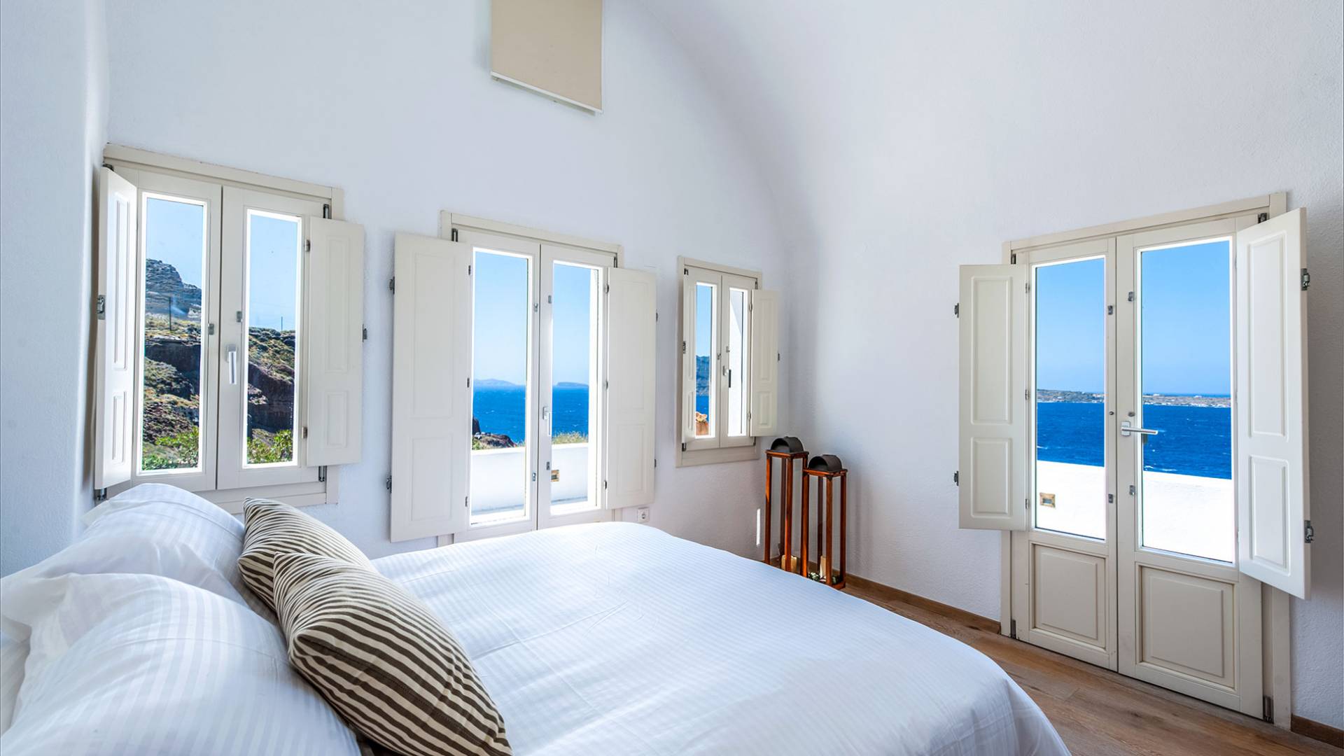 Ode Junior Suite Santorini is the upper level of Ode Villa, with a private entrance. Inspired by the traditional Cycladic architecture and constructions, with the well-known curves and arches. Furthermore, you can enjoy the beautiful sea view underneath, from every place of the interior.