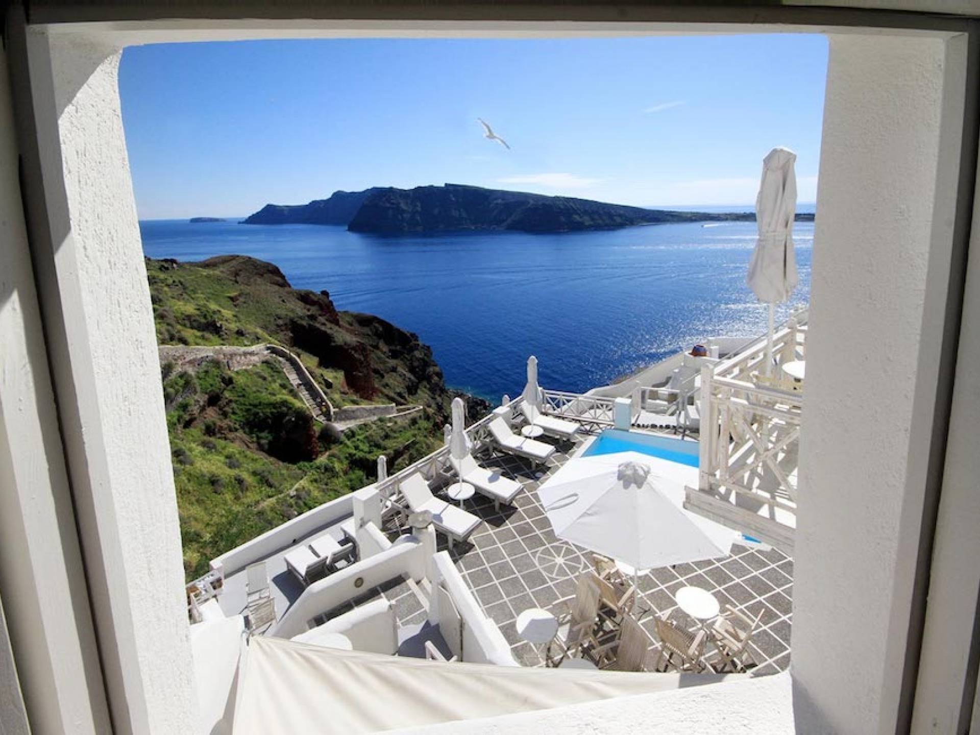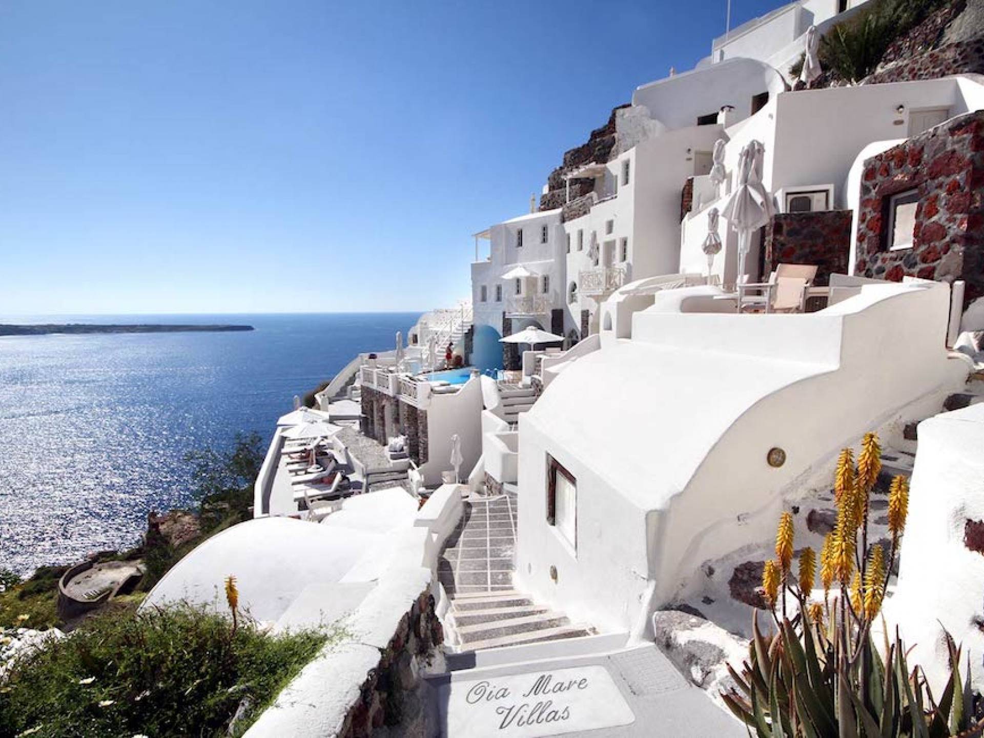 Oia Mare Villas & Suites is located in the centre of traditional Oia village in Santorini, above Ammoudi bay, the old port of Oia. Perched of the caldera cliffs, Oia Mare Villas & Suites overlook the deep blue of Aegean Sea, the amazing Caldera and Thirasia island. The location provides excellent views of the famous Oia's sunset.a.