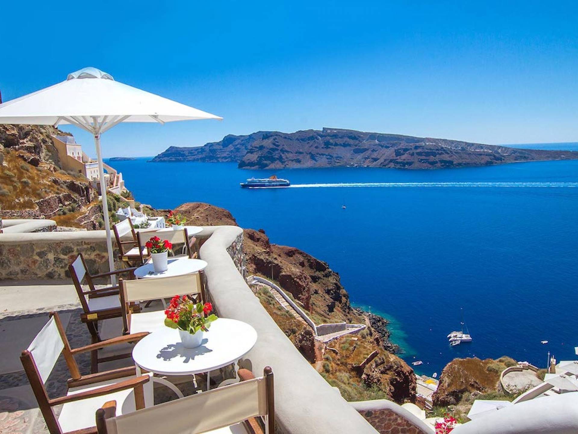 Oia is the most famous village of Santorini, 11km away from Fira, to the north part of the island. Globally renowned for its enthralling sunset, it deserves the title of the most beautiful village of Santorini. Situated on top of a cliff, it opens up to an astounding view over the volcano of Palia and Nea Kameni and the island of Thirassia. Its traditional character with whitewashed houses, cobbled streets, and blue domed churches create an amazing…Oia is the most famous village of Santorini, 11km away from Fira, to the north part of the island. Globally renowned for its enthralling sunset, it deserves the title of the most beautiful village of Santorini. Situated on top of a cliff, it opens up to an astounding view over the volcano of Palia and Nea Kameni and the island of Thirassia. Its traditional character with whitewashed houses, cobbled streets, and blue domed churches create an amazing…