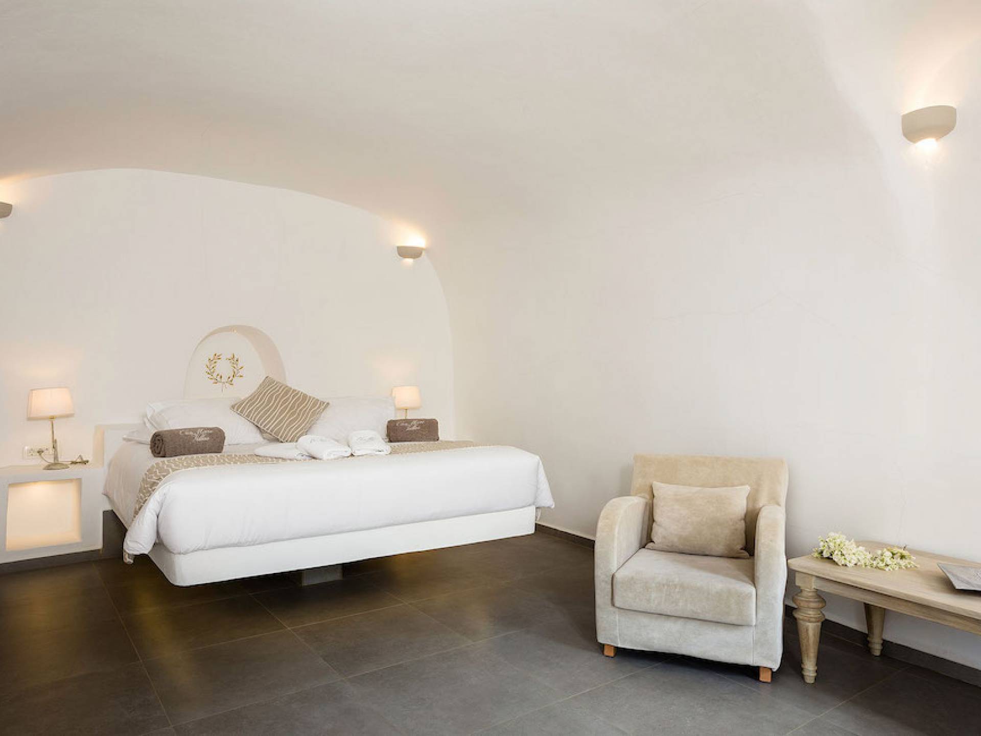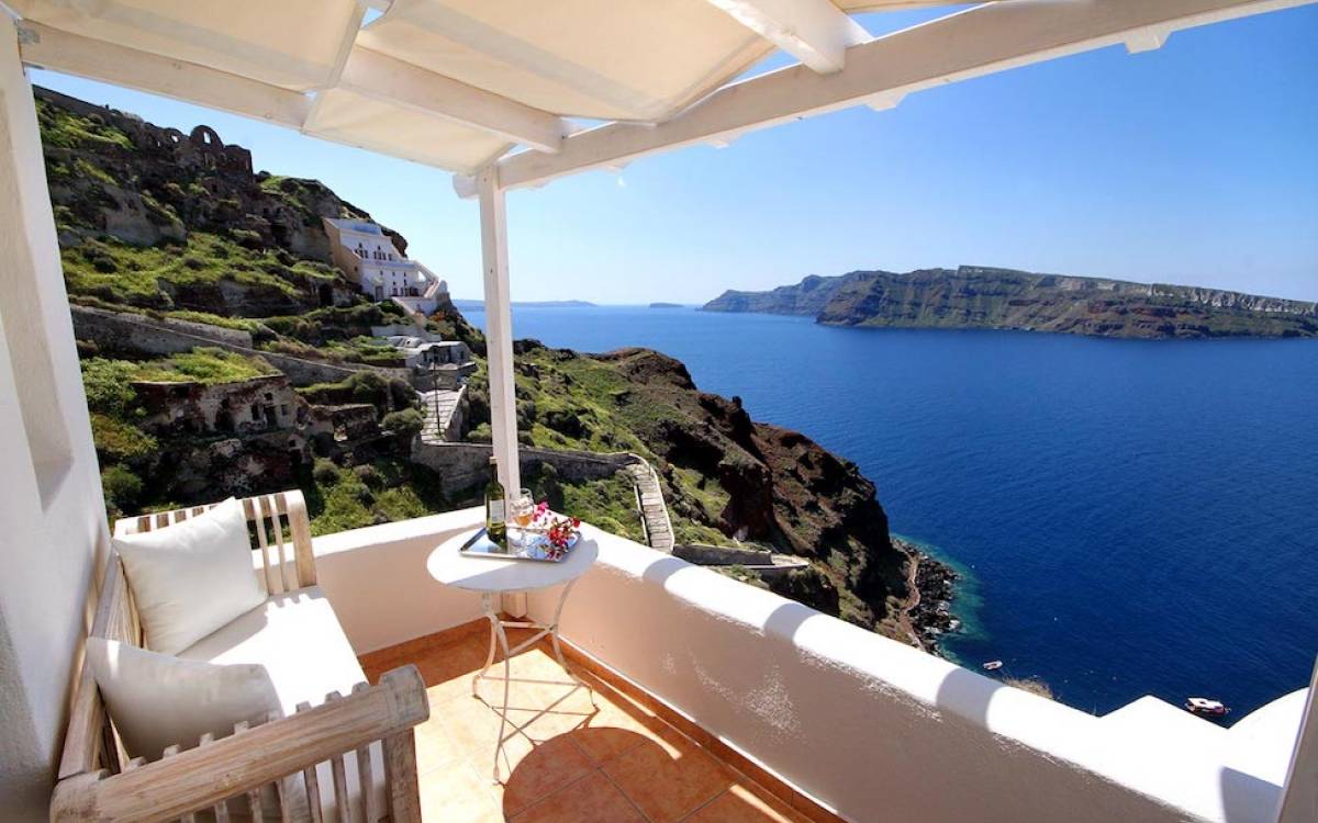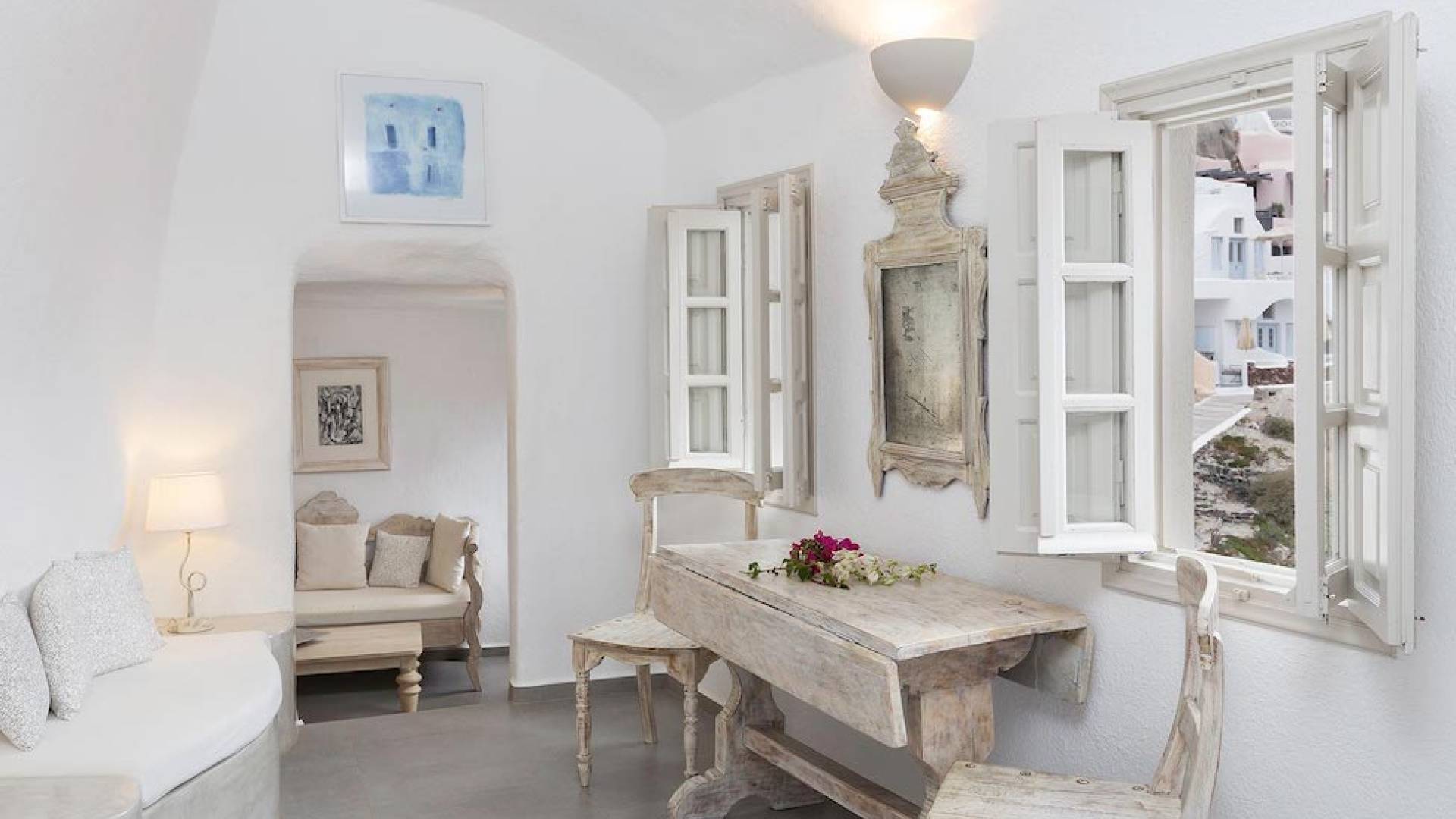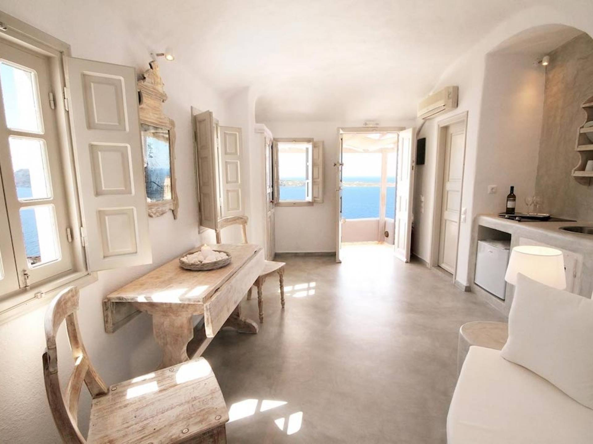 Oia Mare Villas offers Cave Suites with spectacular views of the Caldera and the Aegean sea. Each unit remains true to the style of the island featuring simple yet elegant.