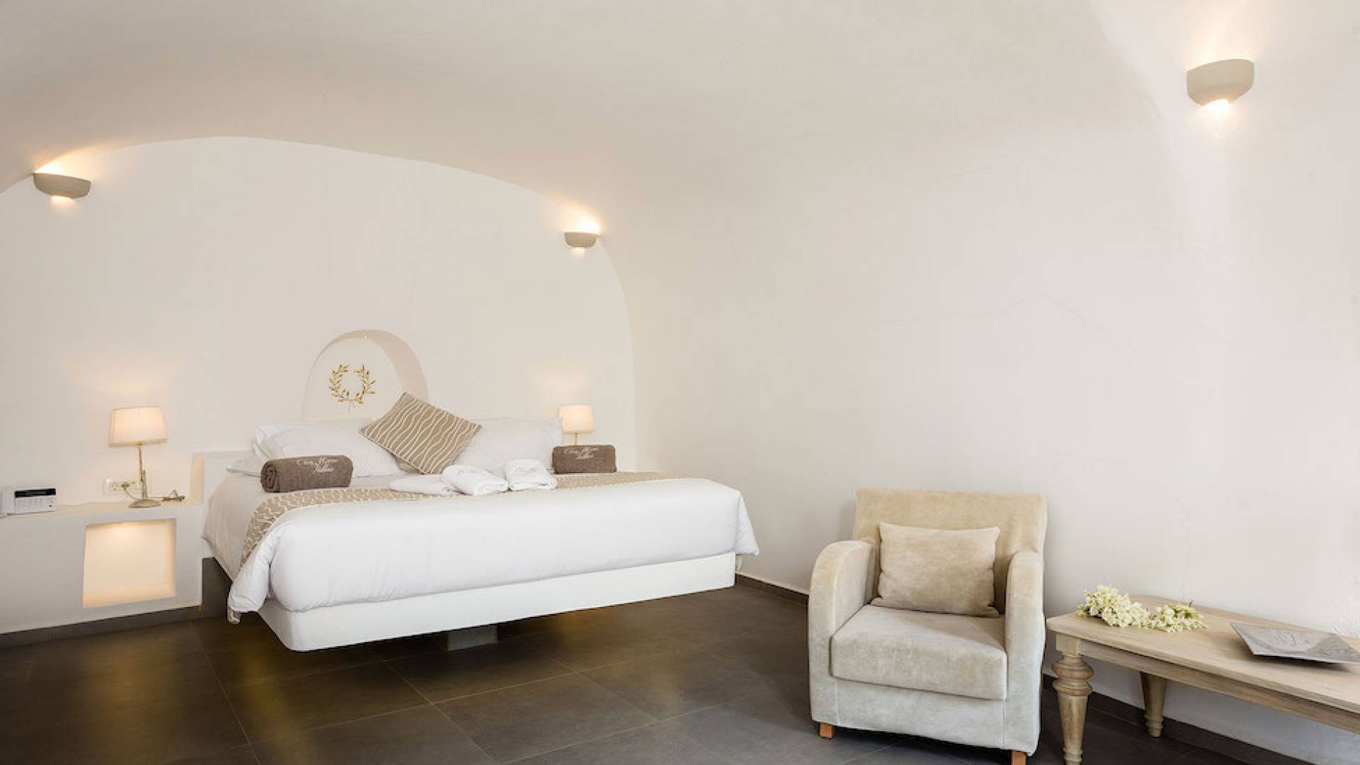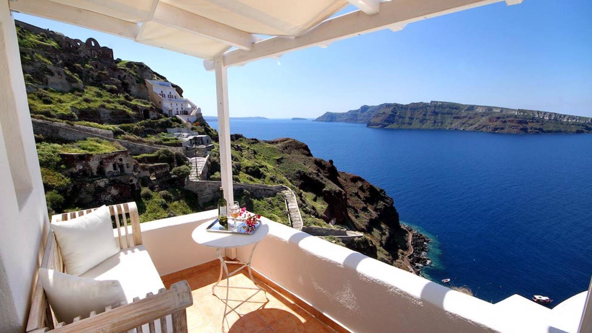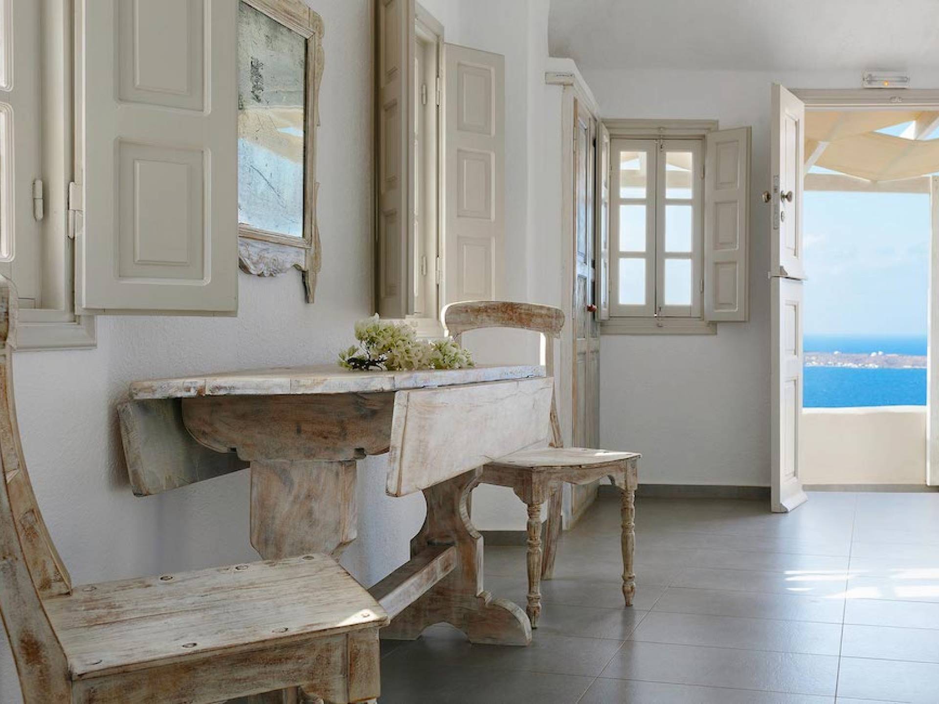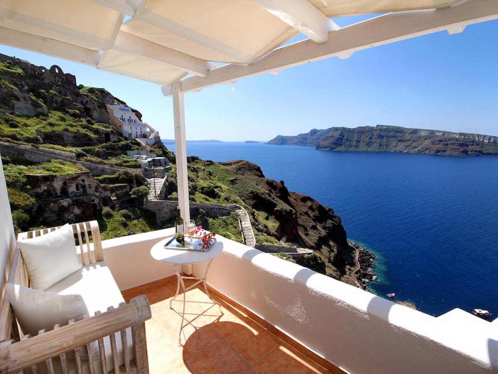 Oia Mare Villas offers Cave Suites with spectacular views of the Caldera and the Aegean sea. Each unit remains true to the style of the island featuring simple yet elegant.