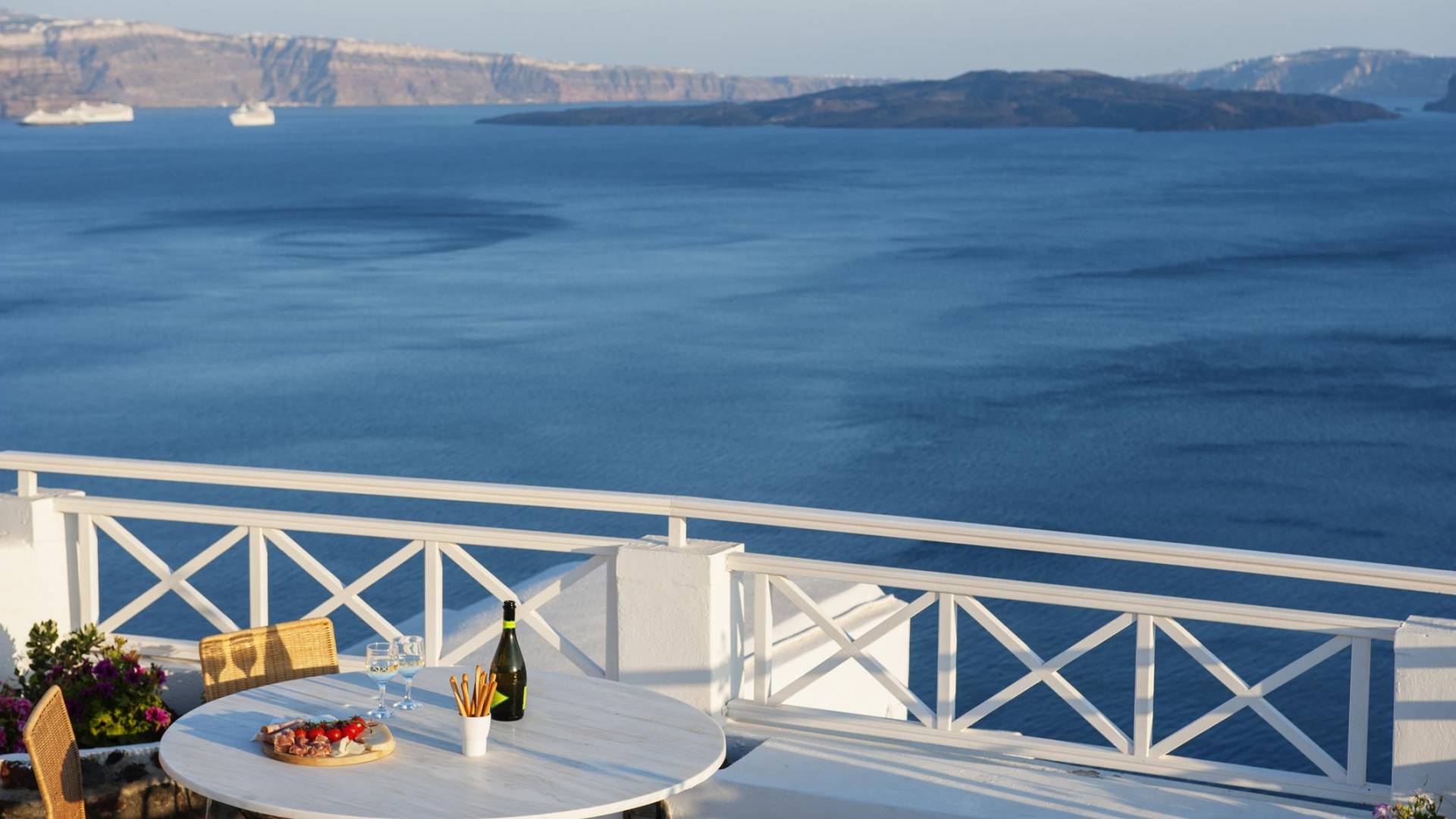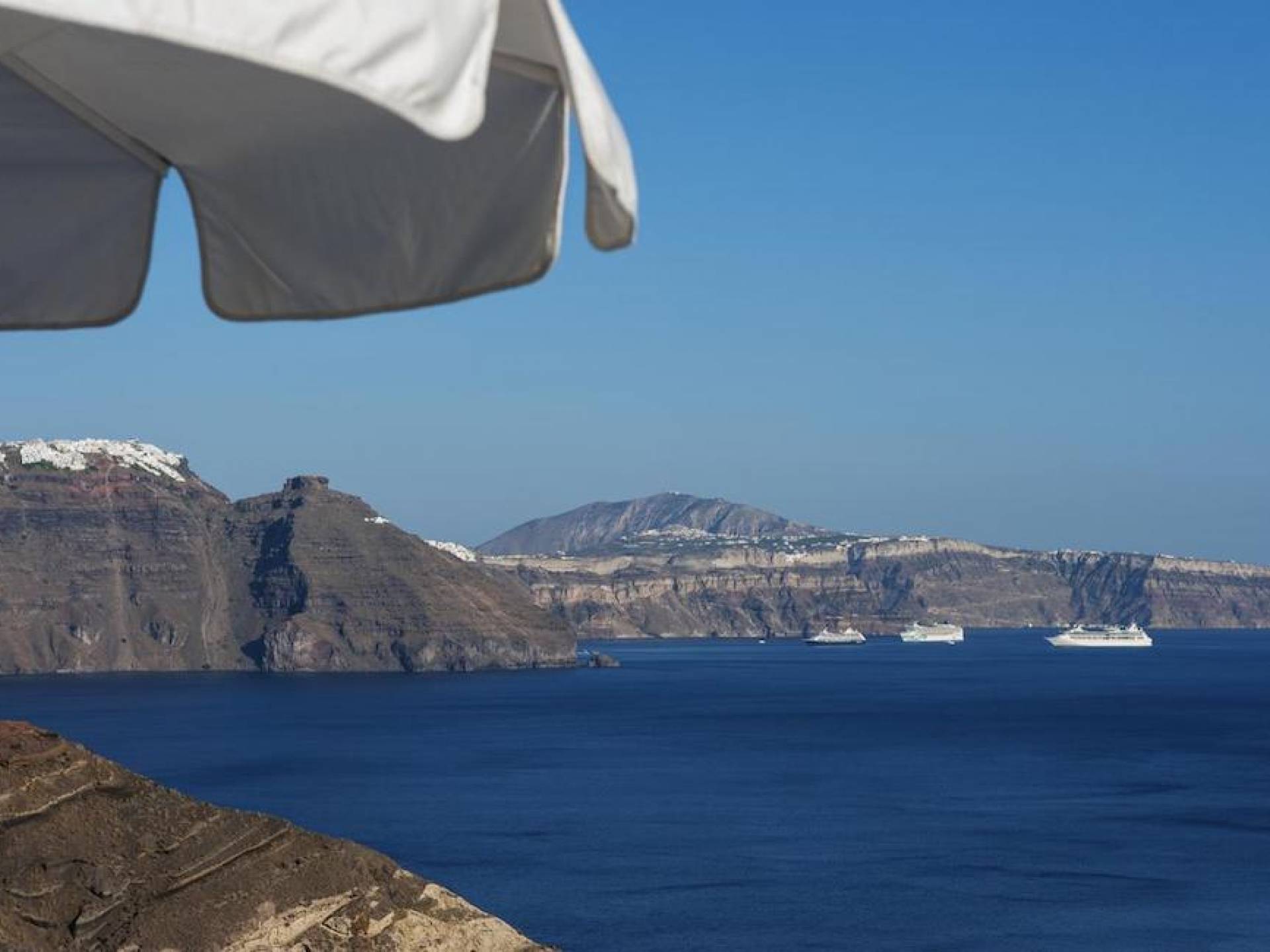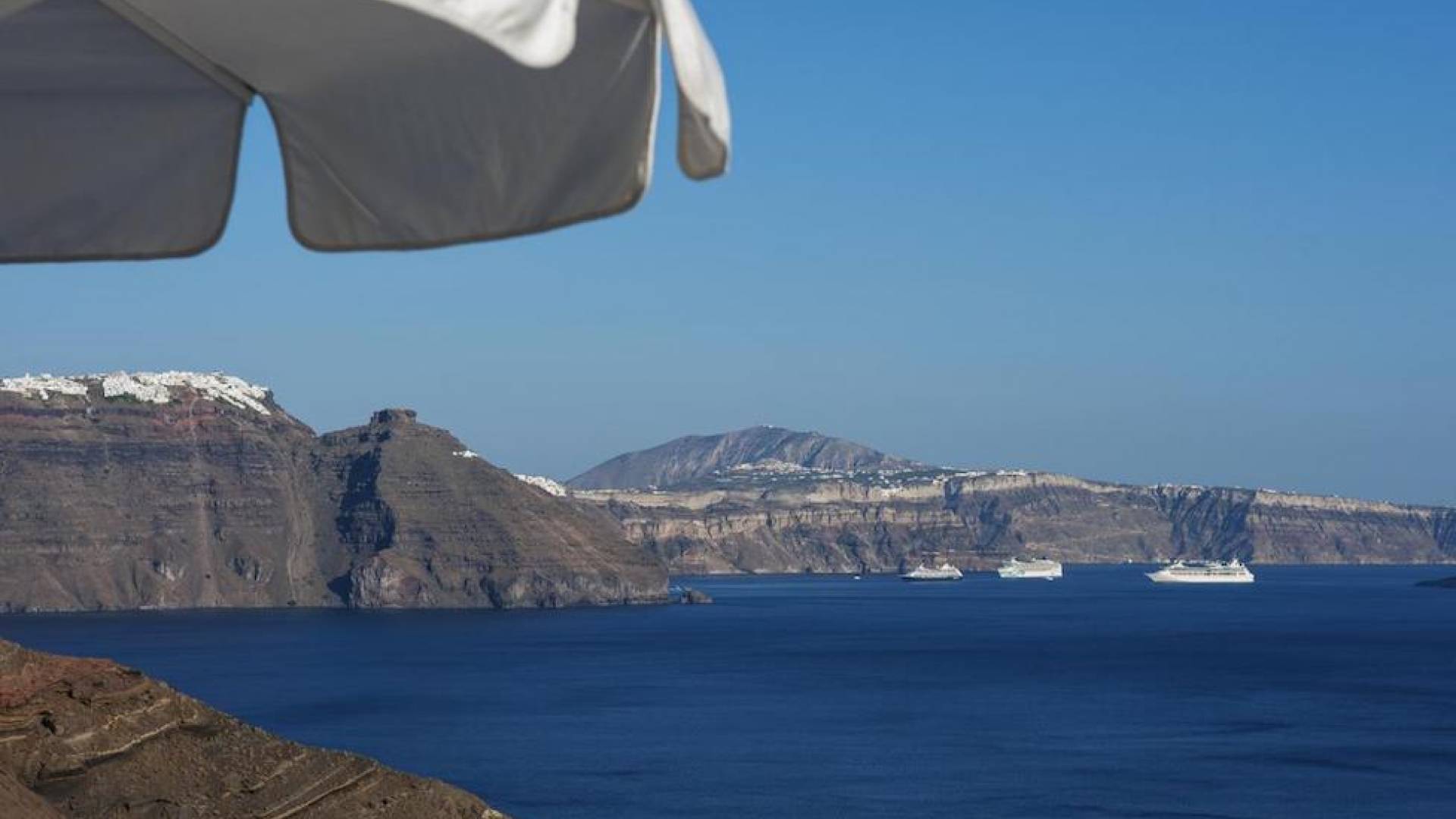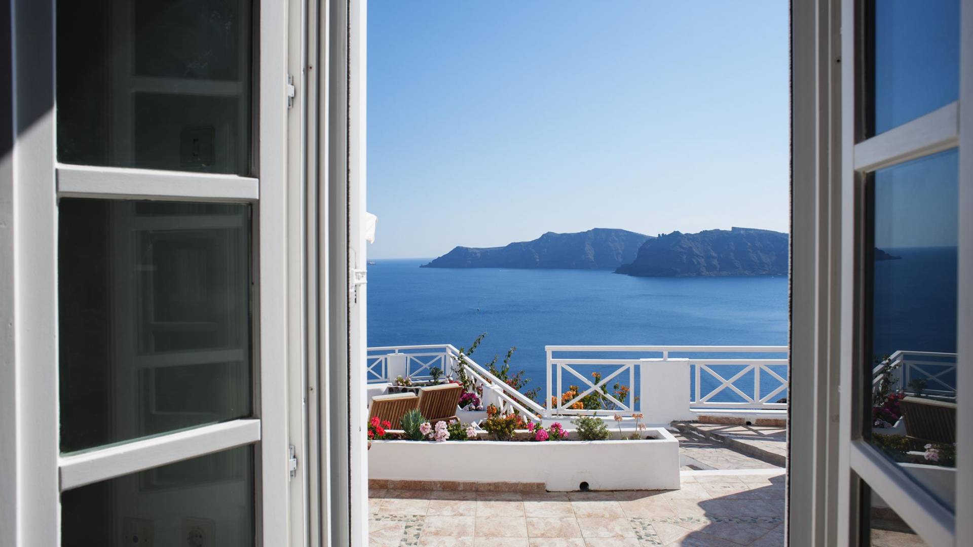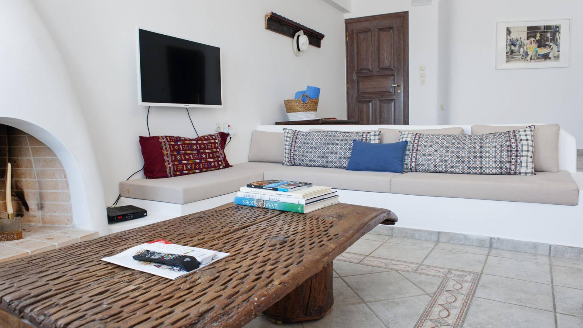 There are no steps to reach the villa from the main walkway enabling disabled access a rarity for the Caldera-facing villas. It has a heated hot tub and a large outdoor area with ample seating for guests to enjoy the lovely views.