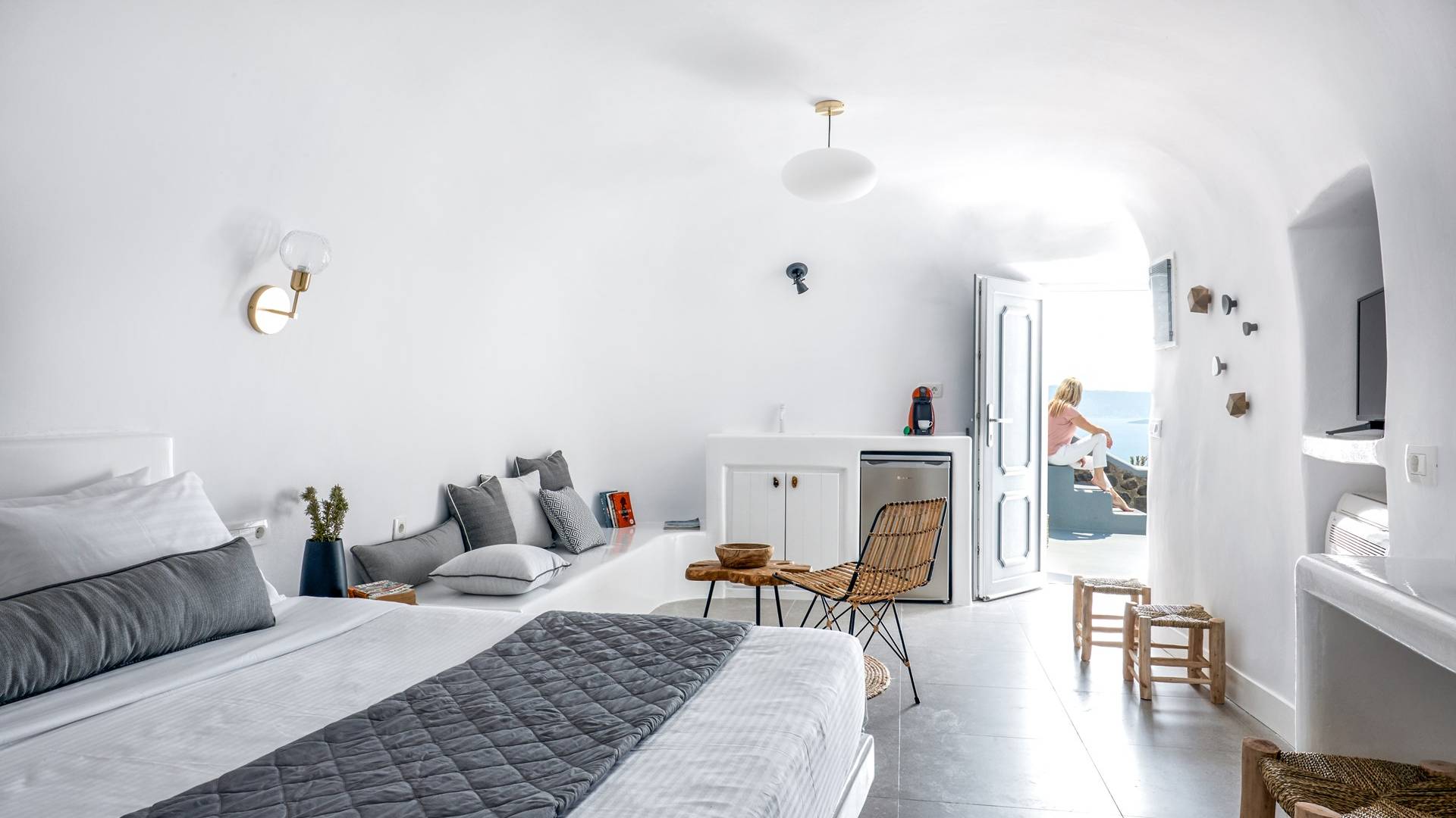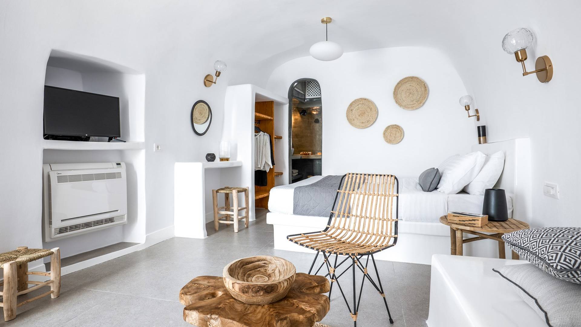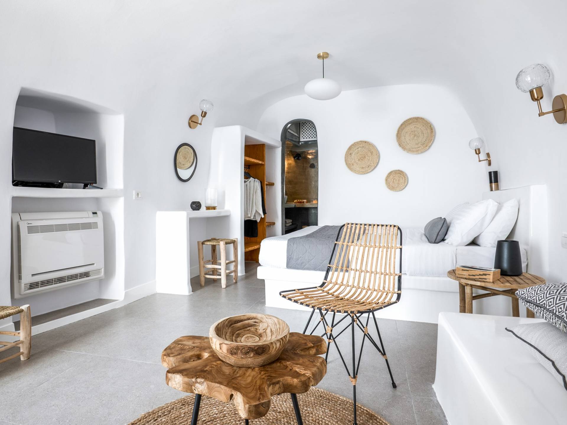 The Standard traditional cave suite with communal terrace, outdoor hot tub, and great views of the volcano and the caldera.
