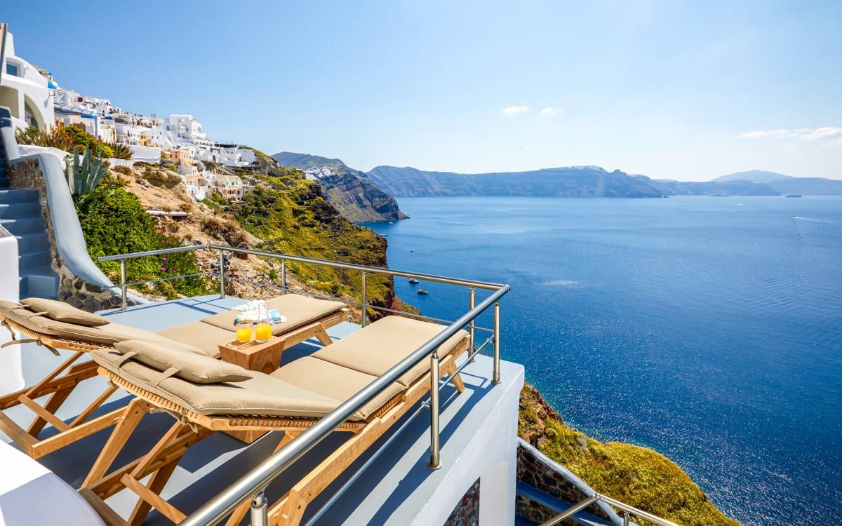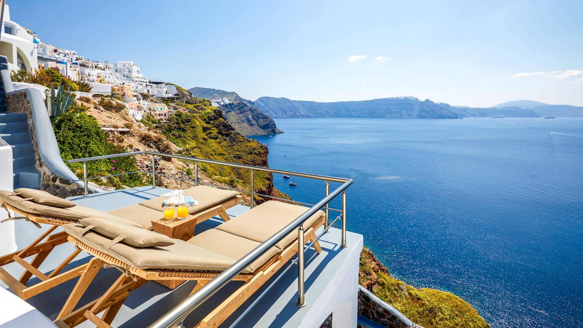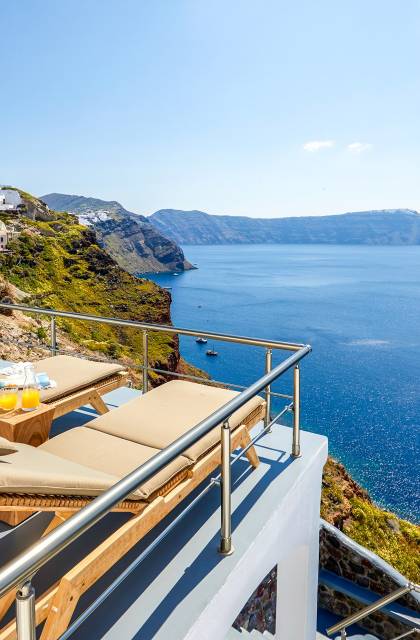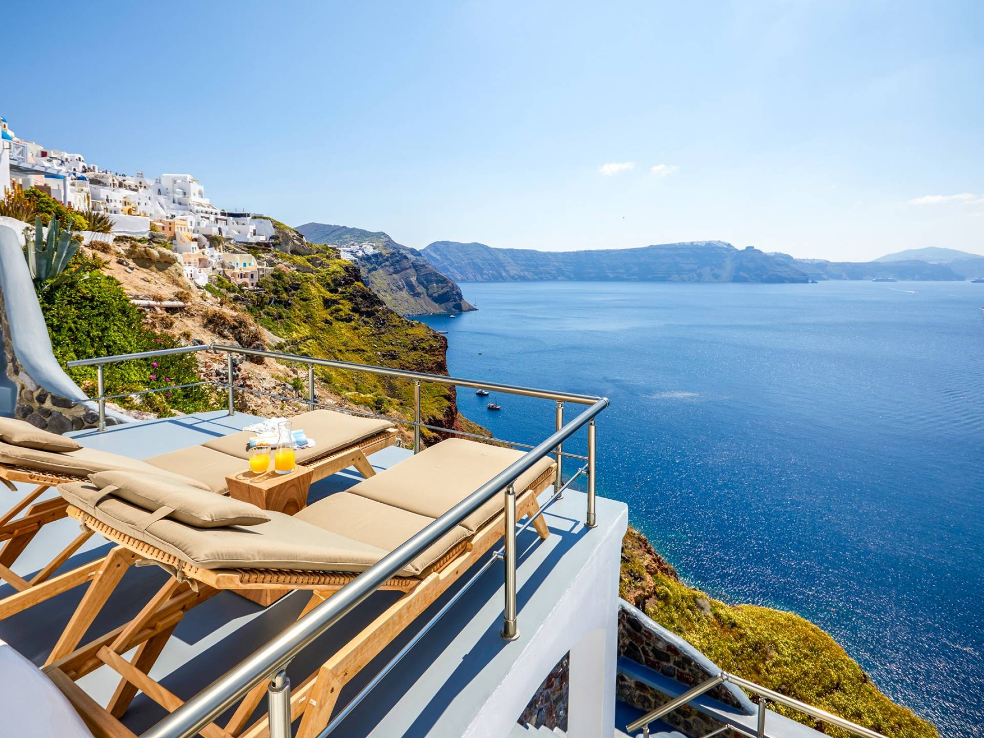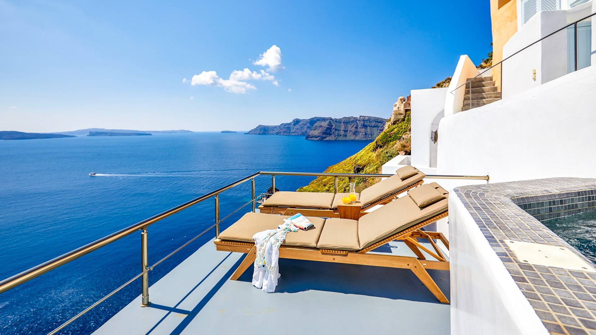 The Standard traditional cave suite with communal terrace, outdoor hot tub, and great views of the volcano and the caldera.