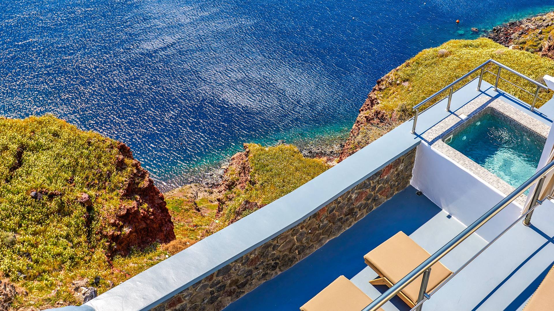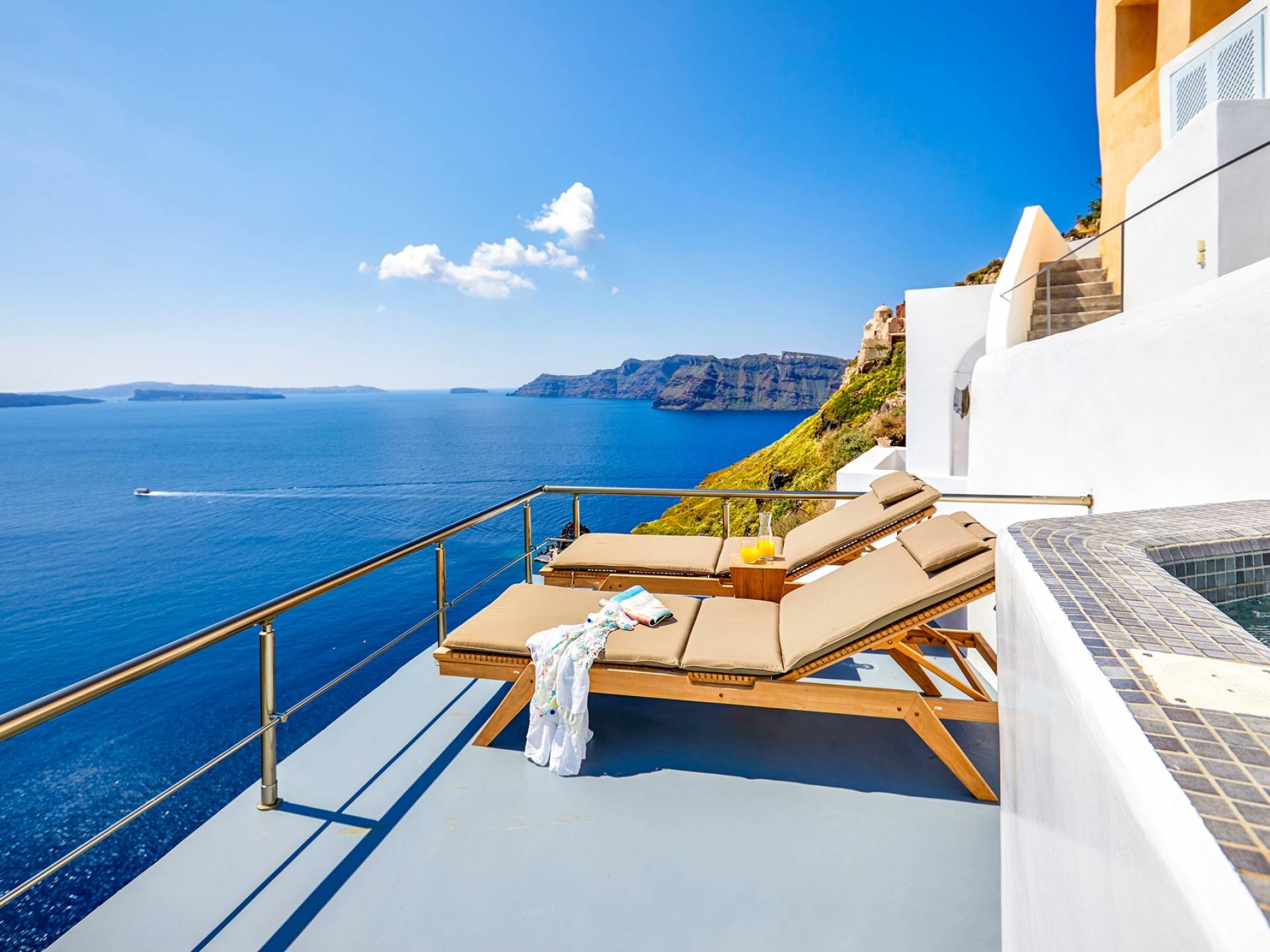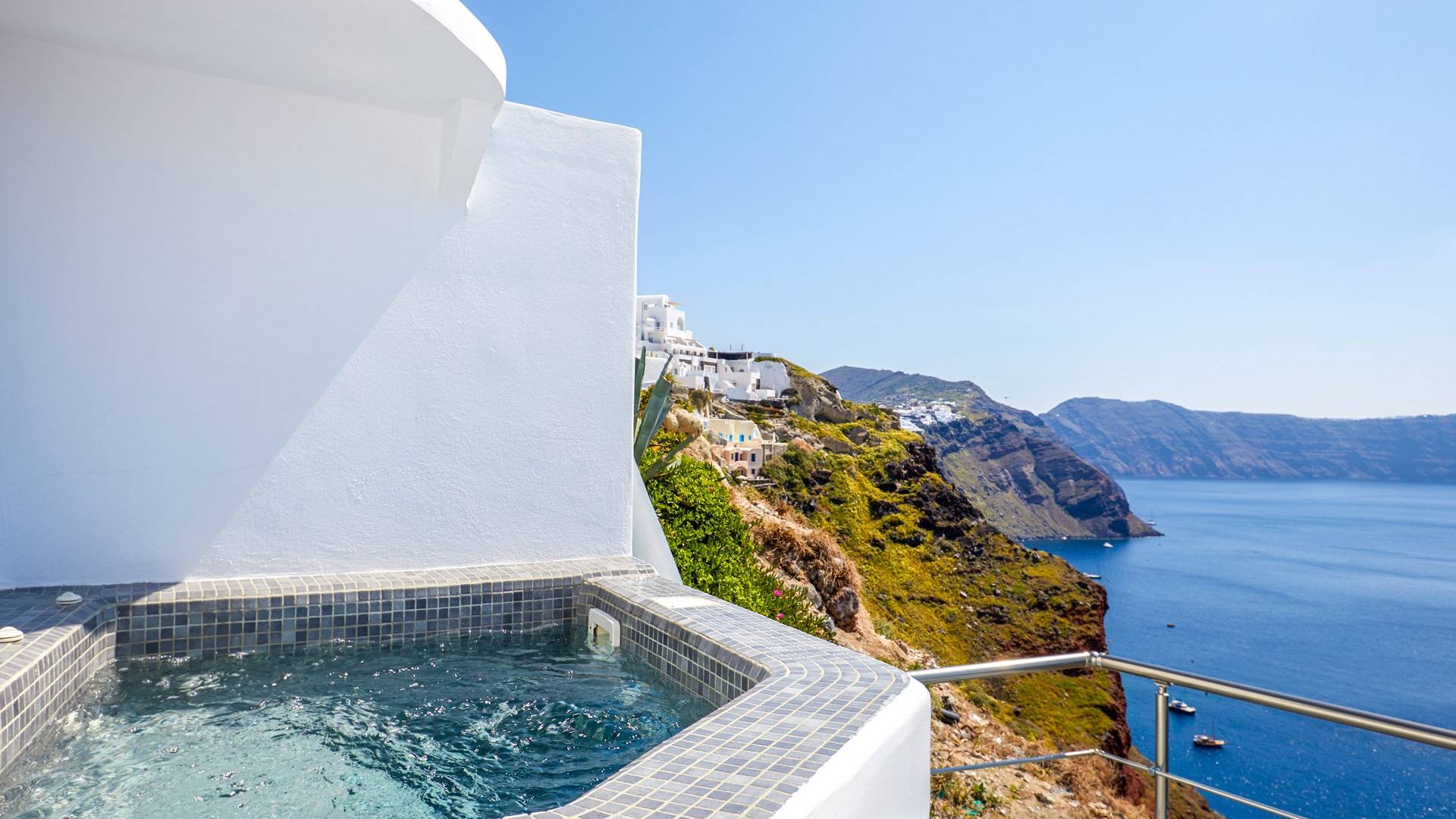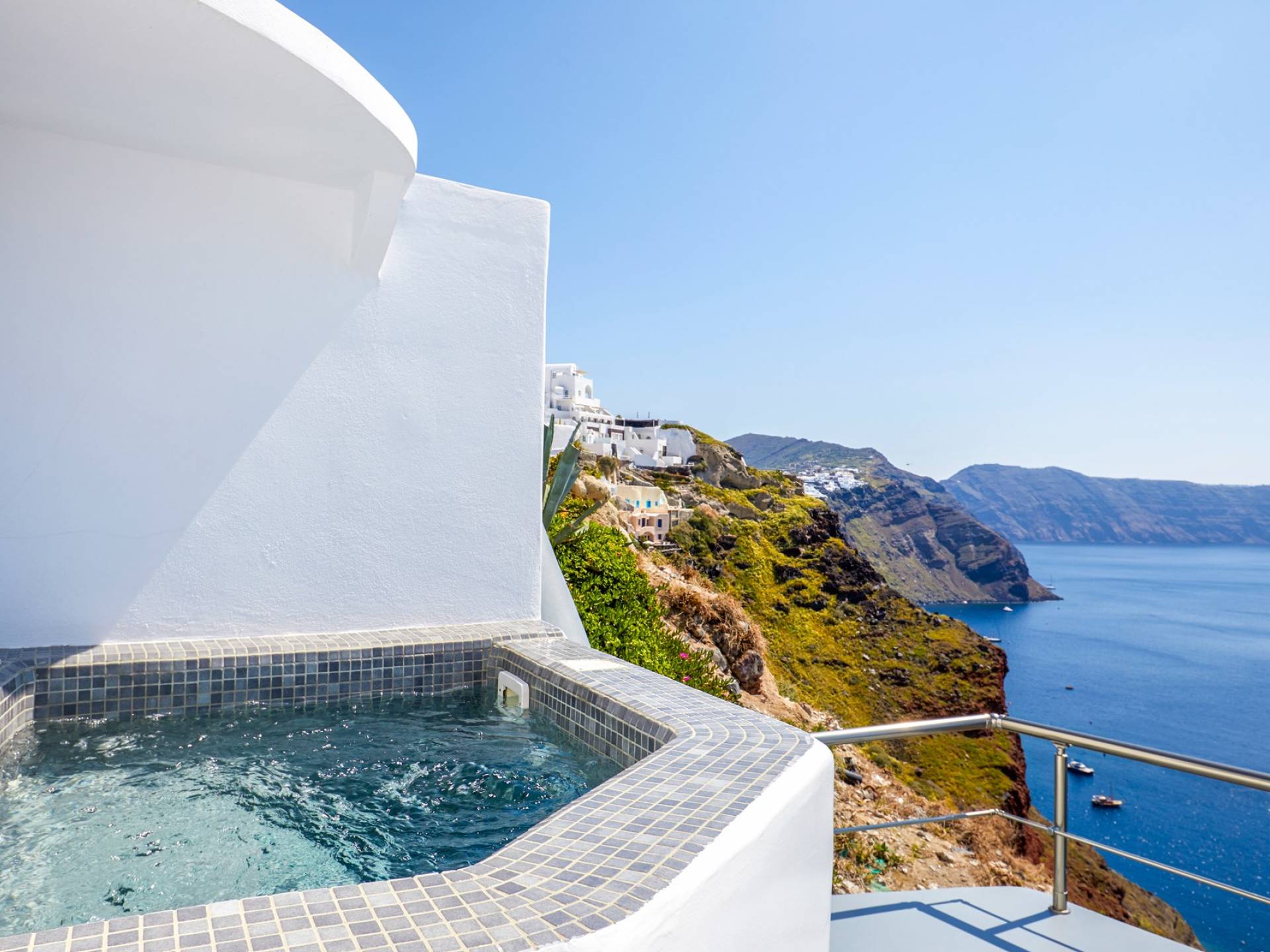 Standard Suite at Virginia's Cave Villas Santorini is a luxury suite rental with 1 bedroom and a hot tub. Virginia's Cave Villas is located in Oia, Santorini. View photos, rates and info here.