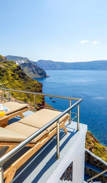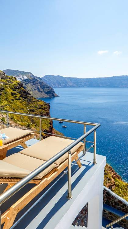 Luxury Cave Villas in Oia Santorini, with amazing views and all modern amenities. All cave-style rooms have been refurbished with great care, according to the island's traditional architecture, and are luxuriously furnished. The unique traditional elements of the rooms will fascinate you, culminating in their vaulted ceiling. The disarming view of the Caldera and the Aegean Sea offers our guests a unique feeling. The Castle (Kasteli) of Ag. Nicholas, from where you can enjoy magnificent views of the world-famous sunset, is just a few meters (50 meters) from Virginias Cave Villas.