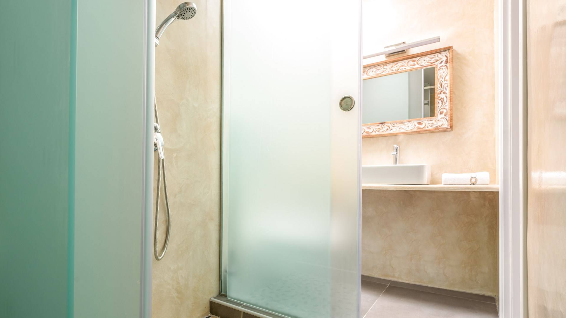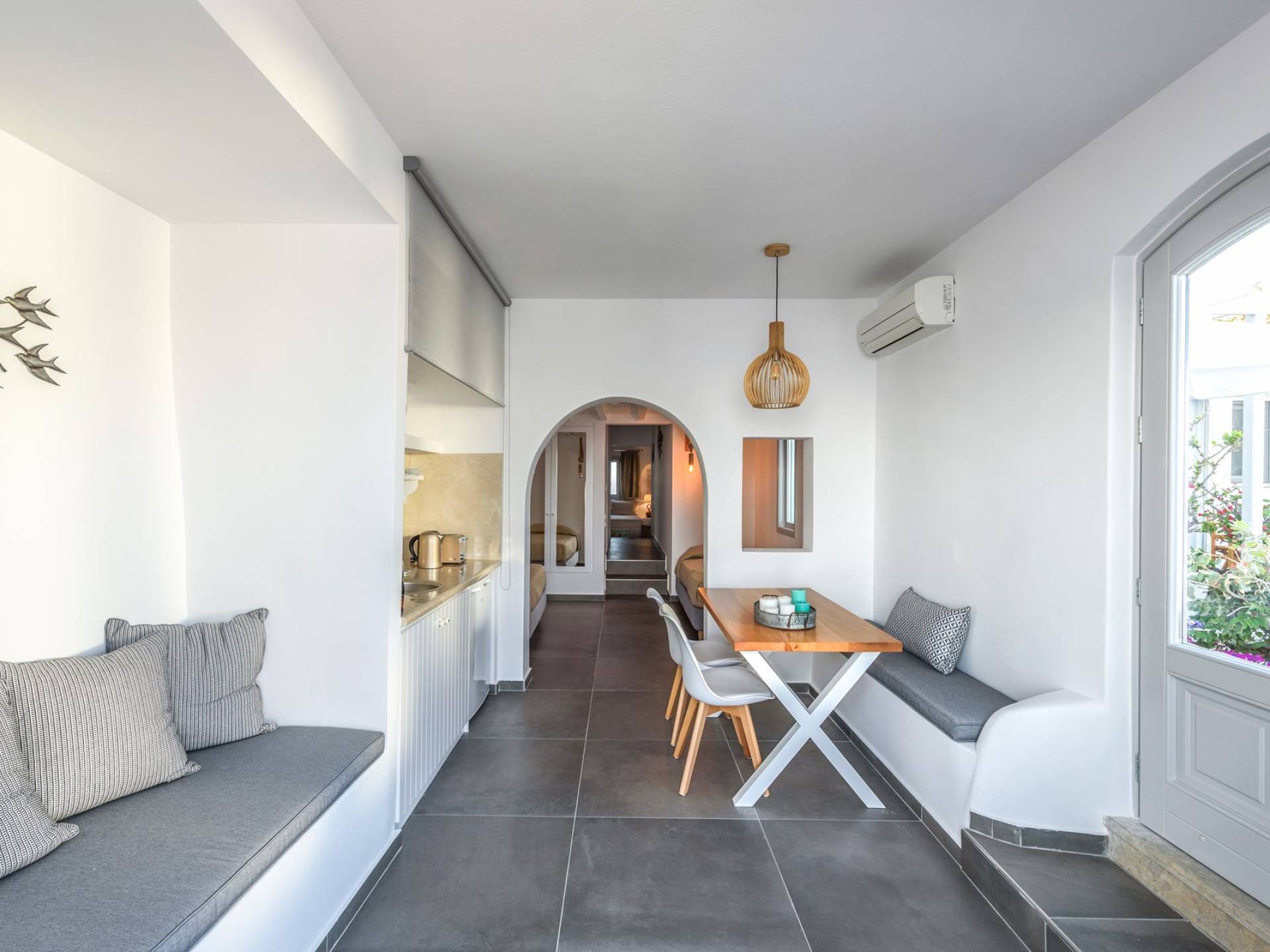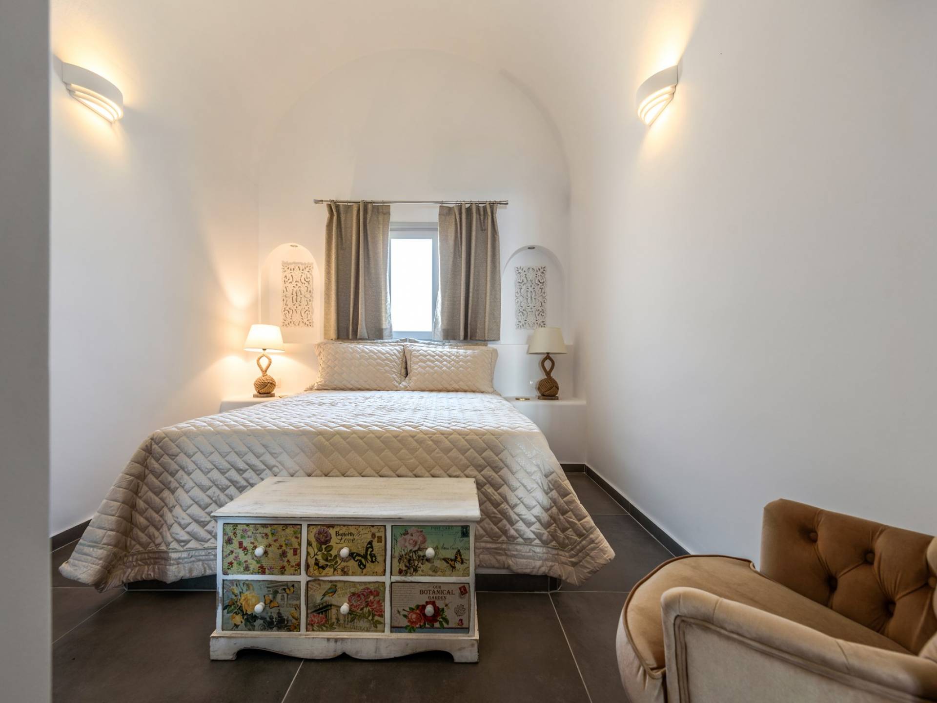 The villa can accommodate up to 4 people, consisting of an excellent layout, providing you with the absolute harmony and tranquility you desire during your Santorini Villa Holidays in Santorini. It boasts a family room/living room with two sofas, a table, and chairs, a sleeping area with two single beds, a bedroom with a double bed and a bathroom with a shower.