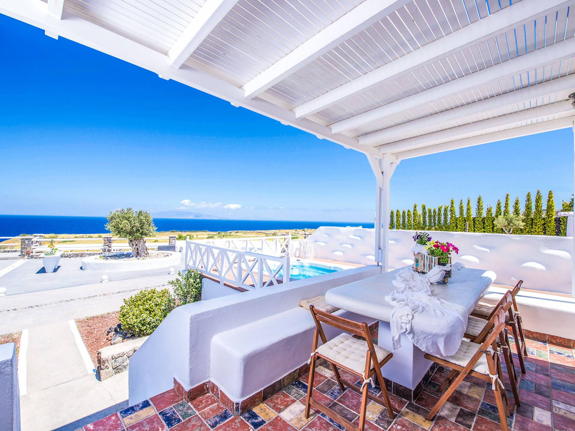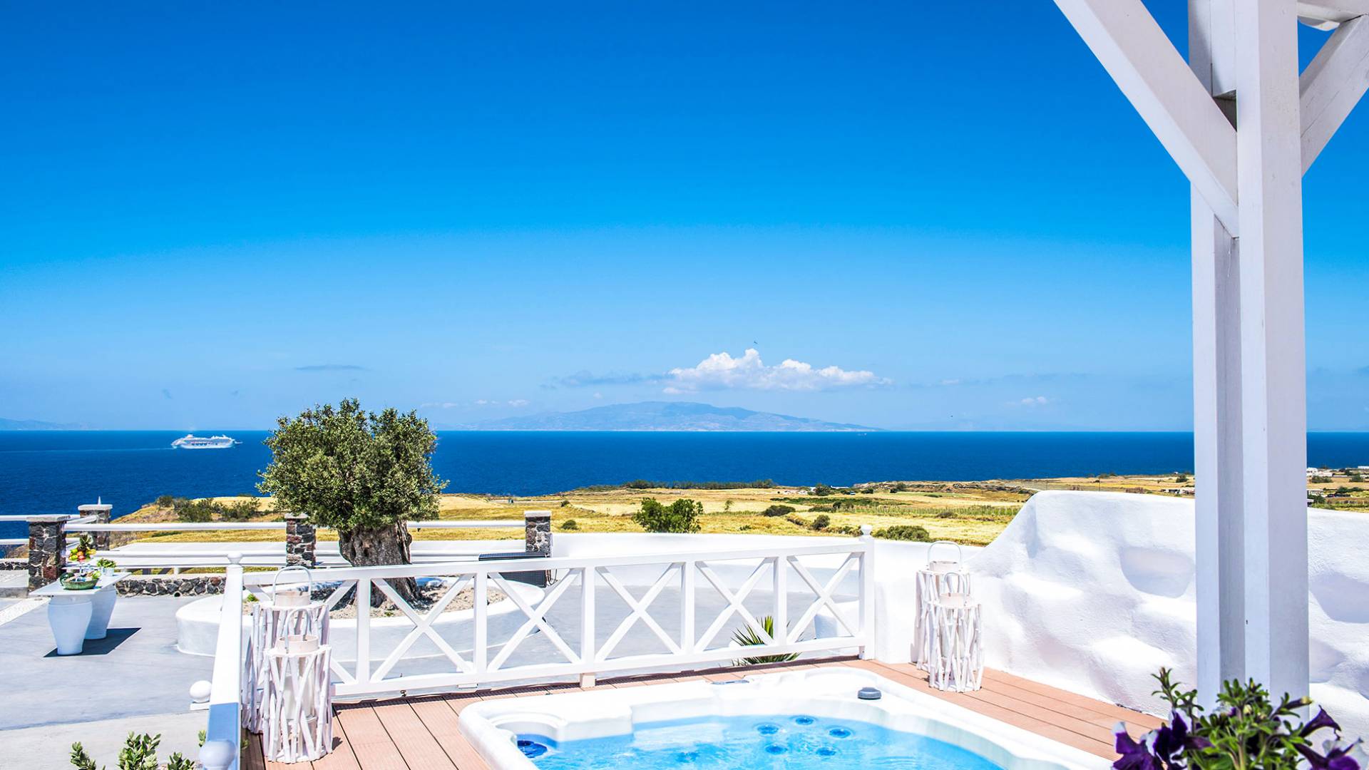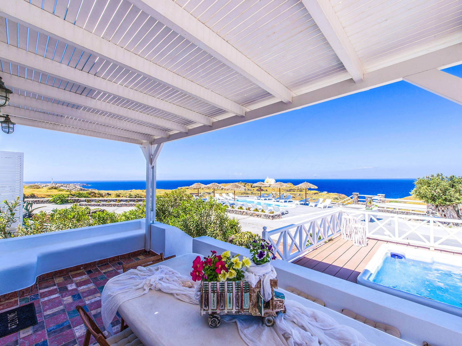 Staying at Villa Emerald at Oia Sunset Villas Santorini you have the privilege of privacy and luxury, a great view to Oia’s sunset and exceptional sea views, access by car and doesn’t require hard walk at steps, a private parking area, two communal use swimming and sunbathing pools, a private outdoor heated hydro massage spa, a cool location, a relaxed atmosphere, a unique comfortable residence, an excellent accommodation, a romantic getaway, a rental near to beach and water activities, shops, galleries and restaurants, a private yard with a great panoramic view, a house built by and for the owner and not for rental.