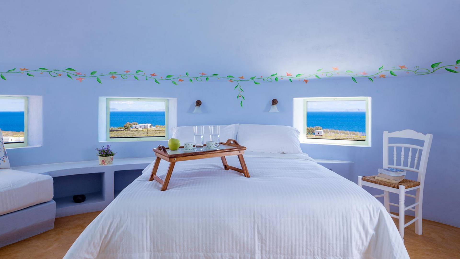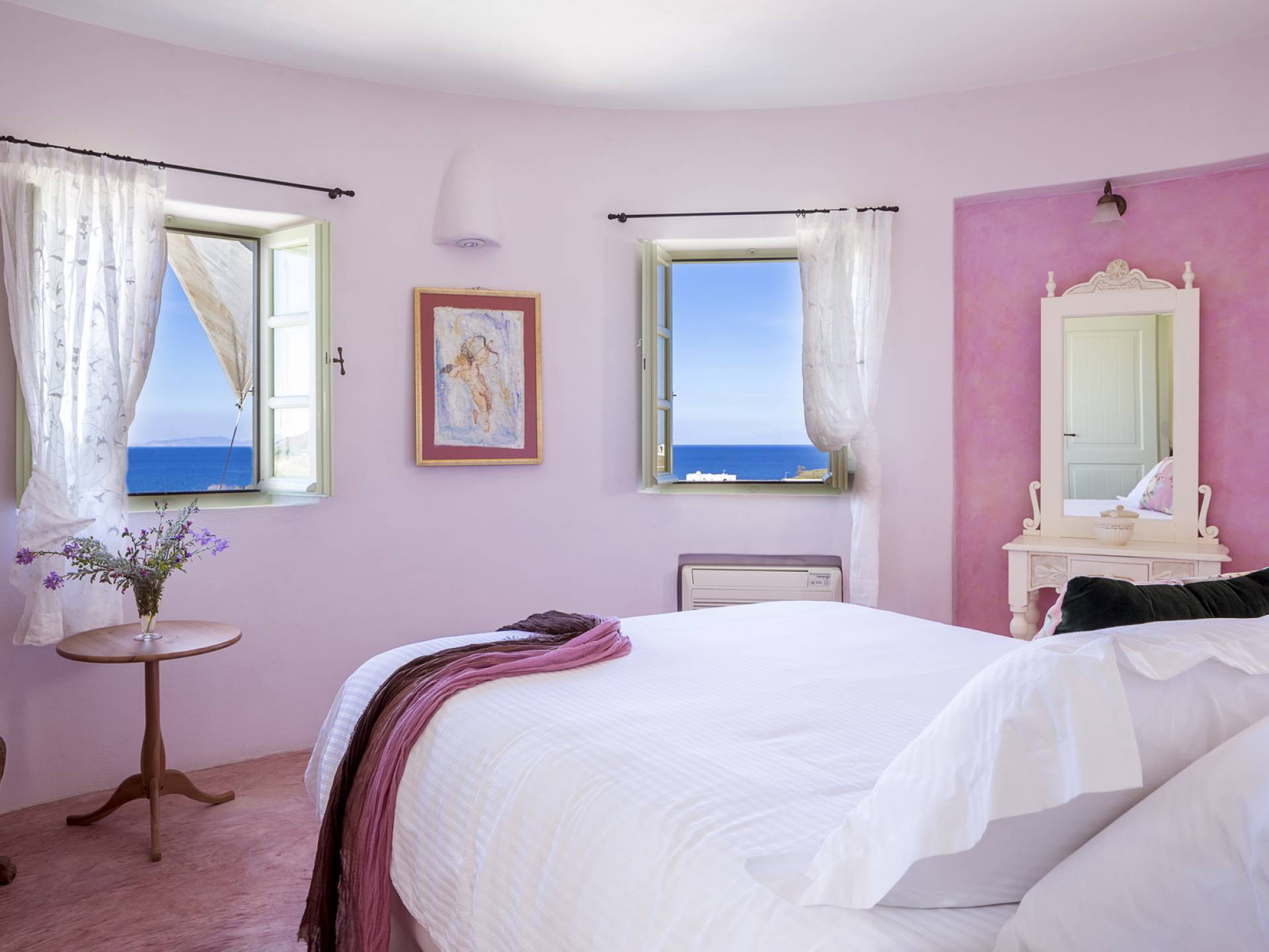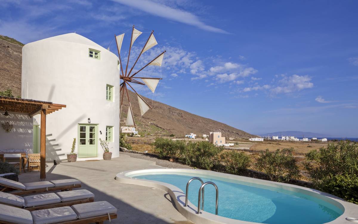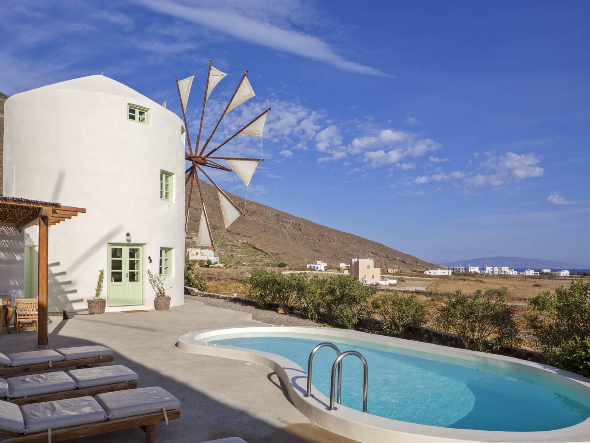 Santorini Windmill Villas is a complex of three new-built similar Luxury Windmills located at the beautiful island of Santorini. The unique, private location of the villas offers a panoramic view of the Aegean Sea and the sunrise reflections on the surface of the sea which are visible even from your bed.