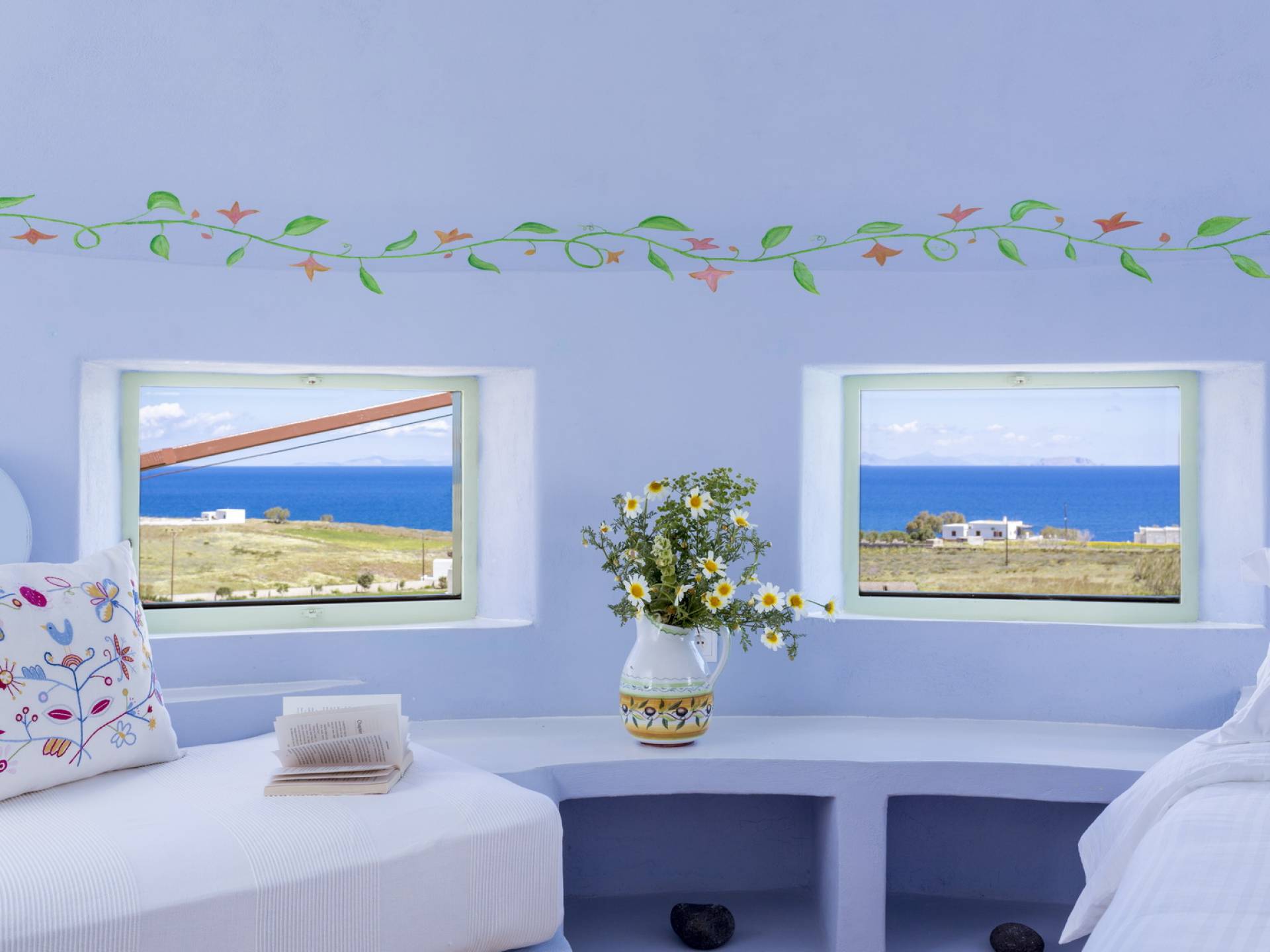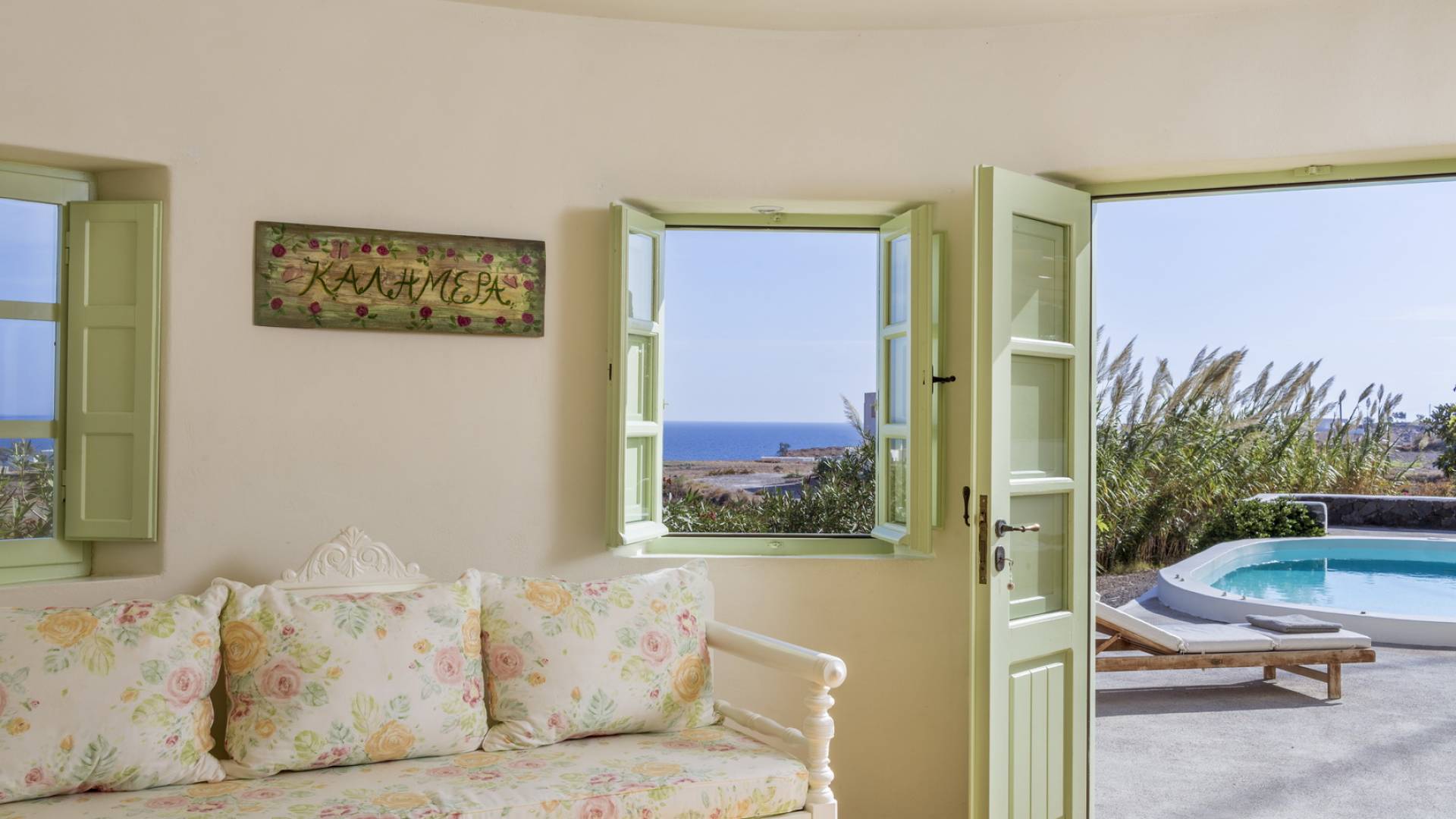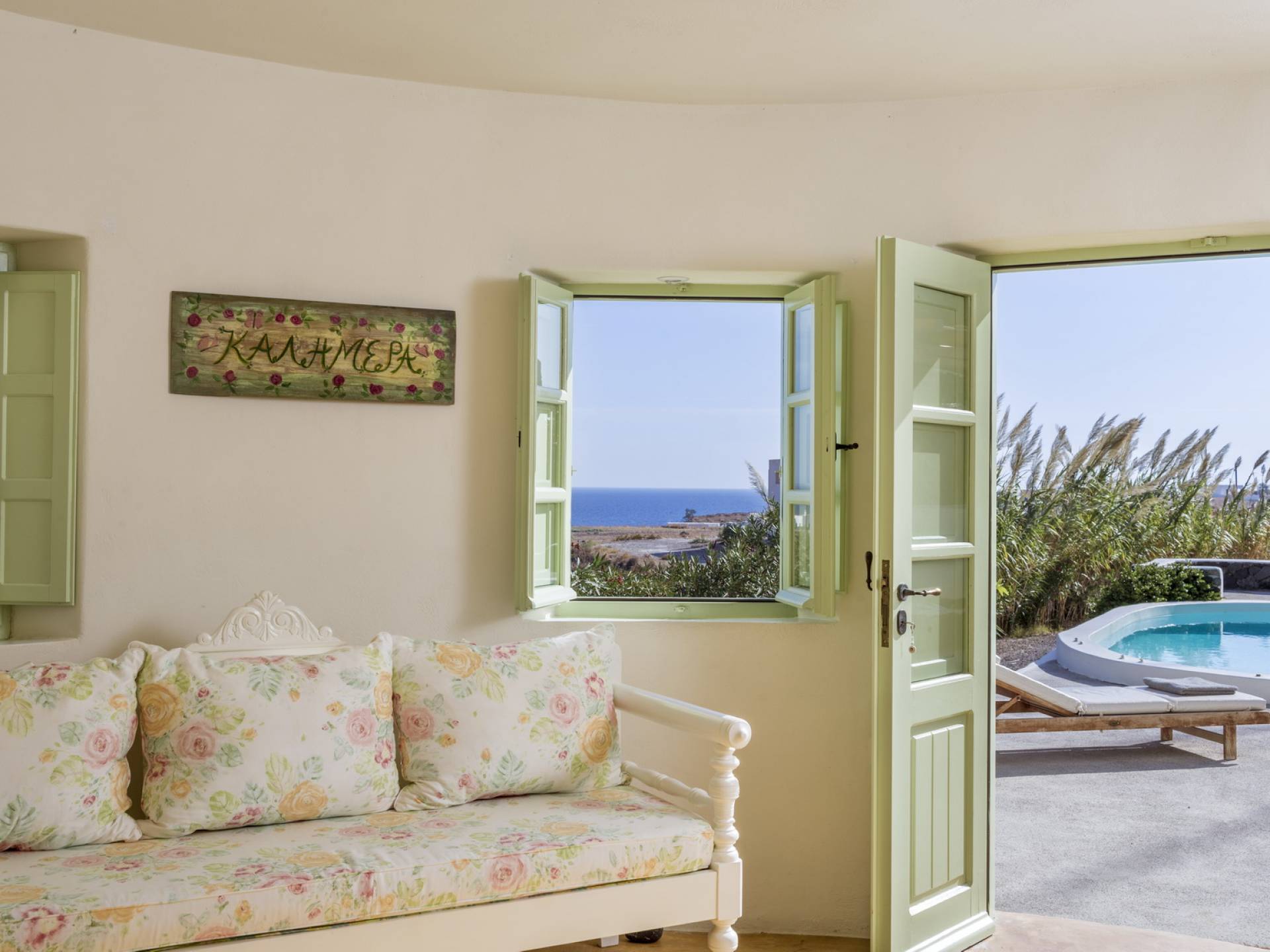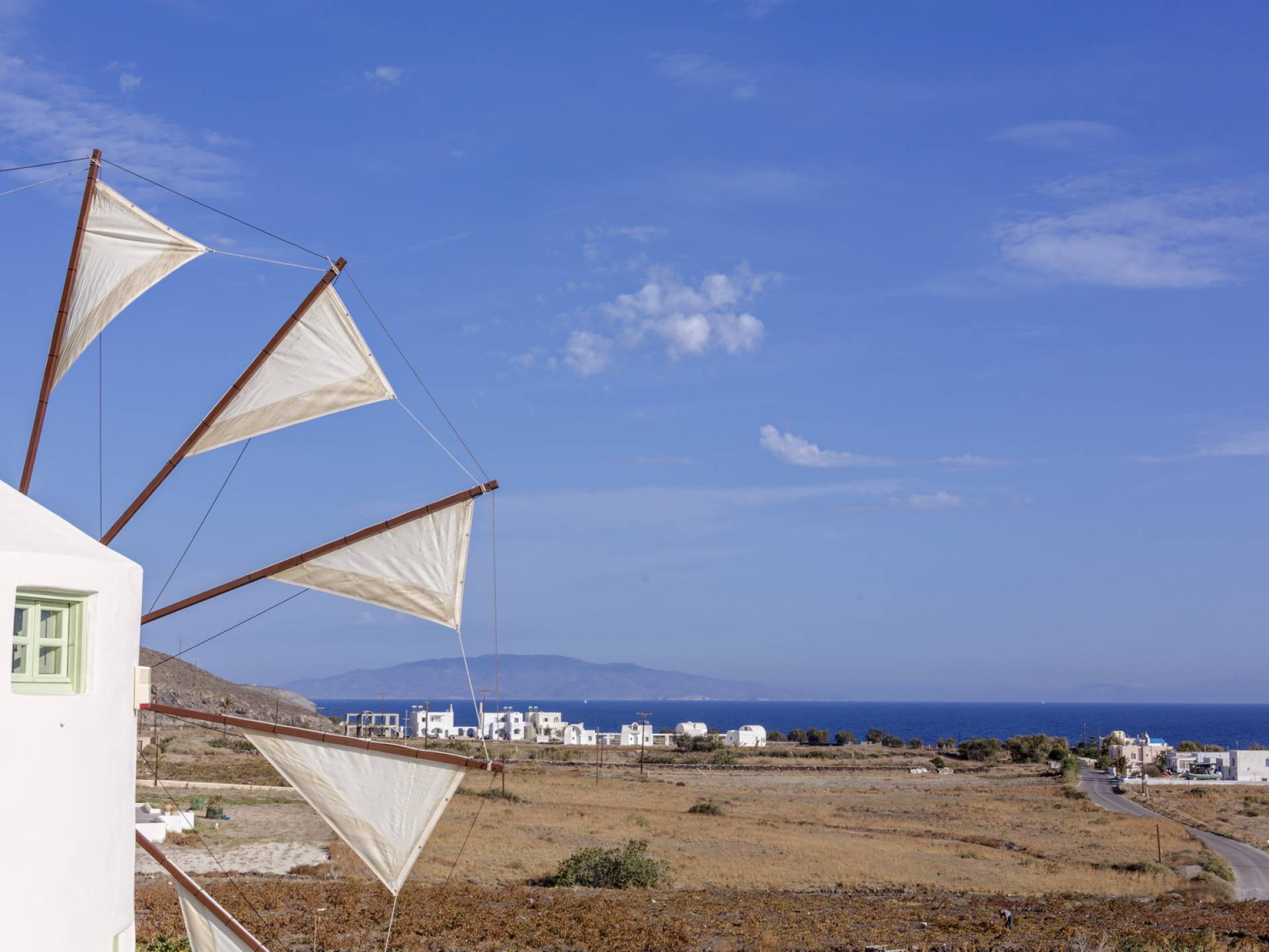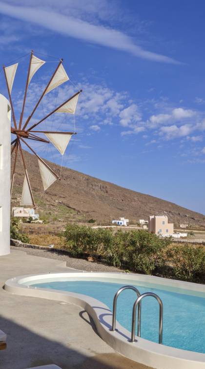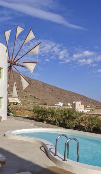 Santorini Windmill Villas are located at the northeast coast of Santorini island, between the capital of Fira and the traditional settlement of Ia. This peaceful side of the island keeps its tranquility even during the high season. The fresh north wind gives the area a cool “breath” throughout the hottest days of the year and it is the reason why it is free of mosquitoes.