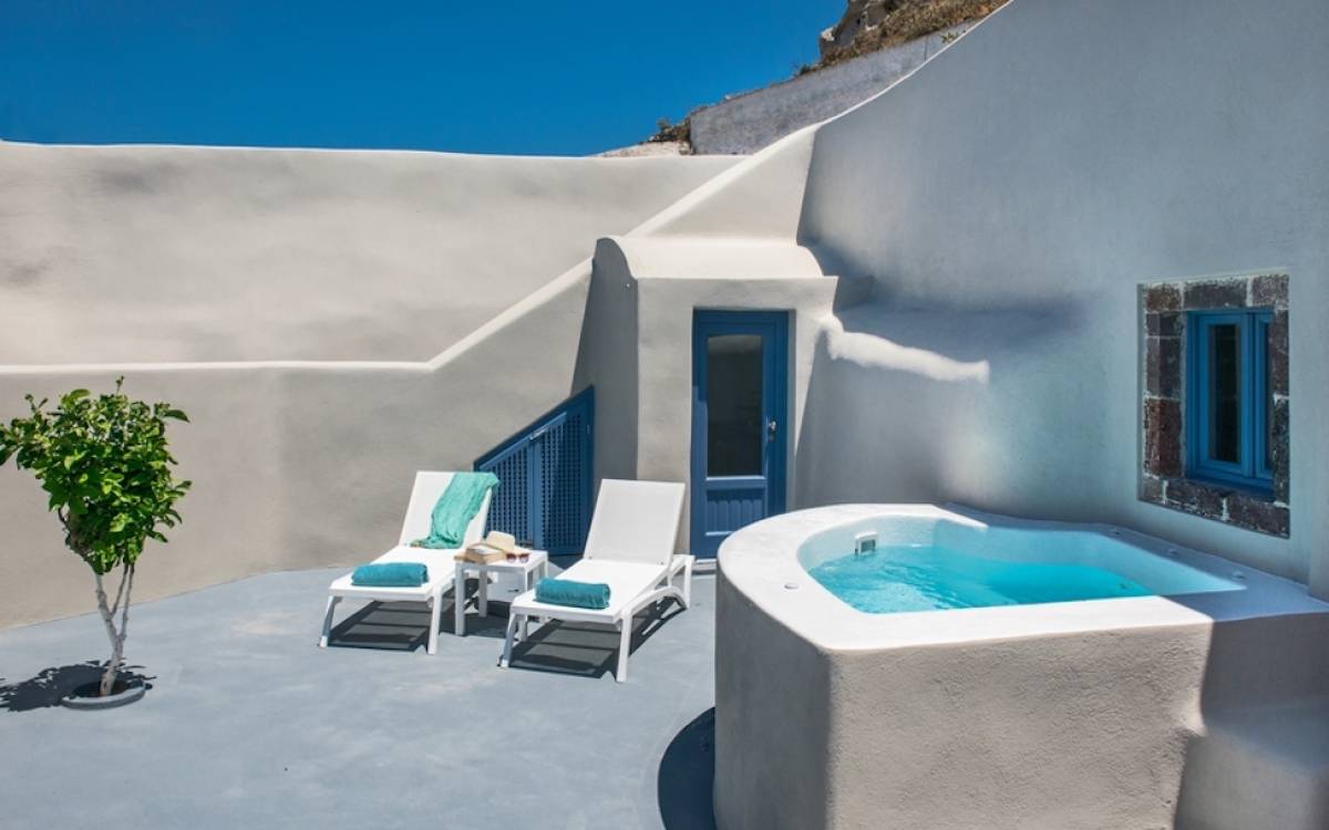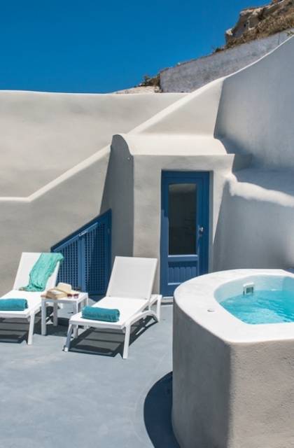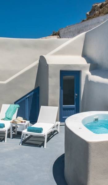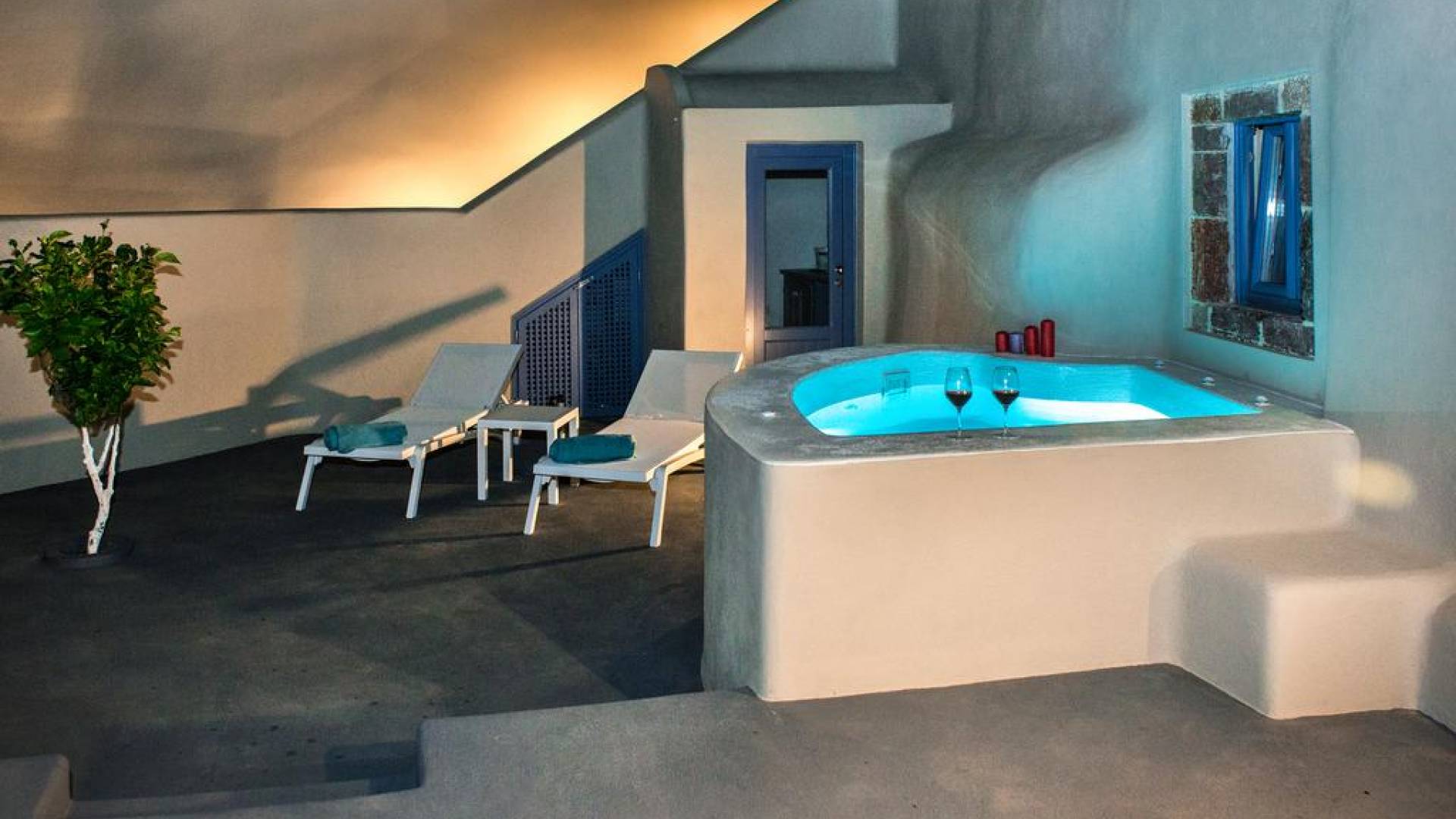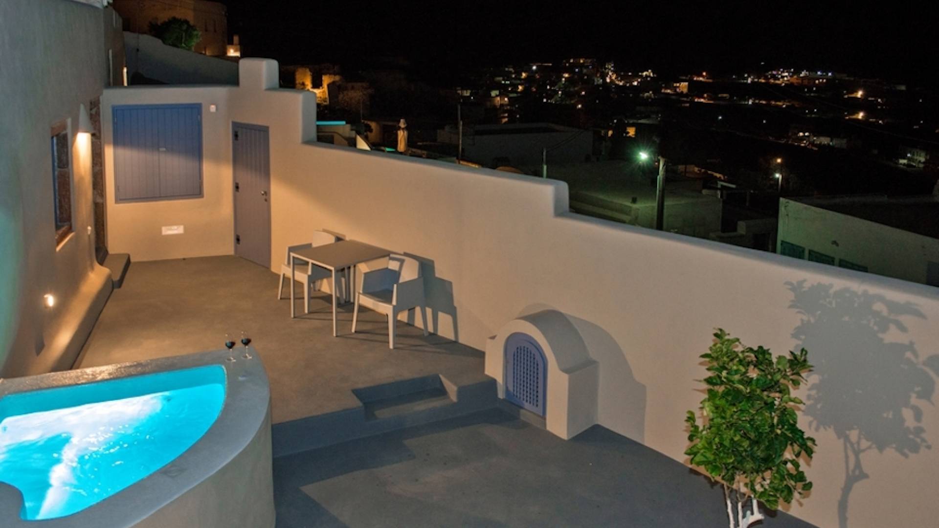 Luna Santorini Suites is proudly located high on the island’s medieval village of Pyrgos, offering panoramic views of the island, the Aegean blue, and the famous Santorini sunsets. The complex is comprised of the traditional concierge suites, with outdoor heated Jacuzzis and spacious patios where guests can enjoy undisturbed views of Santorini. Luna Santorini suites are crafted in traditional style and combine the warmth of Greek Island charm with the convenience of modern amenities.