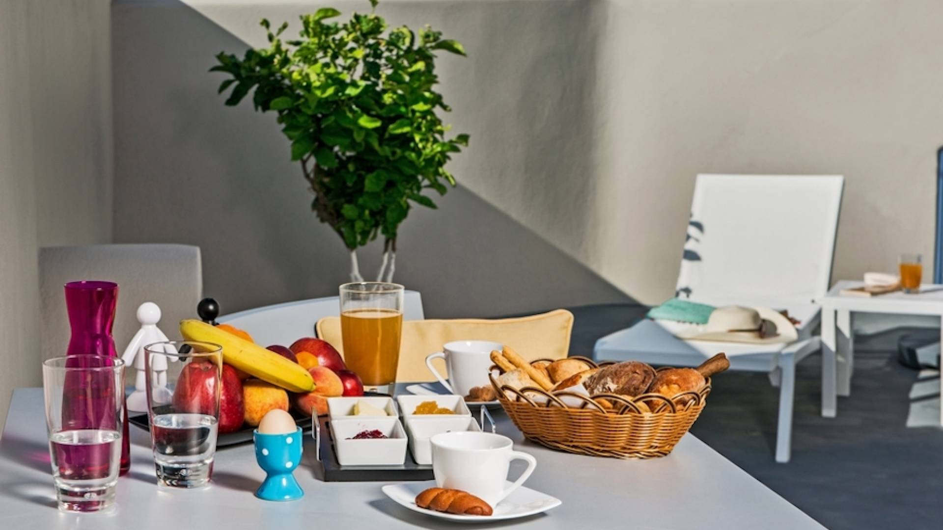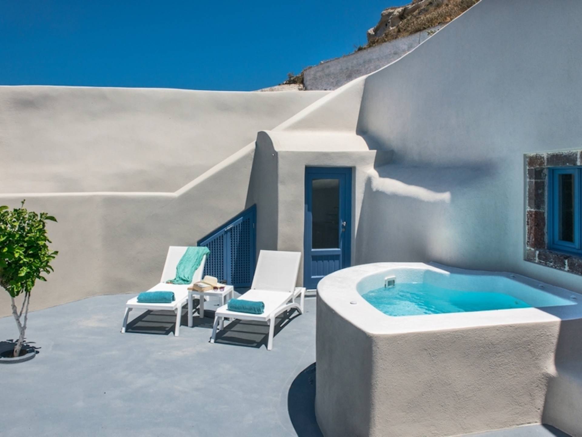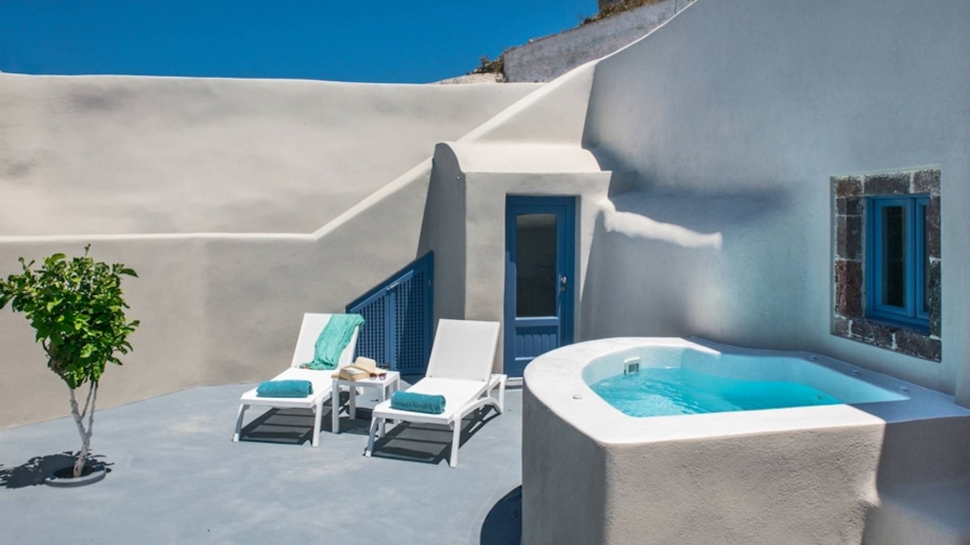 Luna Santorini Suites is proudly located high on the island’s medieval village of Pyrgos, offering panoramic views of the island, the Aegean blue, and the famous Santorini sunsets. The complex is comprised of the traditional concierge suites, with outdoor heated Jacuzzis and spacious patios where guests can enjoy undisturbed views of Santorini. Luna Santorini suites are crafted in traditional style and combine the warmth of Greek Island charm with the convenience of modern amenities.