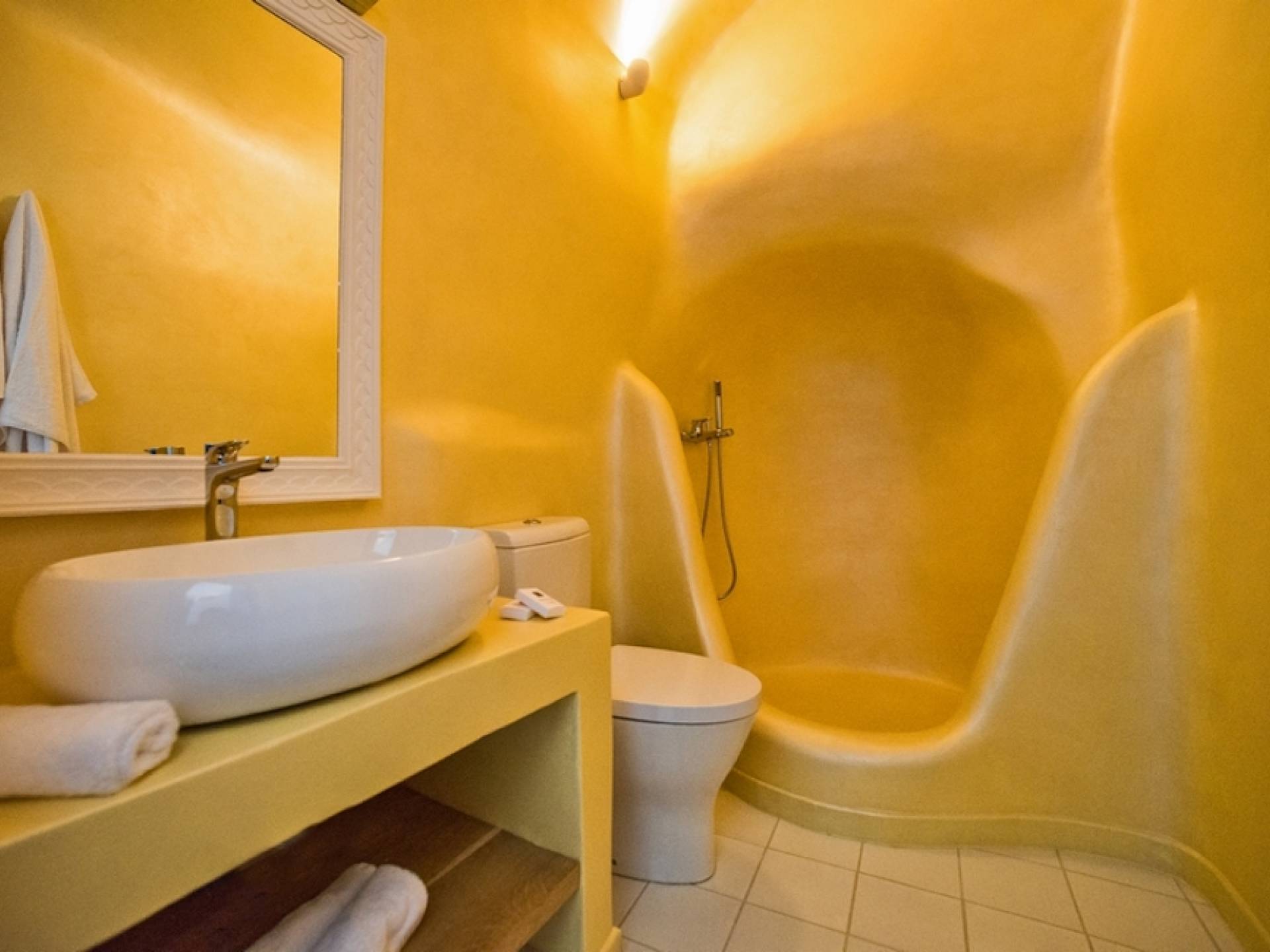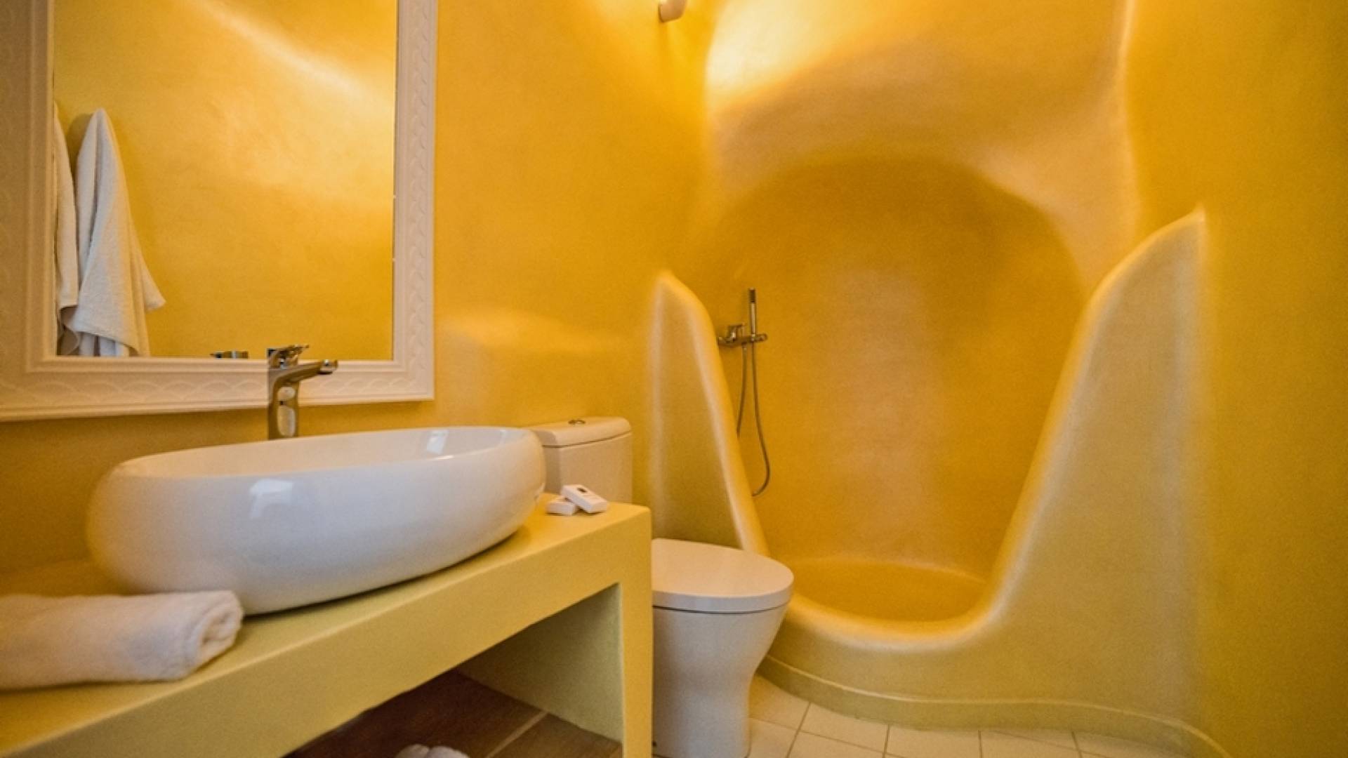 Luna Santorini Suites offer spacious traditional bathrooms with bathtub and rain shower, hand shower, toilet, hairdryer, and shaving mirror. Equipped with quality modern amenities including vanity kit, soap, and shampoo dispensers, washcloth, shower cap, and body lotion, they provide all comforts and services expected by today's discerning traveler. The property’s unique atmosphere is coupled with all modern comforts and an exceptional service focused on flexibility and personal touch: we promise to contribute to memories you will treasure for the rest of your life!