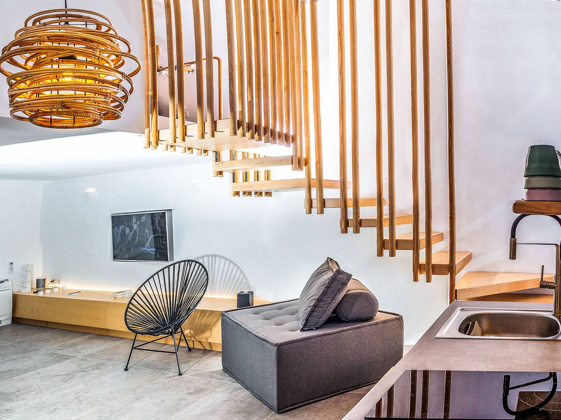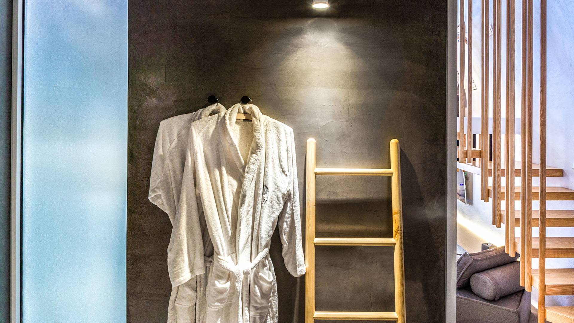 On the Ground Floor, U Villa features a spacious living room with a stylish layout and design: a large comfortable sofa and a relaxing woven hanging chair, a useful kitchenette that is fully equipped and a cosy table for two. A bespoke bath experience is a perfect treat for the villas’ guests, with warm, calming textures and colours, a built-in bathtub and a large shower.