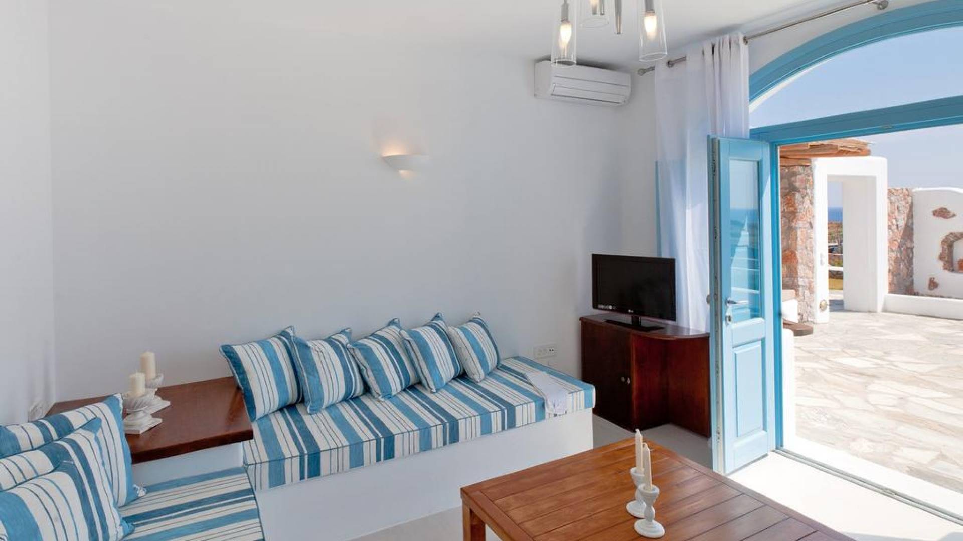 Zephyros Villa is offered in a modern, contemporary style and comprises perfect, high specification accommodation. The seating area and kitchen are open plans, with a large picture window offering magnificent sea views and an expanse of natural light. The spacious bathroom at the rear of the studio is complete with a rain shower. The bedroom has a queen-sized bed with a COCO-MAT natural fiber mattress and top-mattress; this also has a large window offering views of the sea. In the outside private sea view veranda, you can enjoy your own private pool with deck chairs, lounge, and BBQ.
