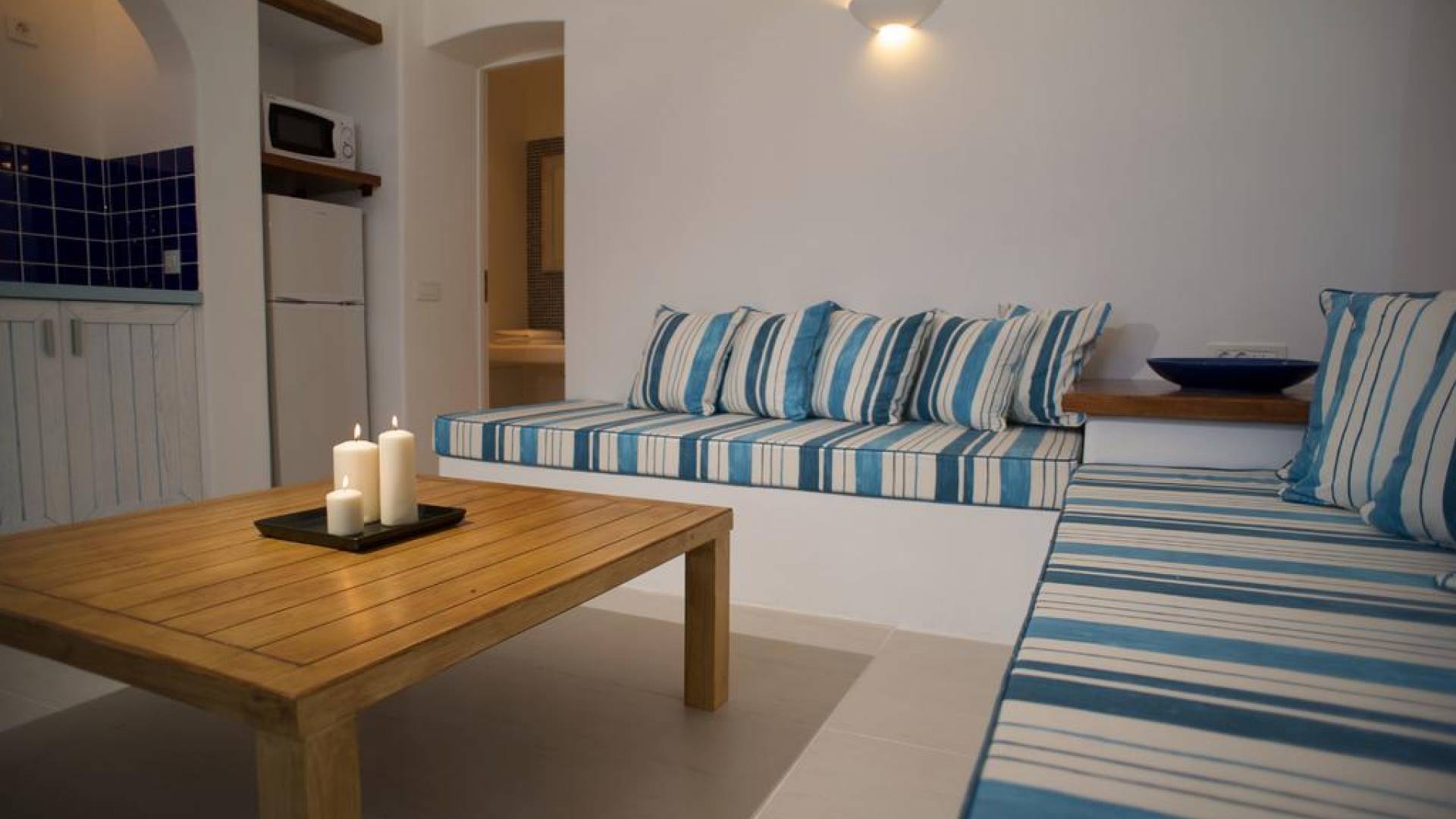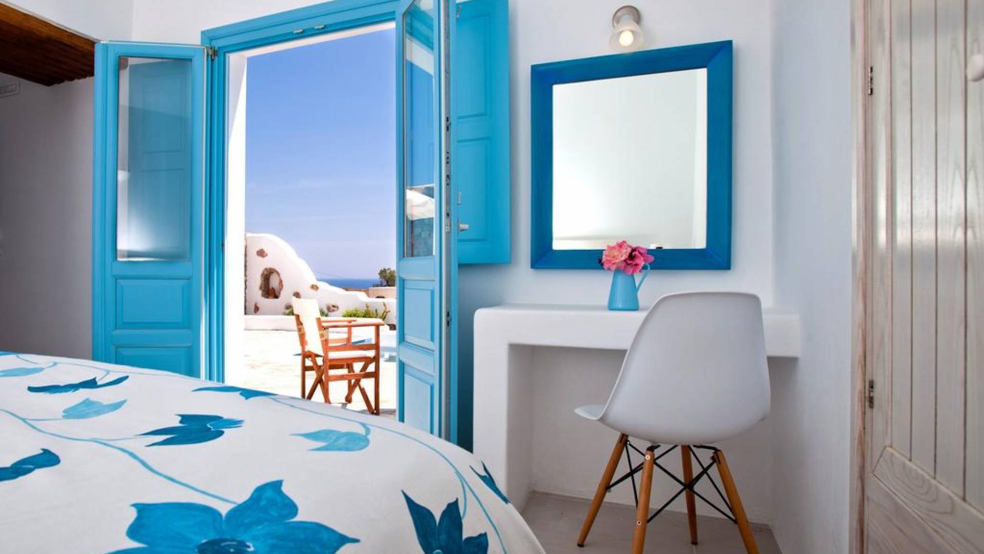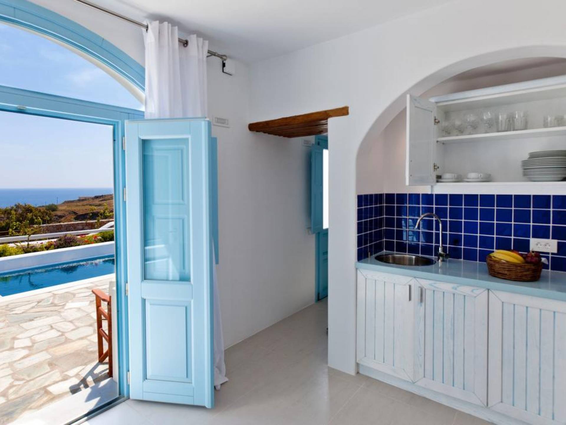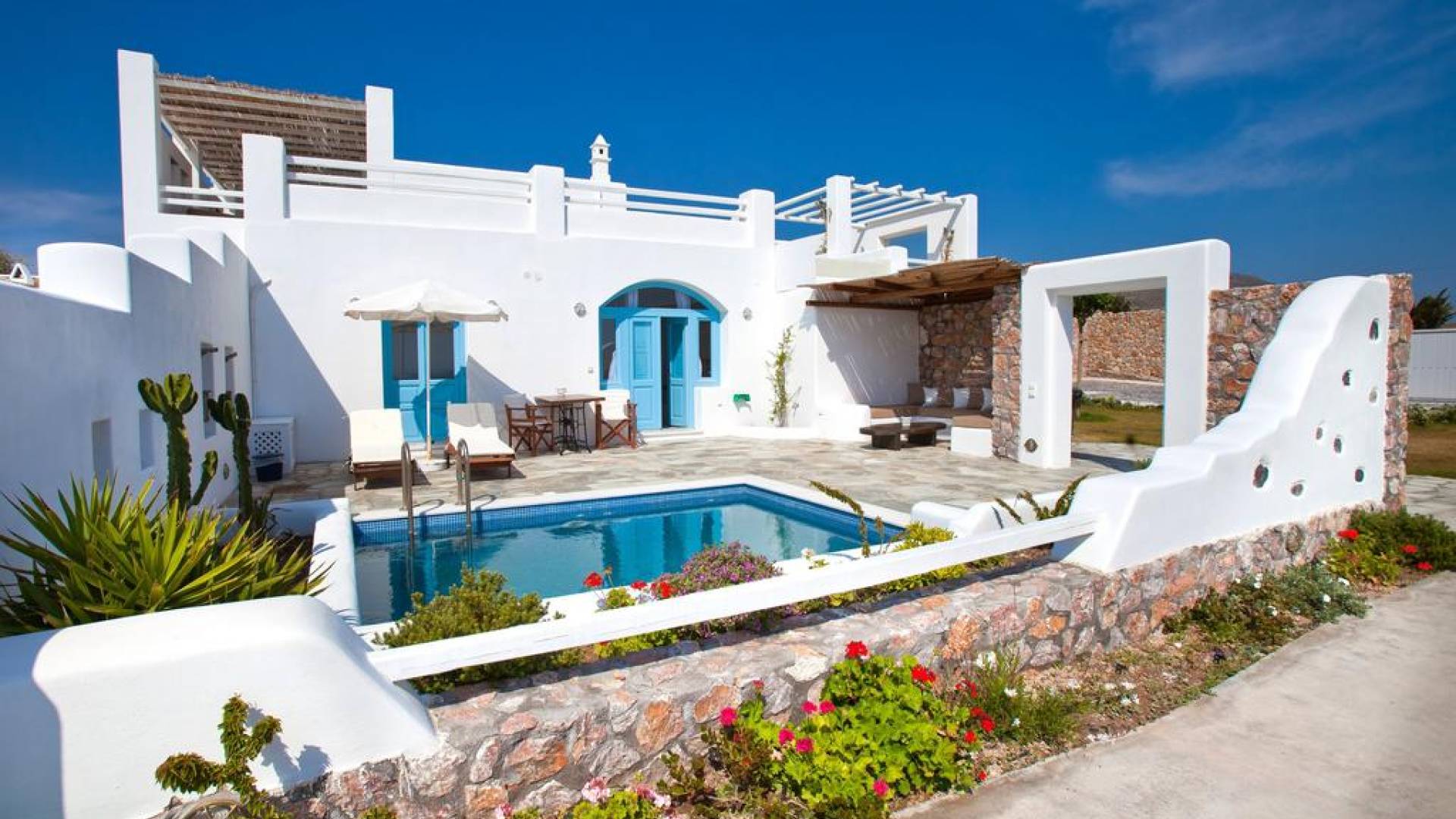 Anema Residence of Santorini is a 6000 square meter, private villa property, overlooking the Aegean Sea and stunning views of the islands of Anafi and Amorgos. Located in the Santorini countryside and surrounded by vineyards and farms, and only 400 meters from the black pebble beach of Vourvoulos. Its panoramic position offers views of the surrounding farms, fields, and the sea, offering a true feeling of nature and serenity.