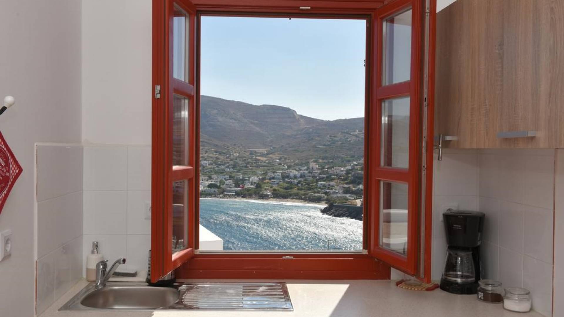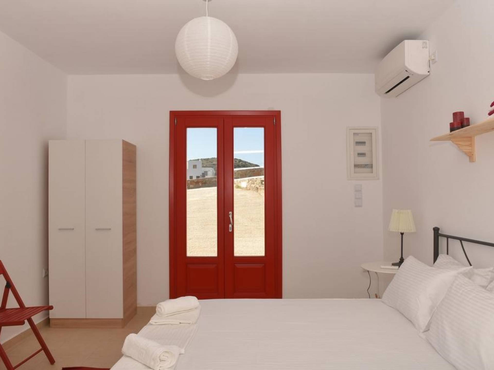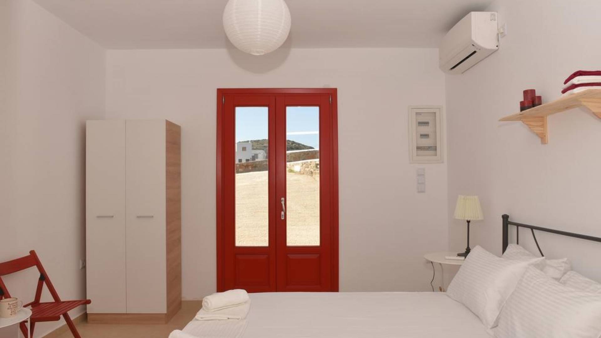 Villa Red Syros is a luxury villa rental with 4 bedrooms. The Red Summer House is a sunny independent house on top of Hrysonisos in Kini area which is about 3,5 km away from beach of Kini (About 7min by car) with a breathtaking view over Kini beach of Syros island. 9 km away from the port of the island in Ermoupolis, the capital of Syros and of the Cyclades complex is the seaside resort Kini, a magnificent beach for summer vacation. Nearby there are taverns for lunch, lovely restaurants for dinner, coffee shops and mini markets.