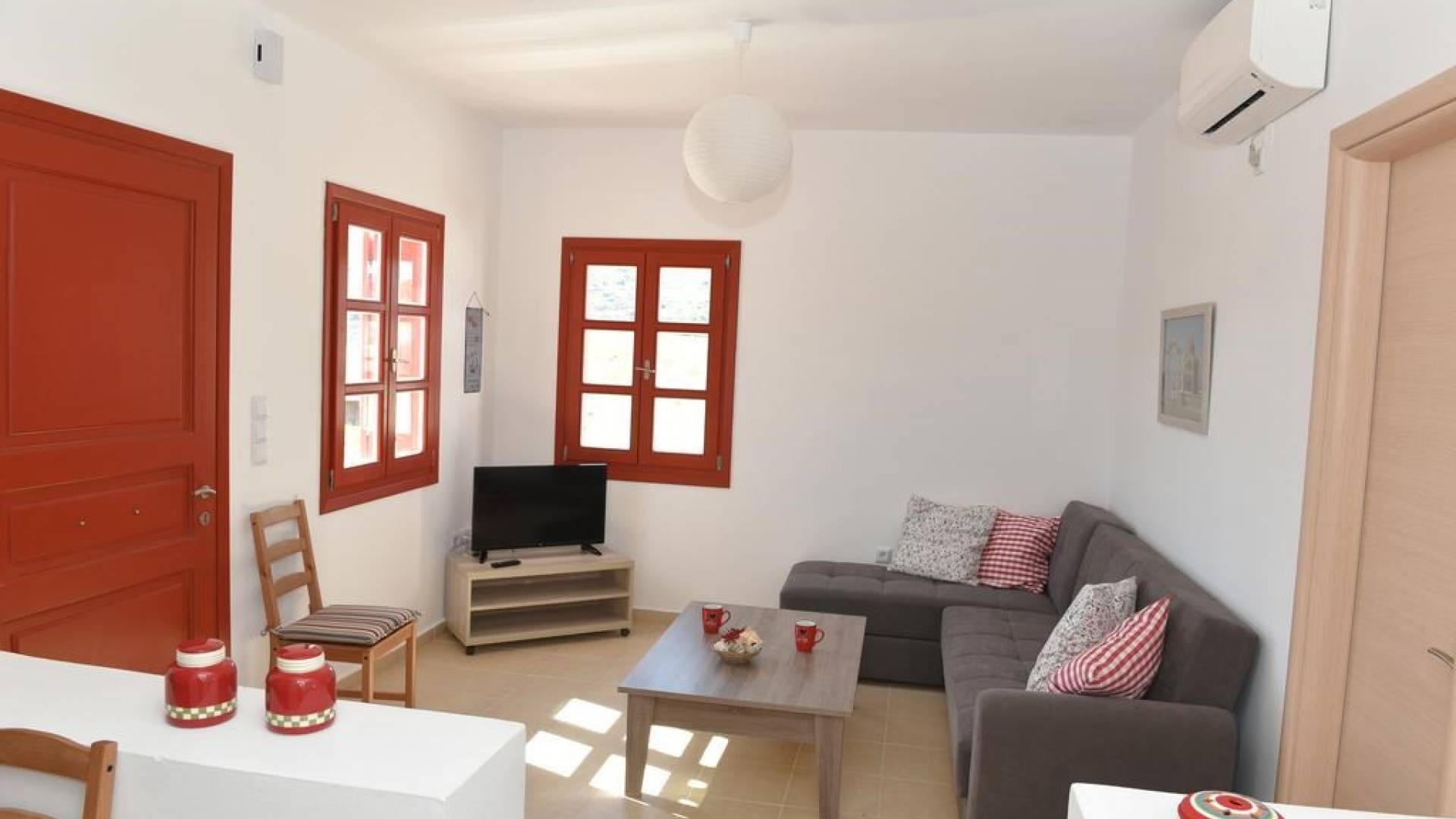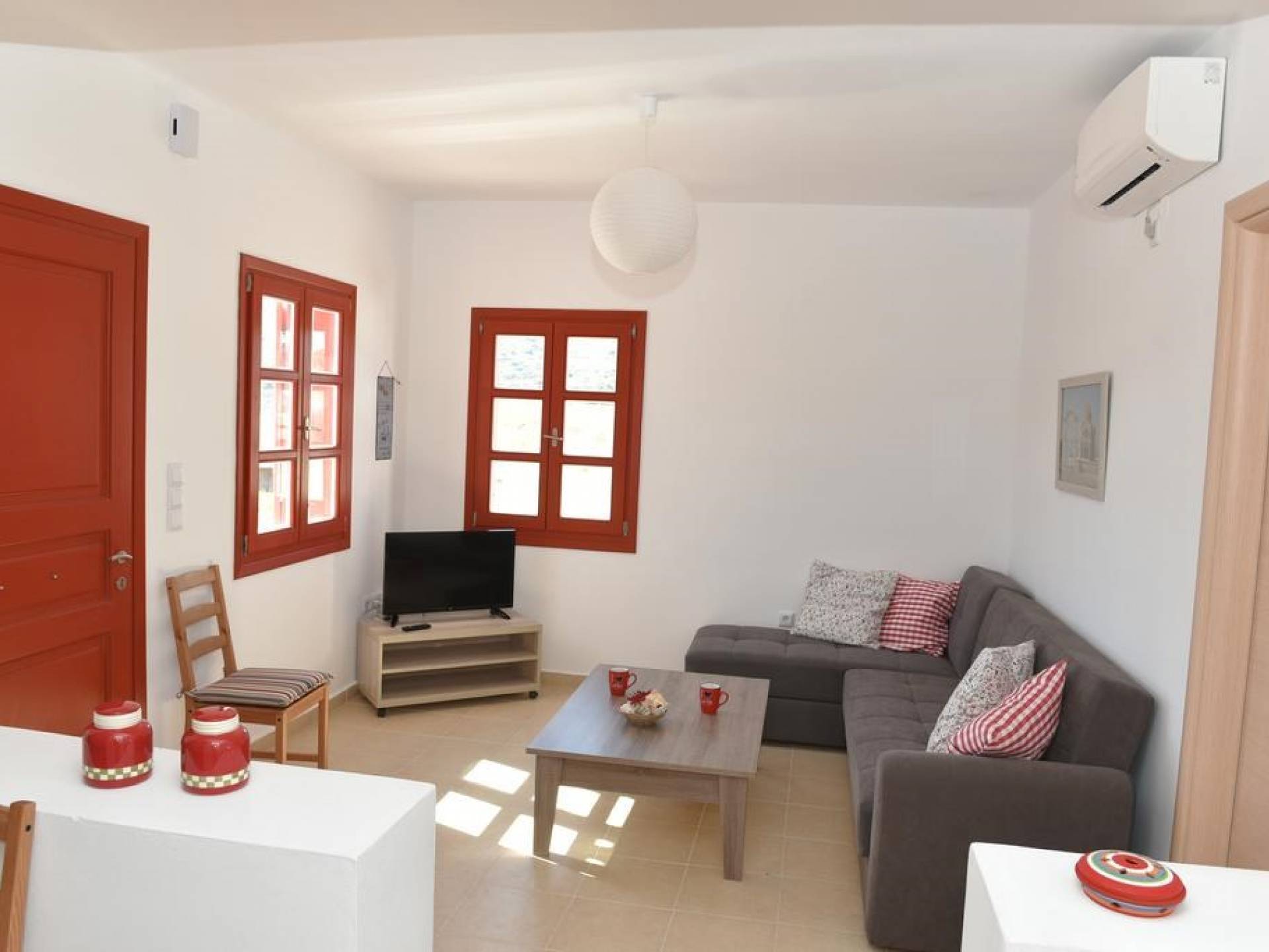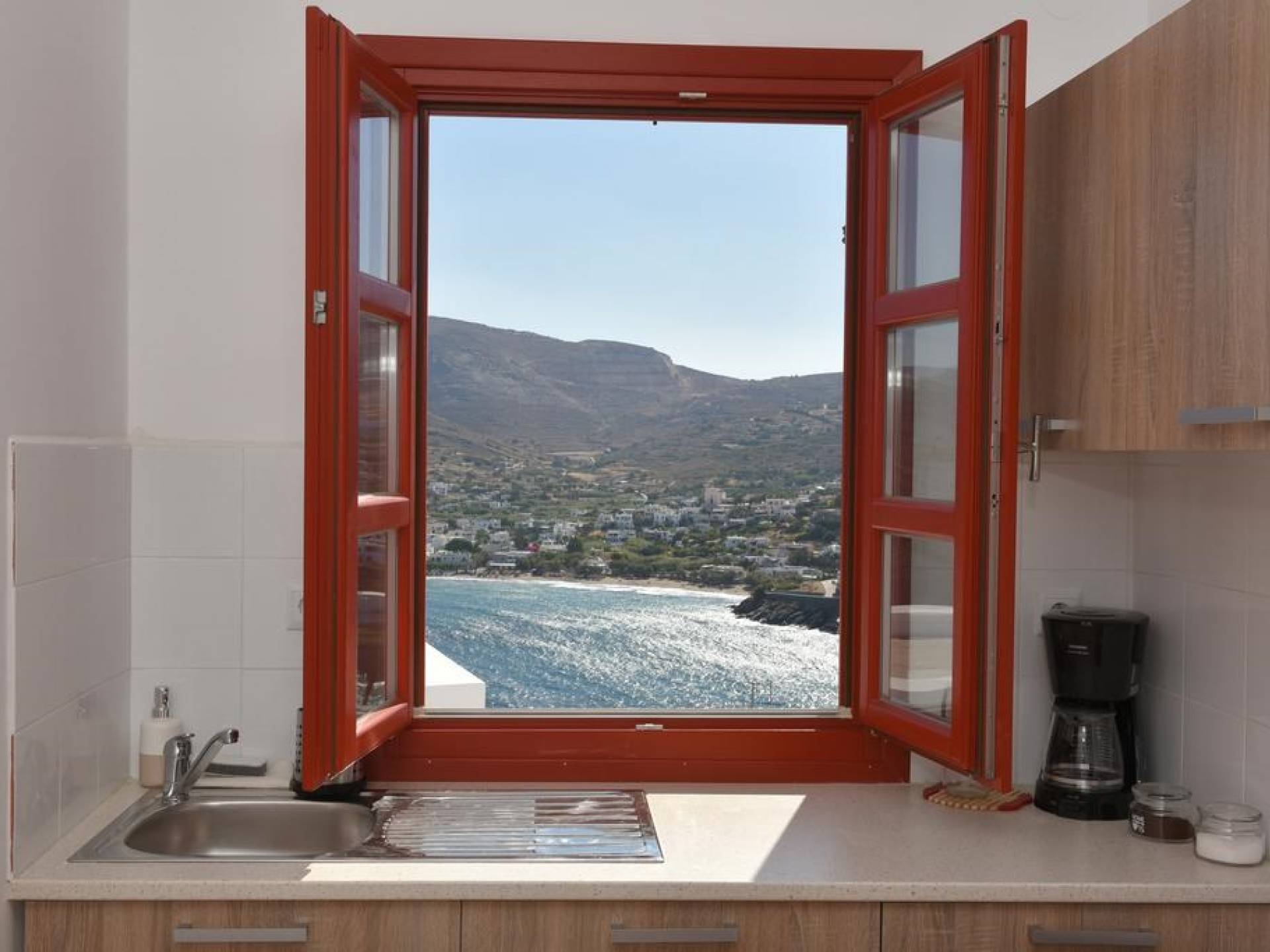 Villa Red Syros is a luxury villa rental with 4 bedrooms. The Red Summer House is a sunny independent house on top of Hrysonisos in Kini area which is about 3,5 km away from beach of Kini (About 7min by car) with a breathtaking view over Kini beach of Syros island. 9 km away from the port of the island in Ermoupolis, the capital of Syros and of the Cyclades complex is the seaside resort Kini, a magnificent beach for summer vacation. Nearby there are taverns for lunch, lovely restaurants for dinner, coffee shops and mini markets.