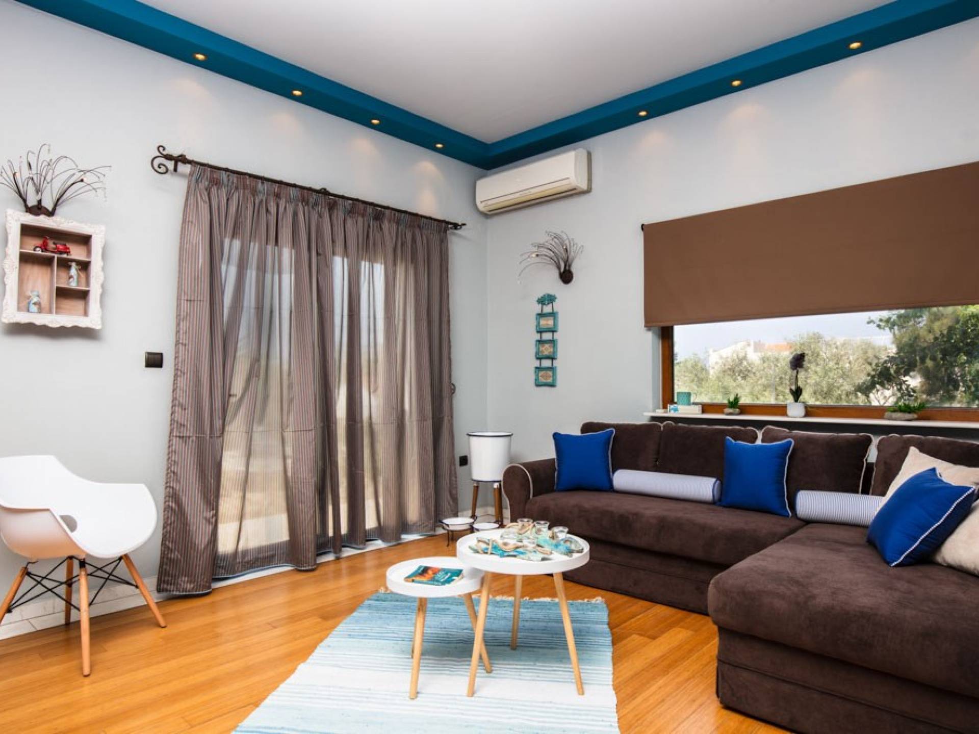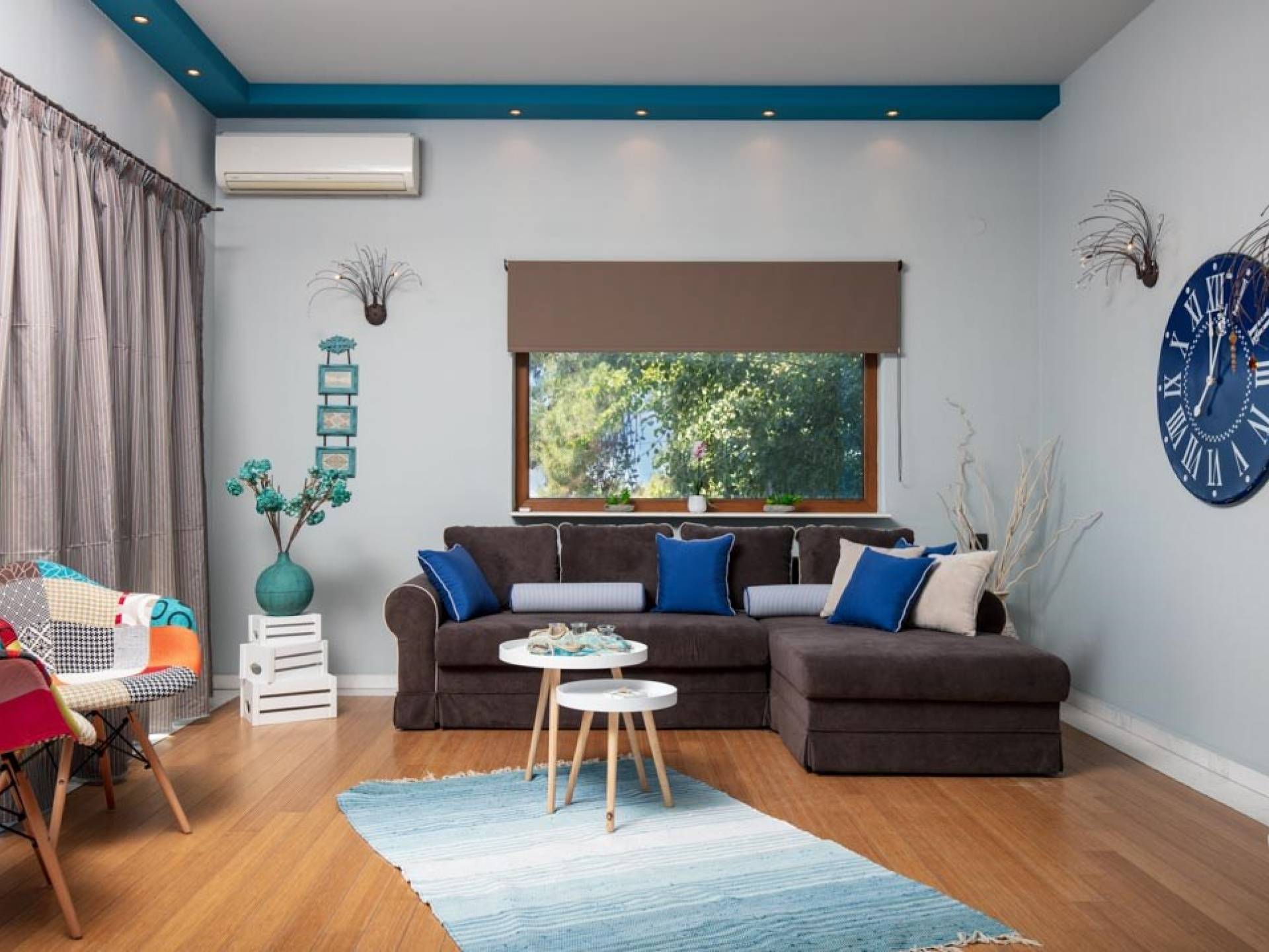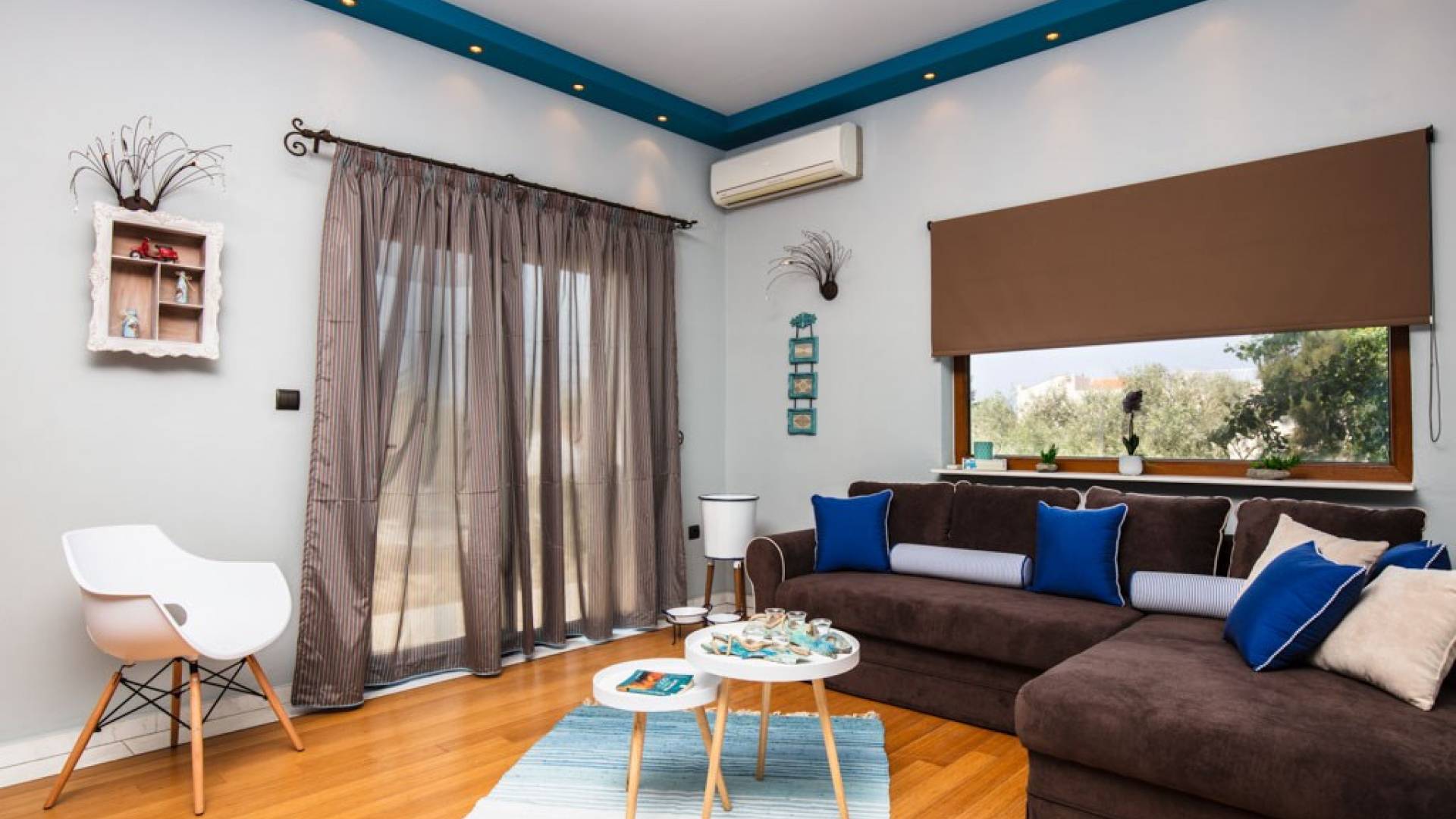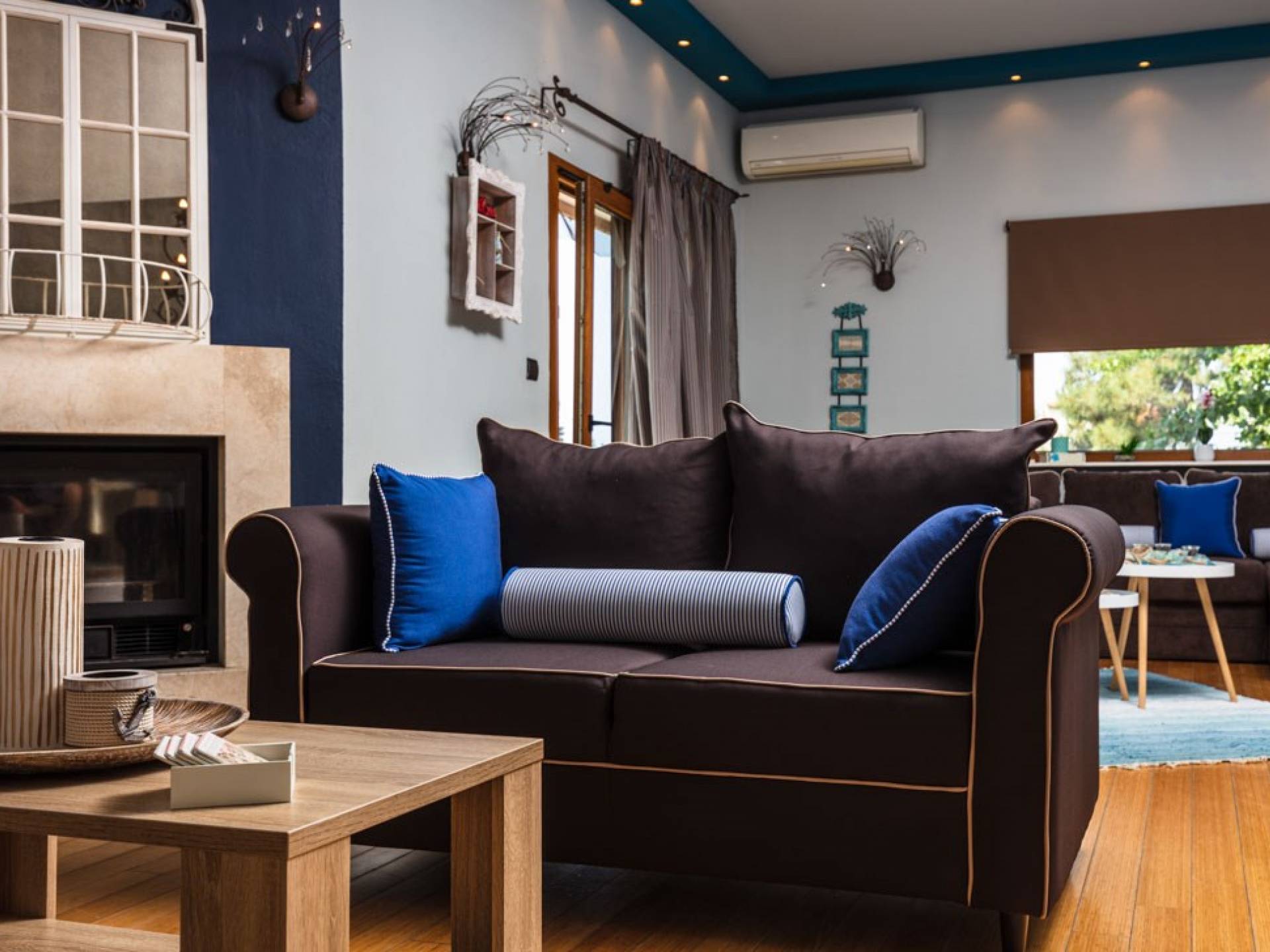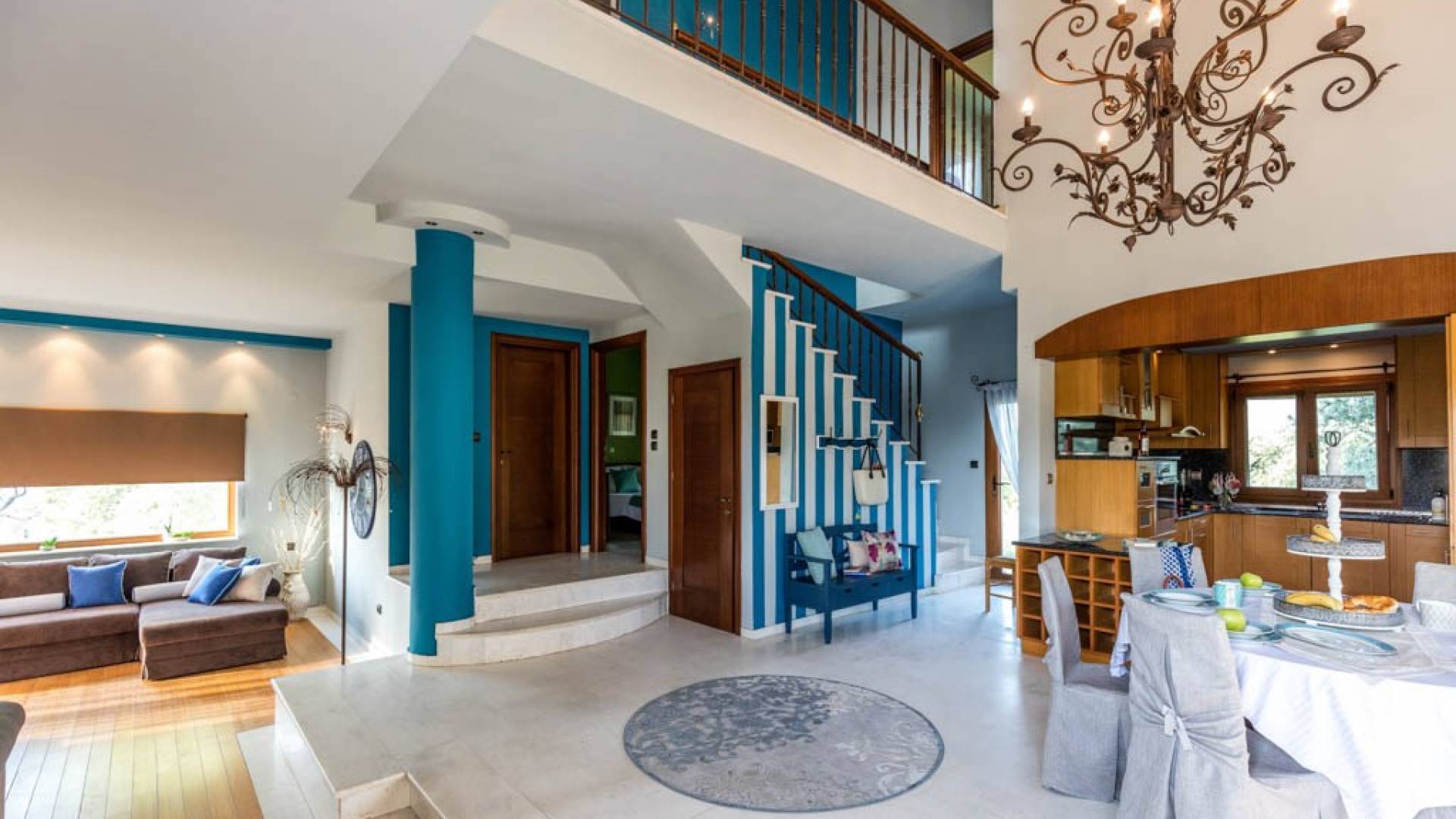 The villa has a modern, delicate decoration and extravagant furniture offering comfortable and luxury accommodation. It has five bedrooms in total and three bathrooms. From the five bedrooms, one is a master one with a completely private bathroom inside. In the spacious living room, you can bring together your family, friends or guests to watch TV, talk or do recreational activities. The kitchen is fully equipped and makes you feel at home.
