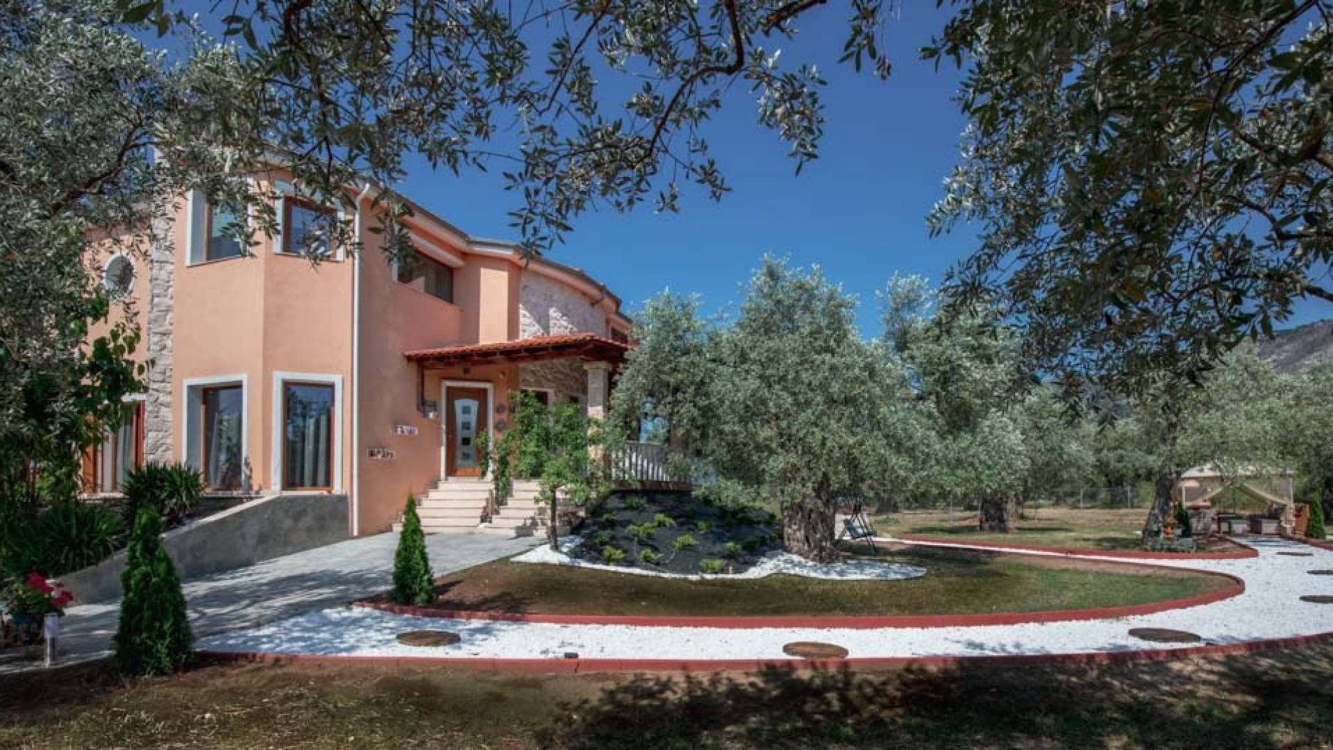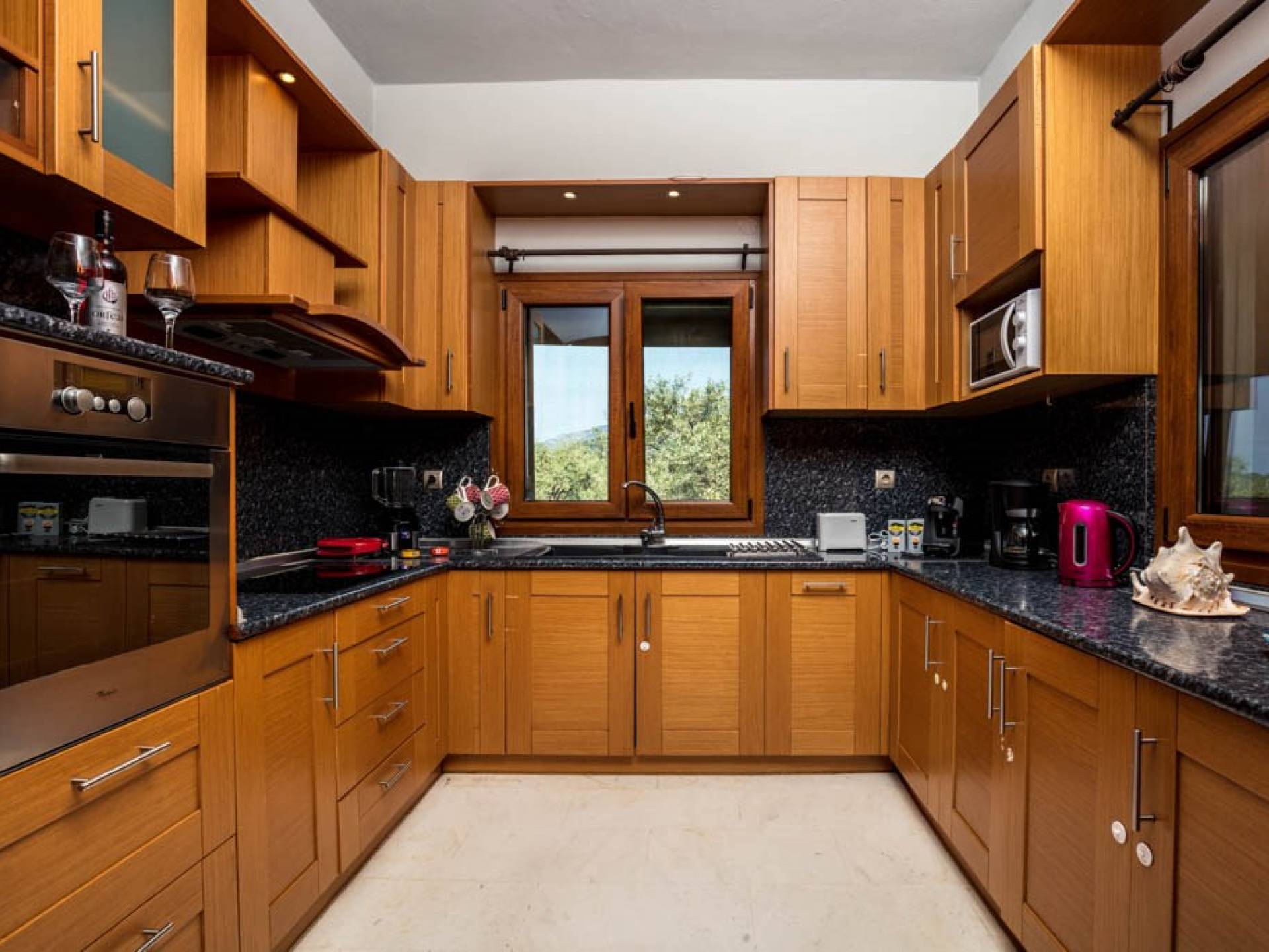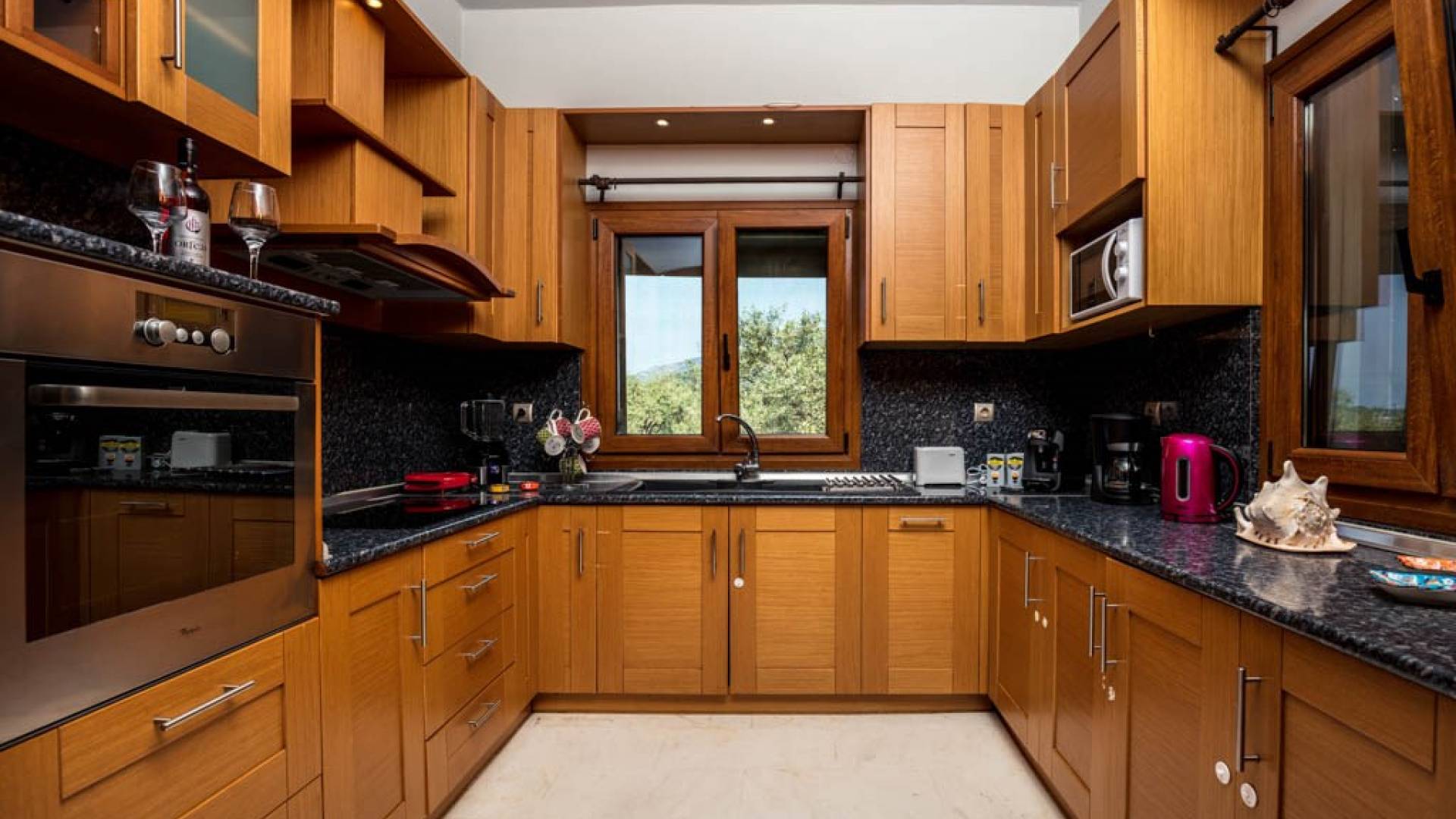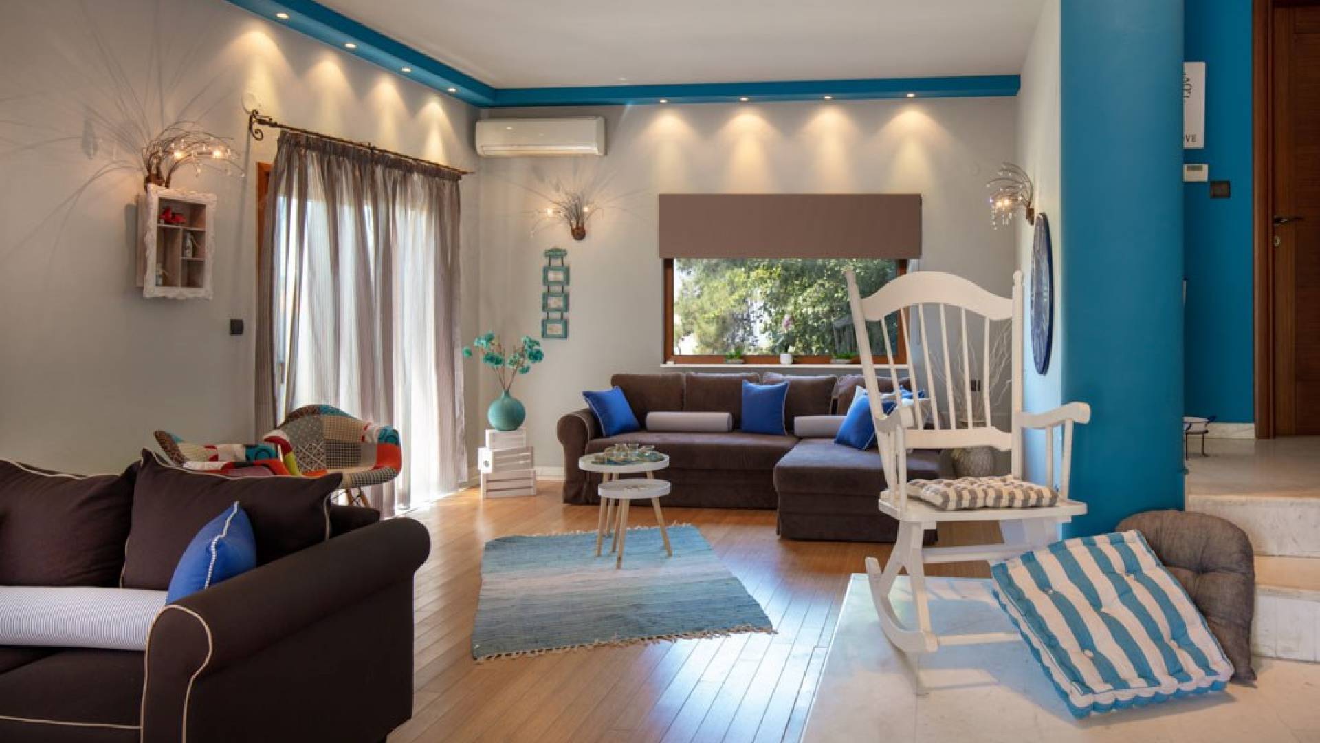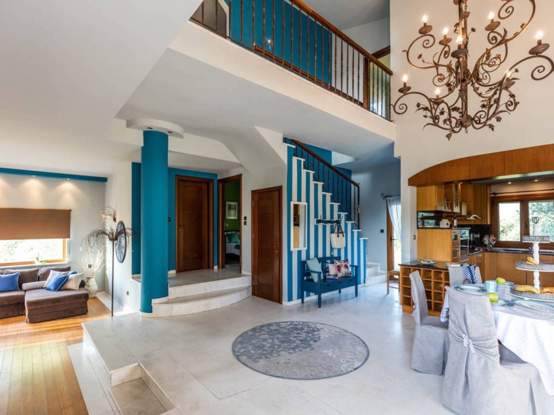 The villa has a modern, delicate decoration and extravagant furniture offering comfortable and luxury accommodation. It has five bedrooms in total and three bathrooms. From the five bedrooms, one is a master one with a completely private bathroom inside. In the spacious living room, you can bring together your family, friends or guests to watch TV, talk or do recreational activities. The kitchen is fully equipped and makes you feel at home.