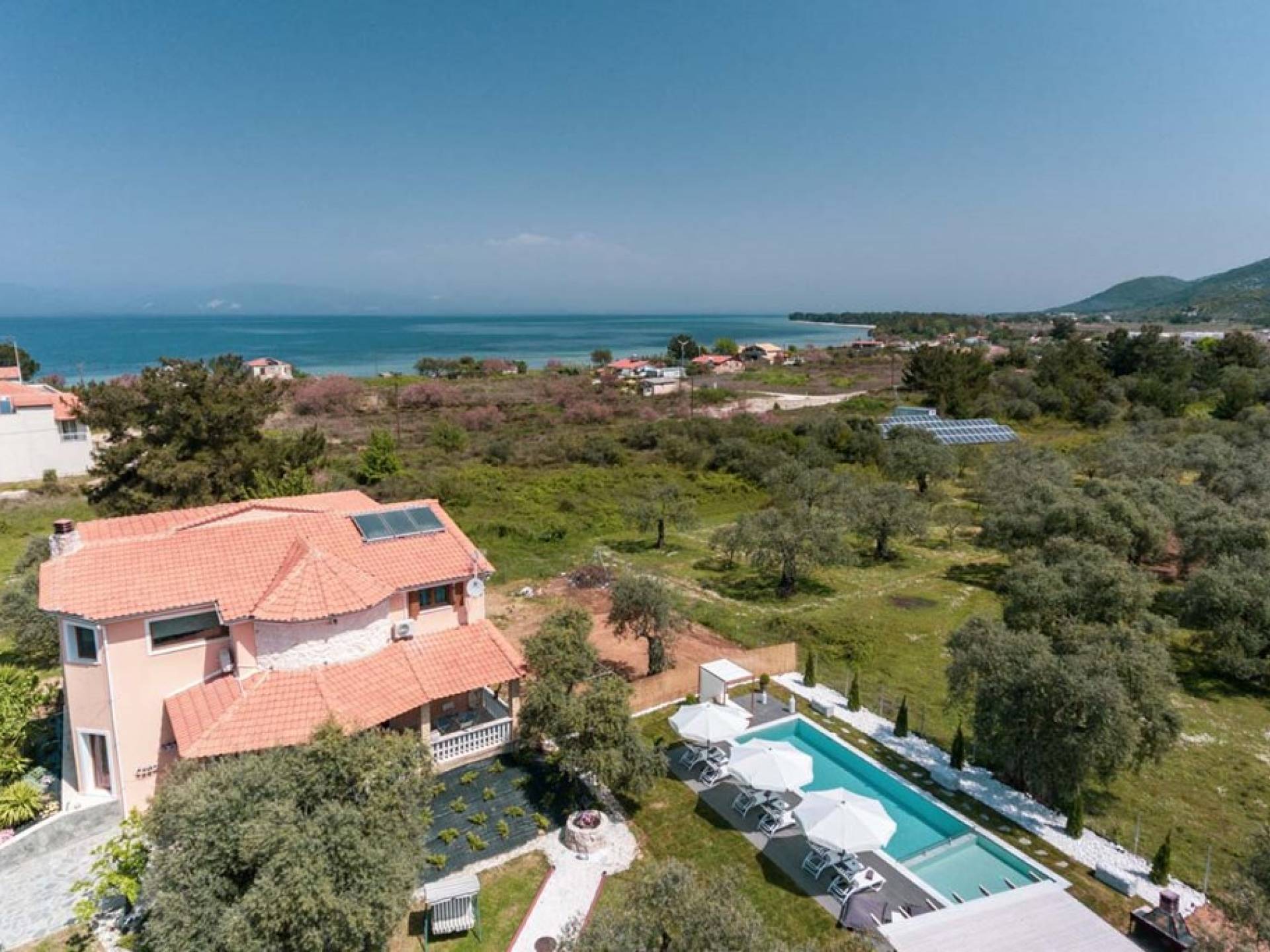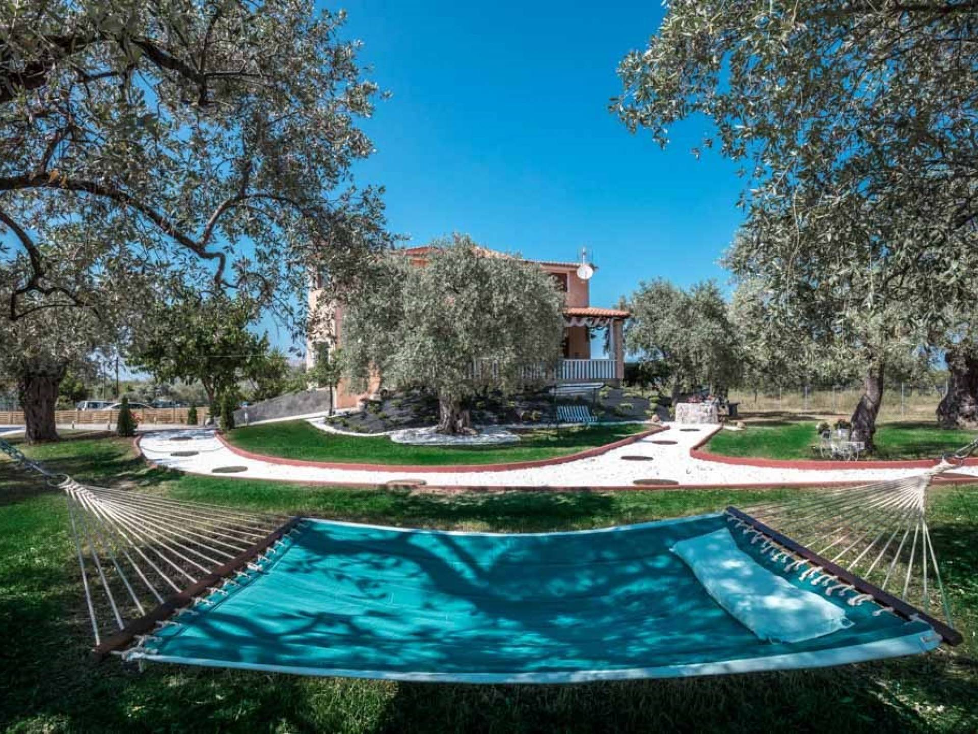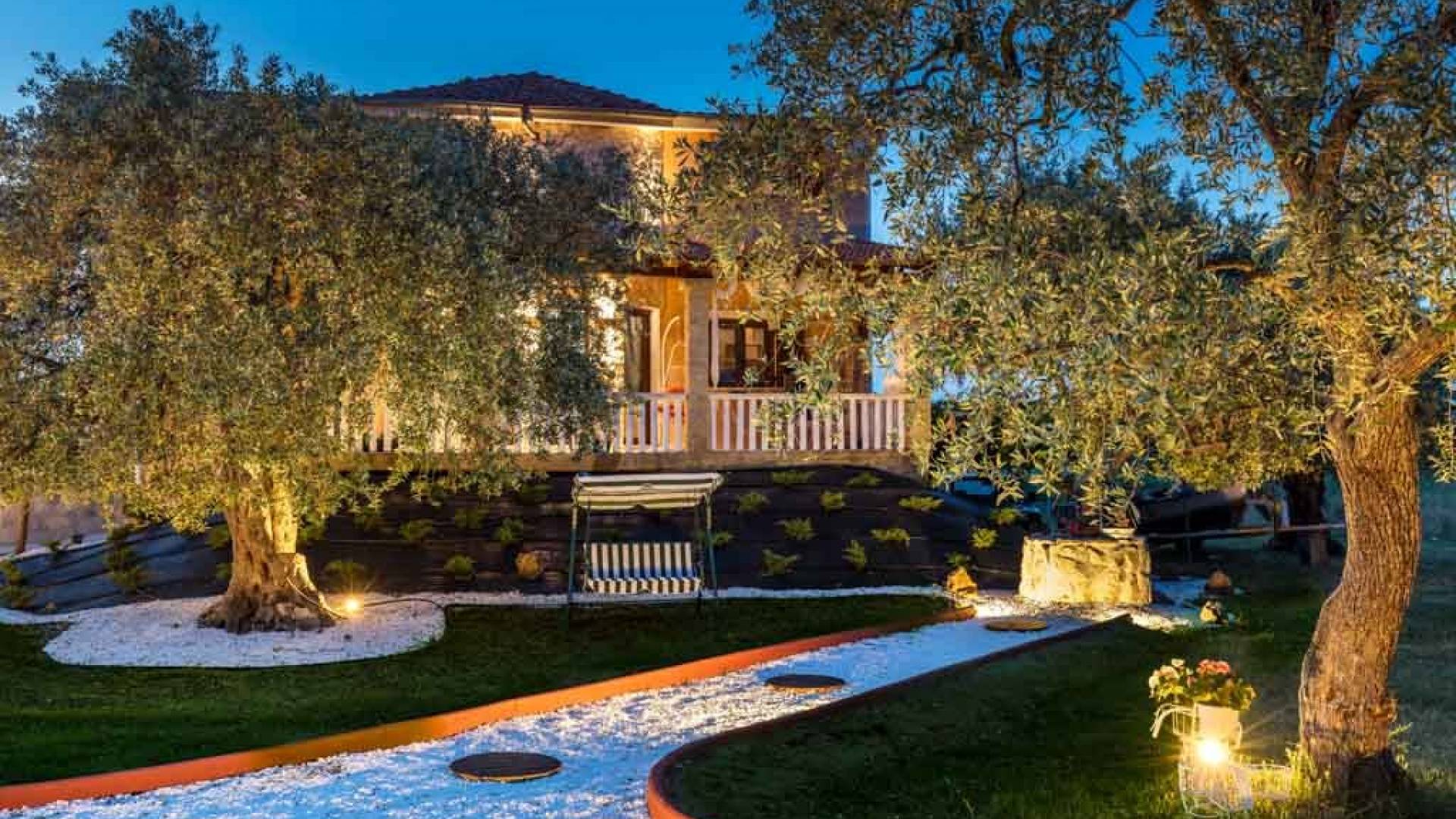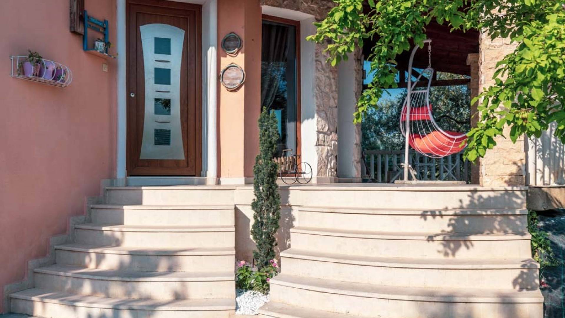 Fokas Luxury Villa in Thasos is surrounded by an olive grove and has a big garden with fragrant flowers and leafy trees. You can have a great time in the garden, having fun, relaxing or making a barbeque. There is also private big parking for your cars in the manor.